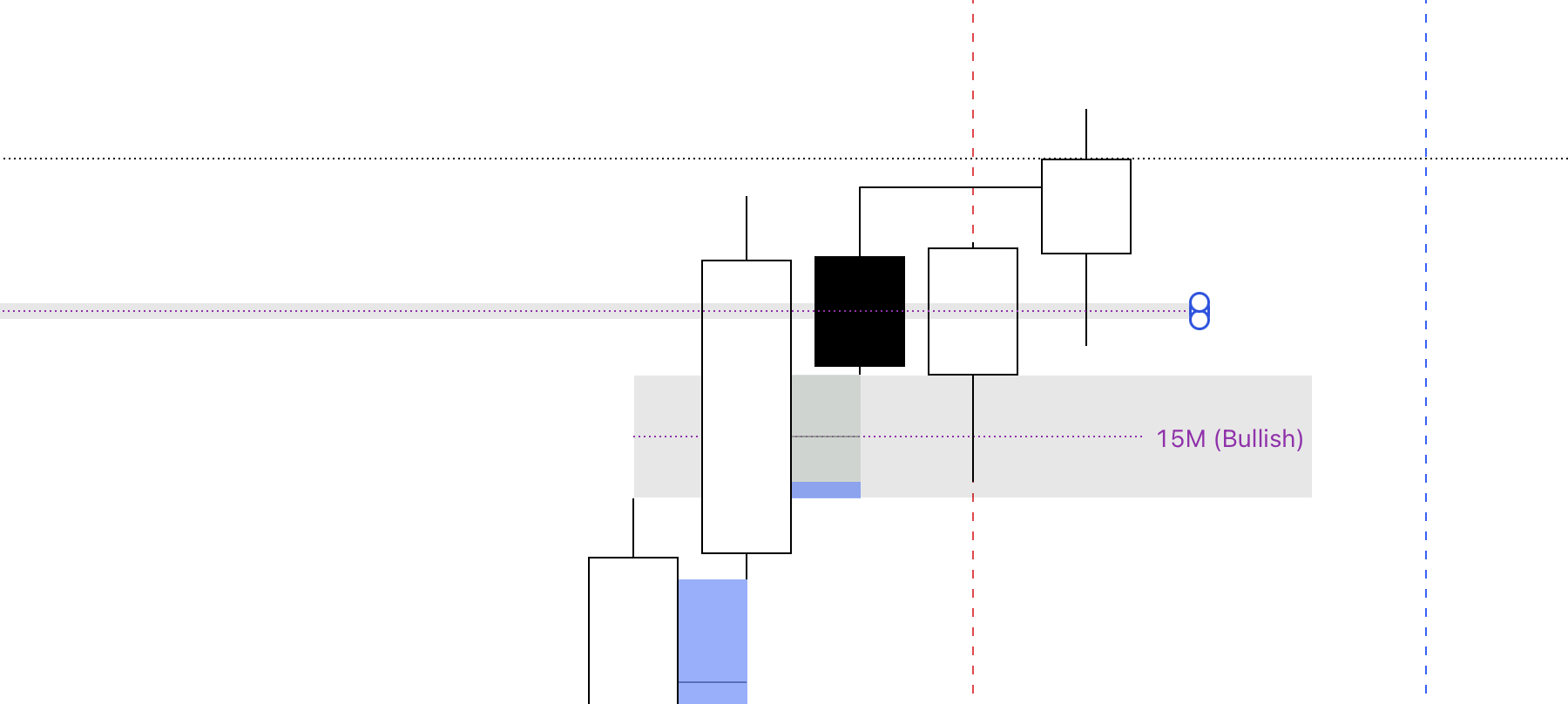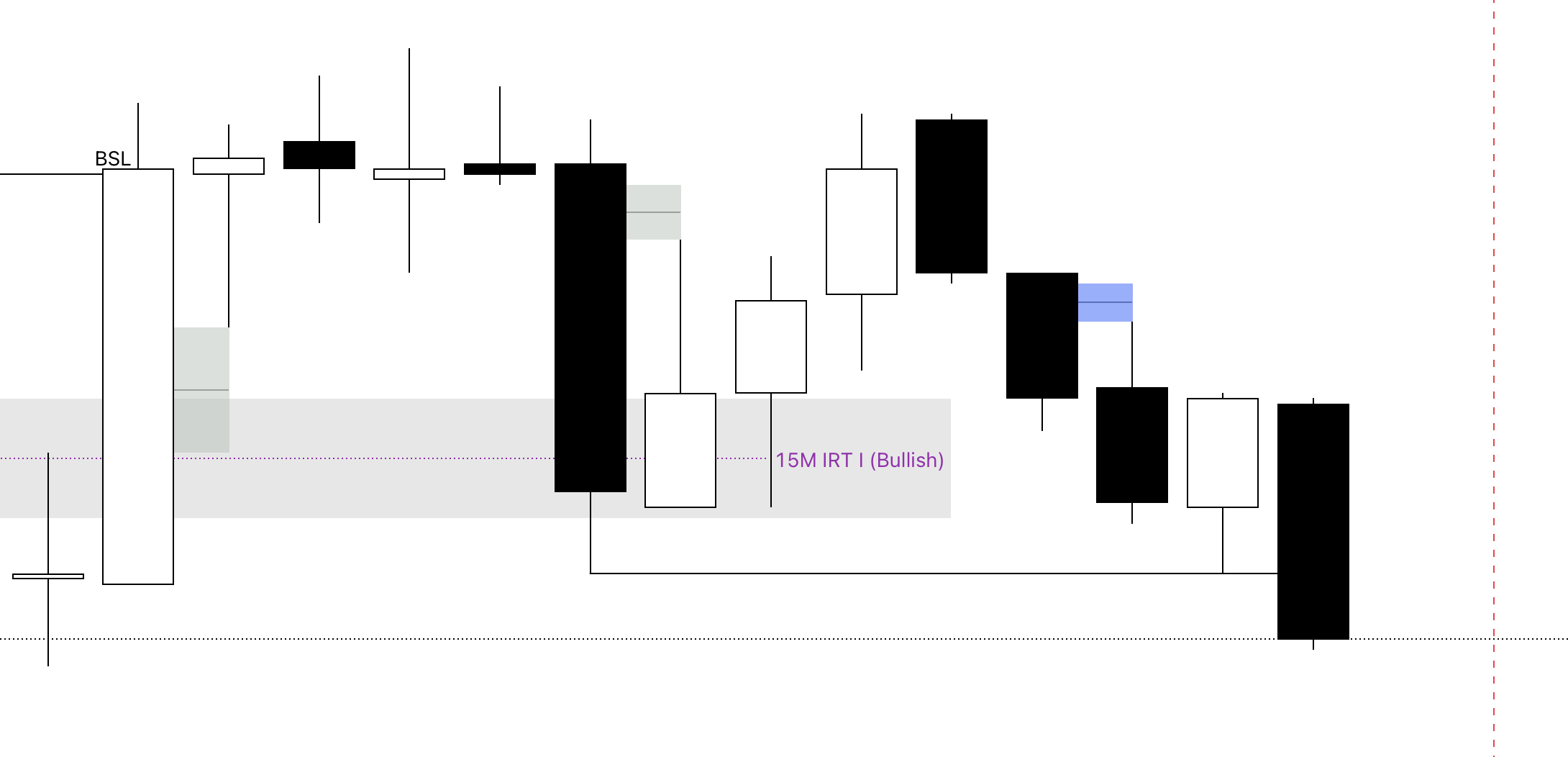 Confluences: A 15M bullish FVG within a 15M IRT bullish inverse FVG.