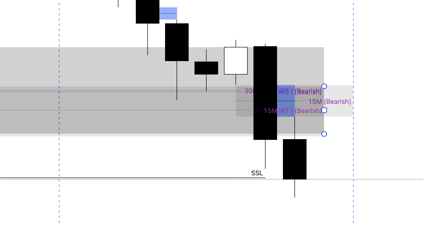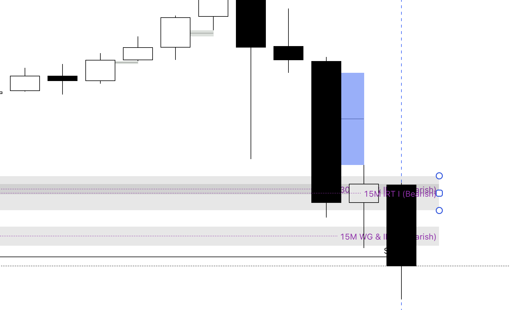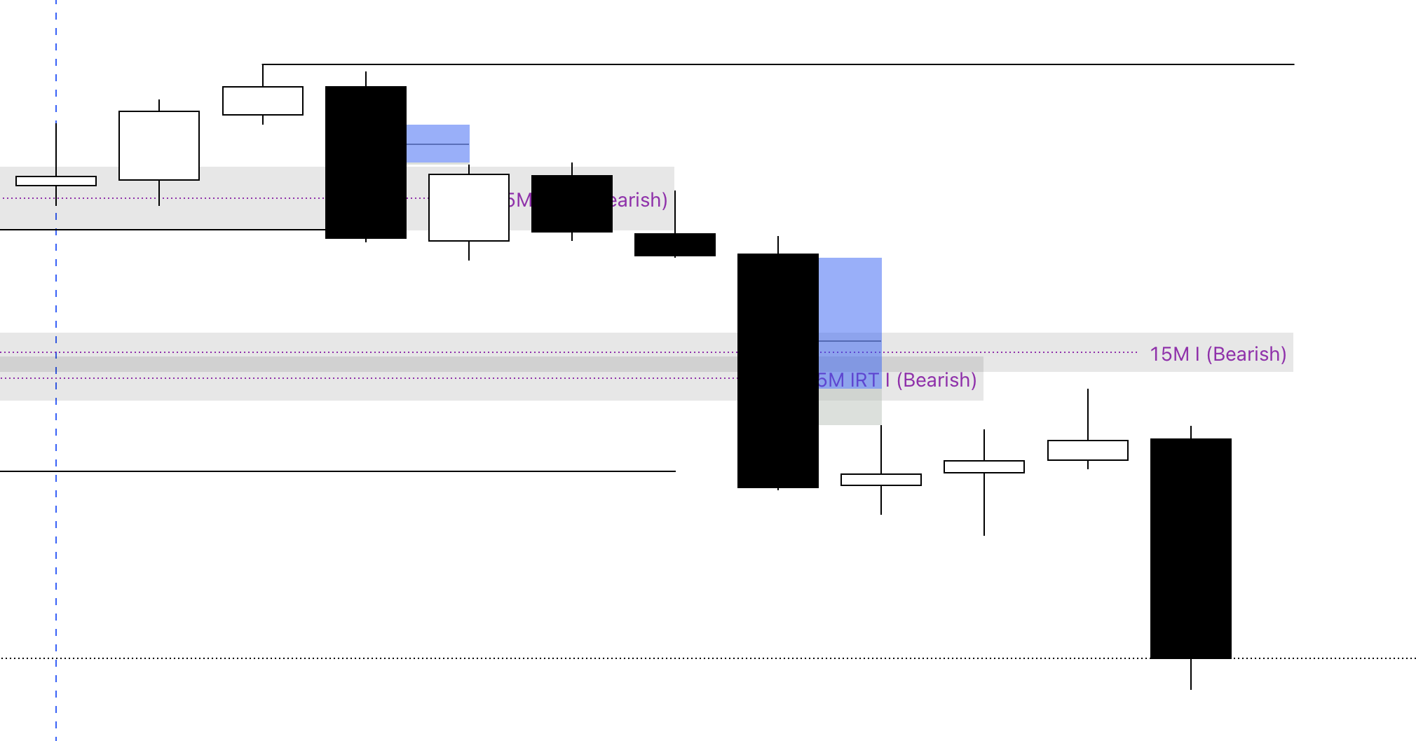 Confluences: A 15M bearish FVG above a 15M IRT bearish inverse FVG.
