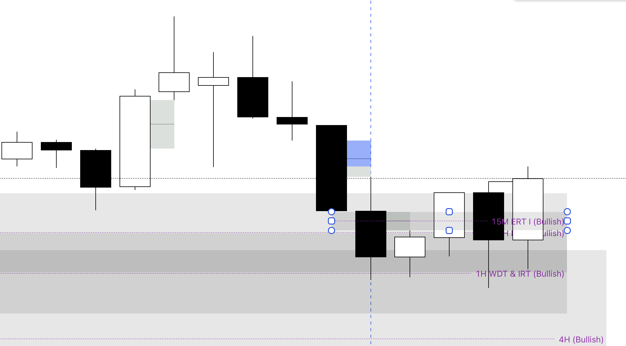 Confluences: 15M WDT & IRT bullish FVG beneath a 15M ERT bullish inverse FVG.