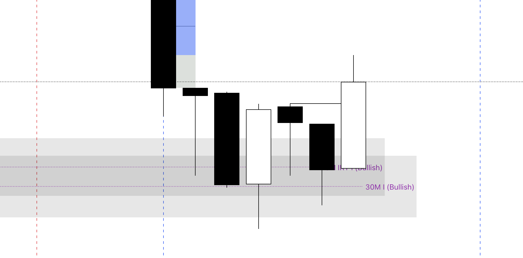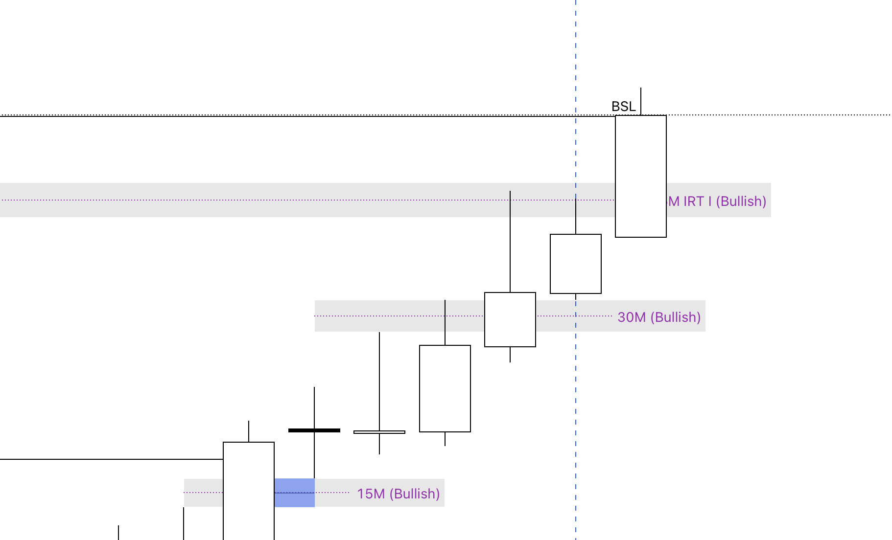 Confluences: A 30M bullish FVG within a 15M IRT bullish inverse FVG.