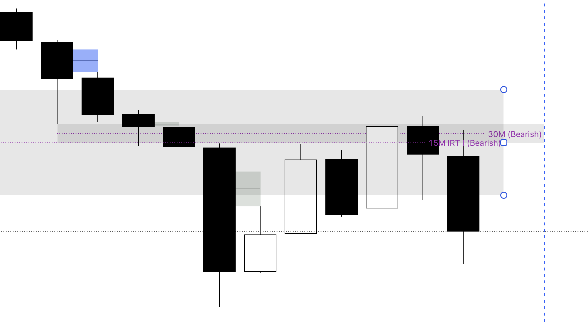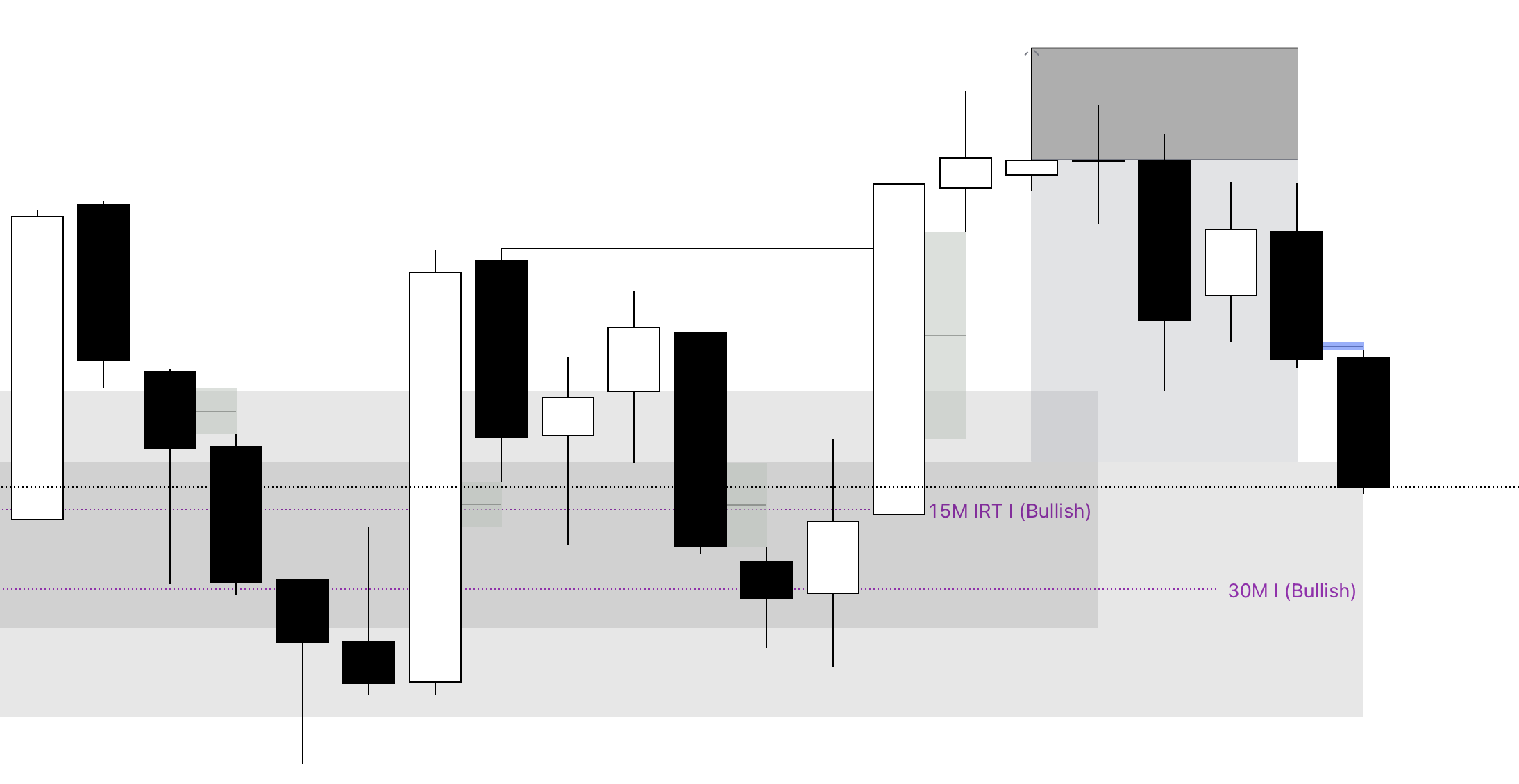 Confluences: A 30M IRT bullish inverse FVG within a 15M IRT inverse bullish FVG.