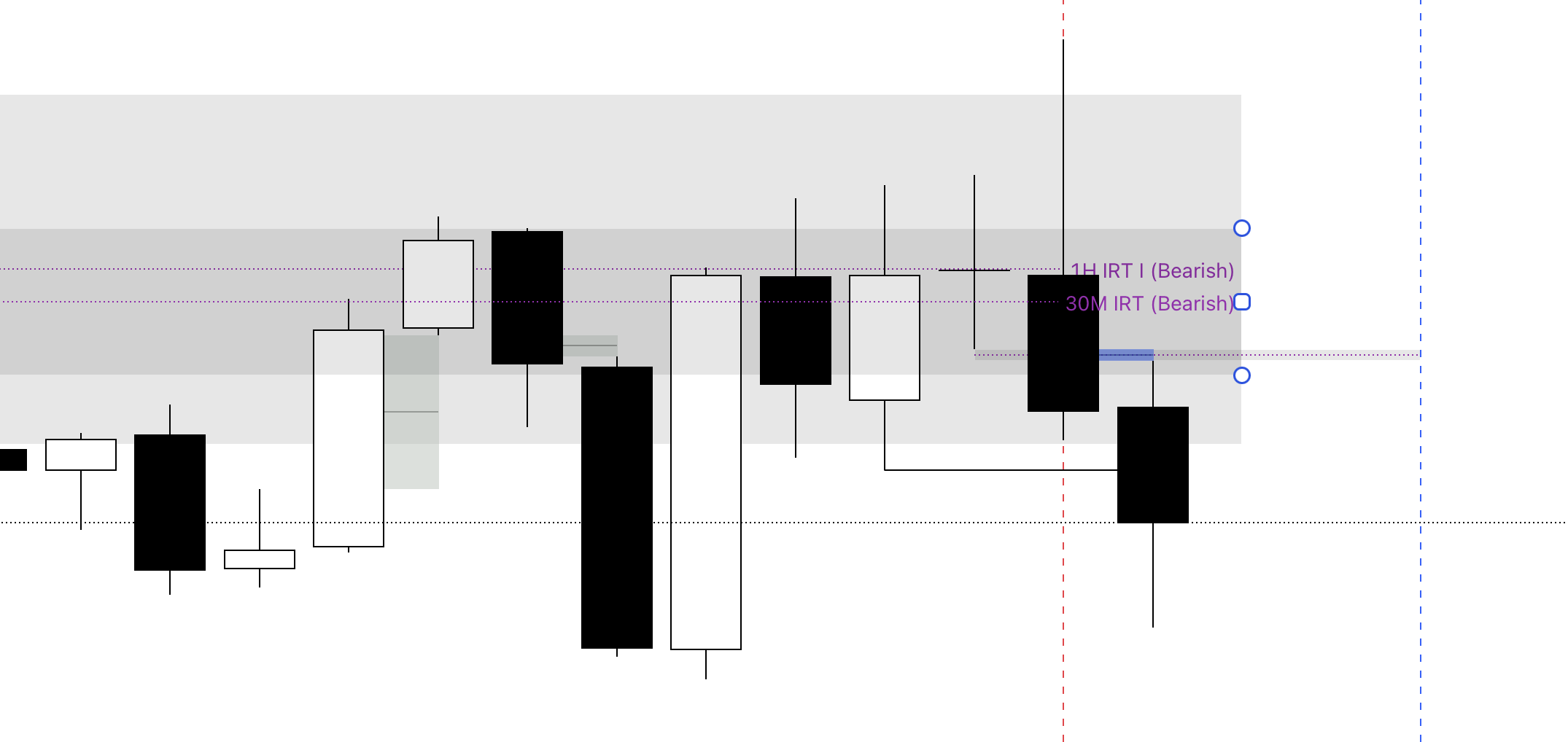 Confluences: A 15M IRT bearish FVG within a 30M IRT bearish FVG.