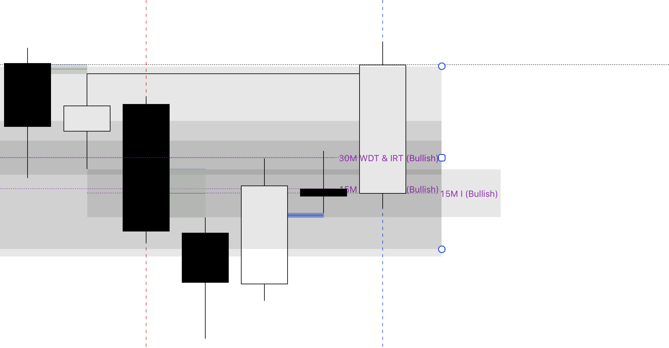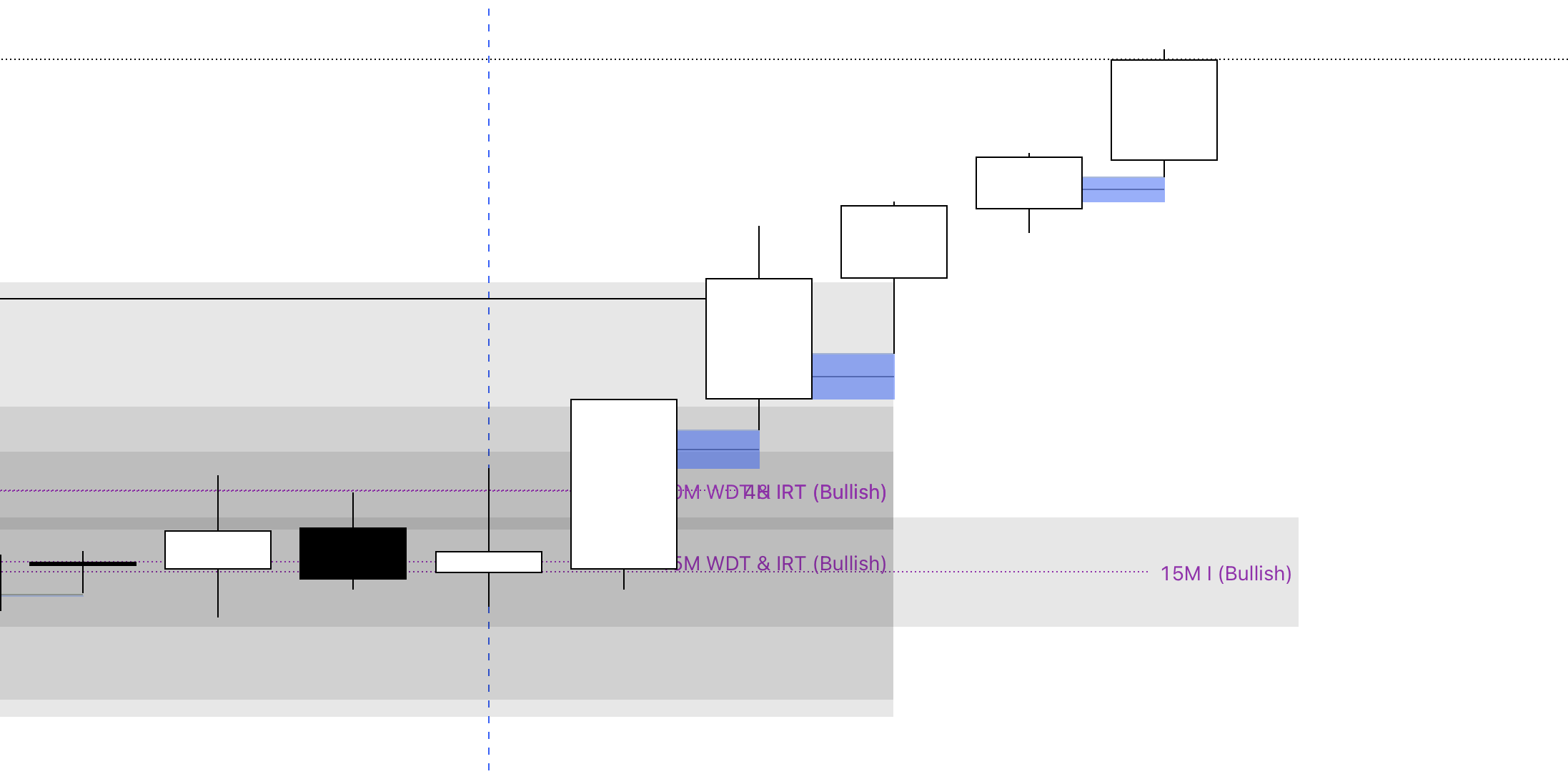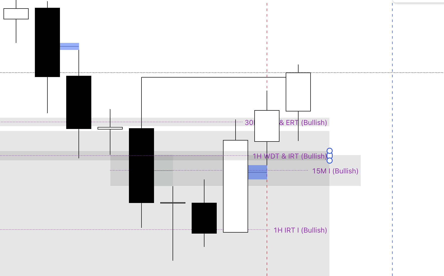 Confluences: A 15M WDT & IRT bullish FVG within a bullish; 30M WDT & IRT FVG.