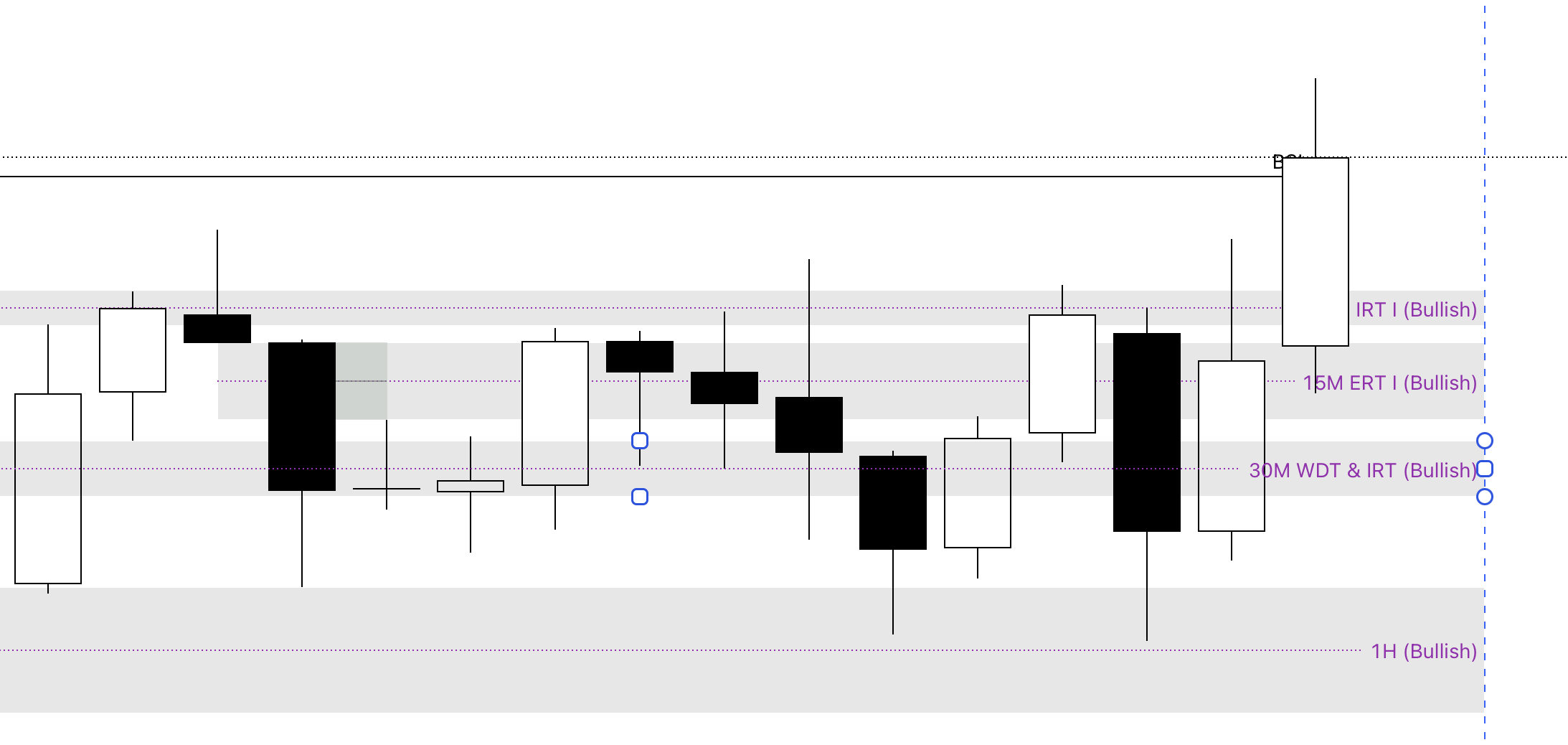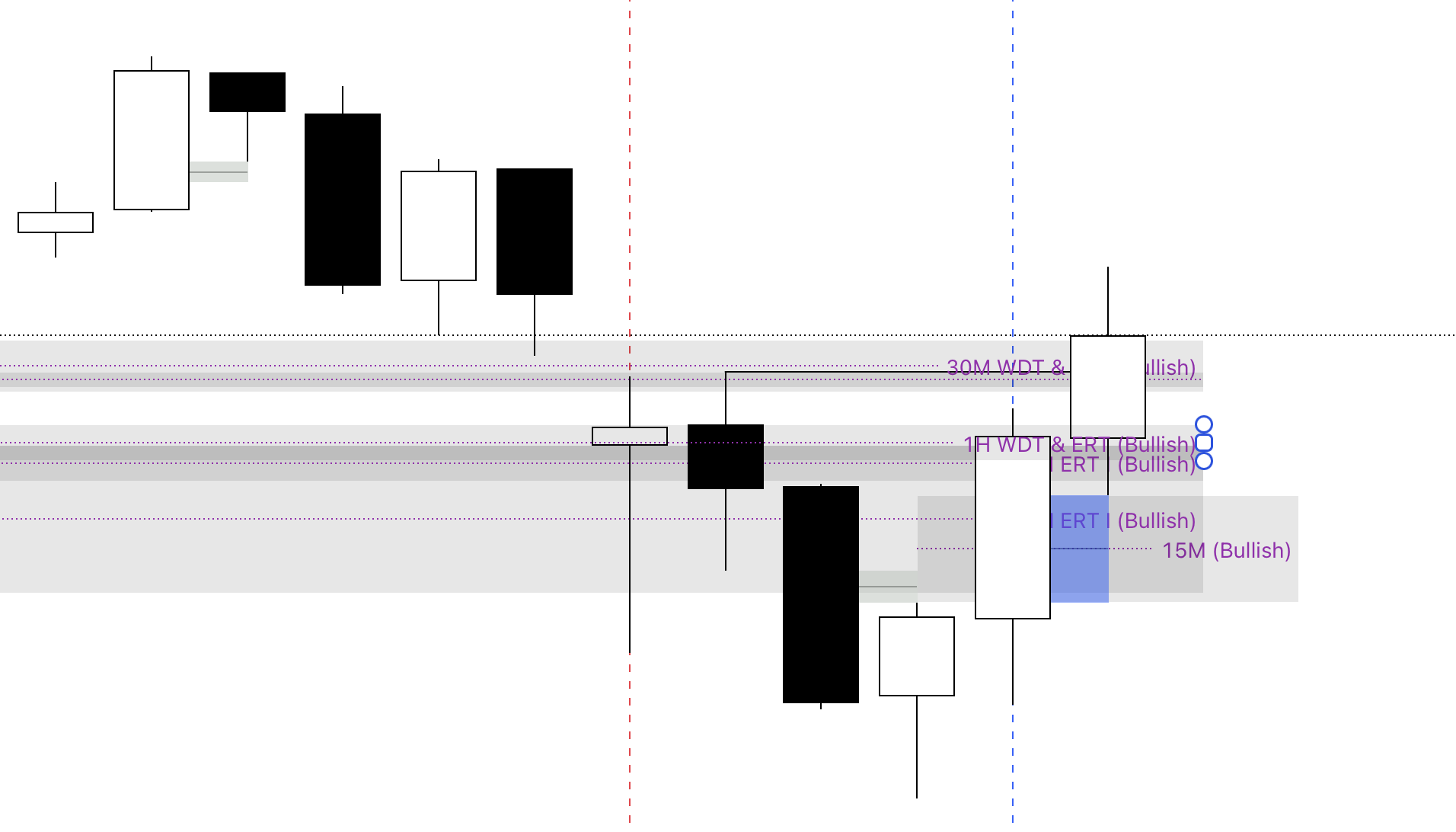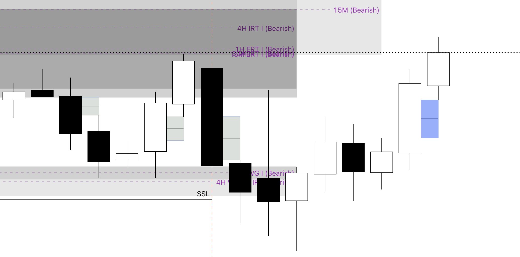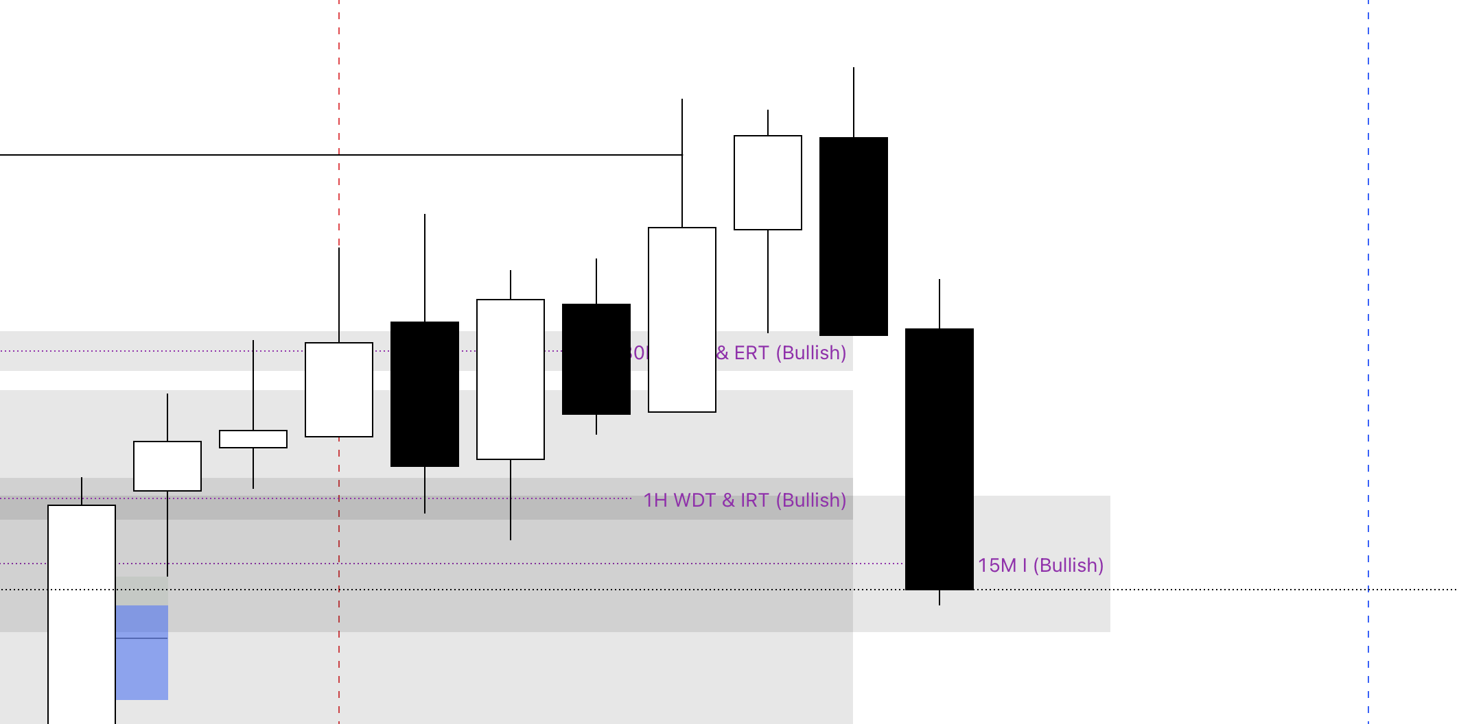 Confluences: A 15M WDT & IRT bullish FVG within a bullish; 30M WDT & IRT FVG.