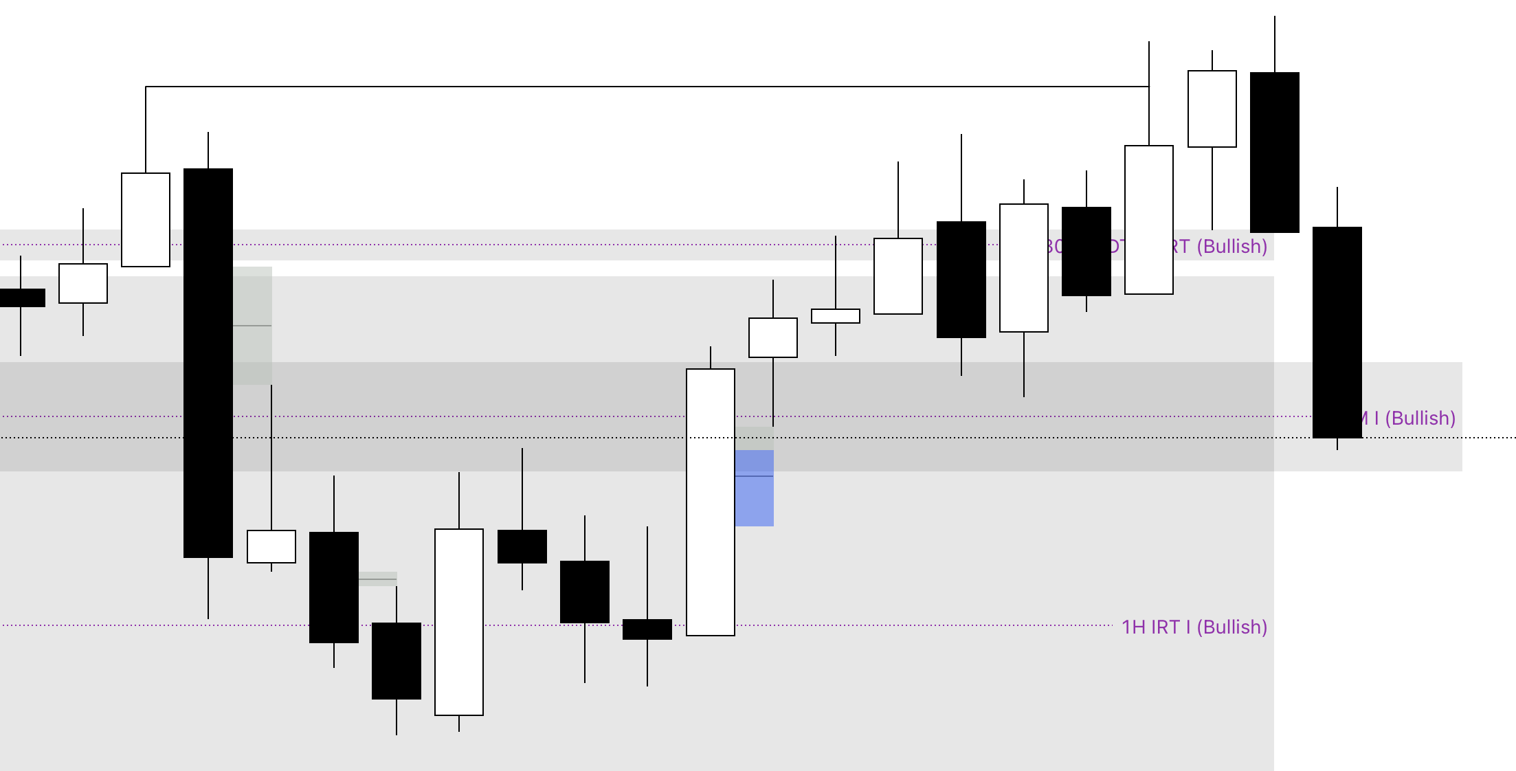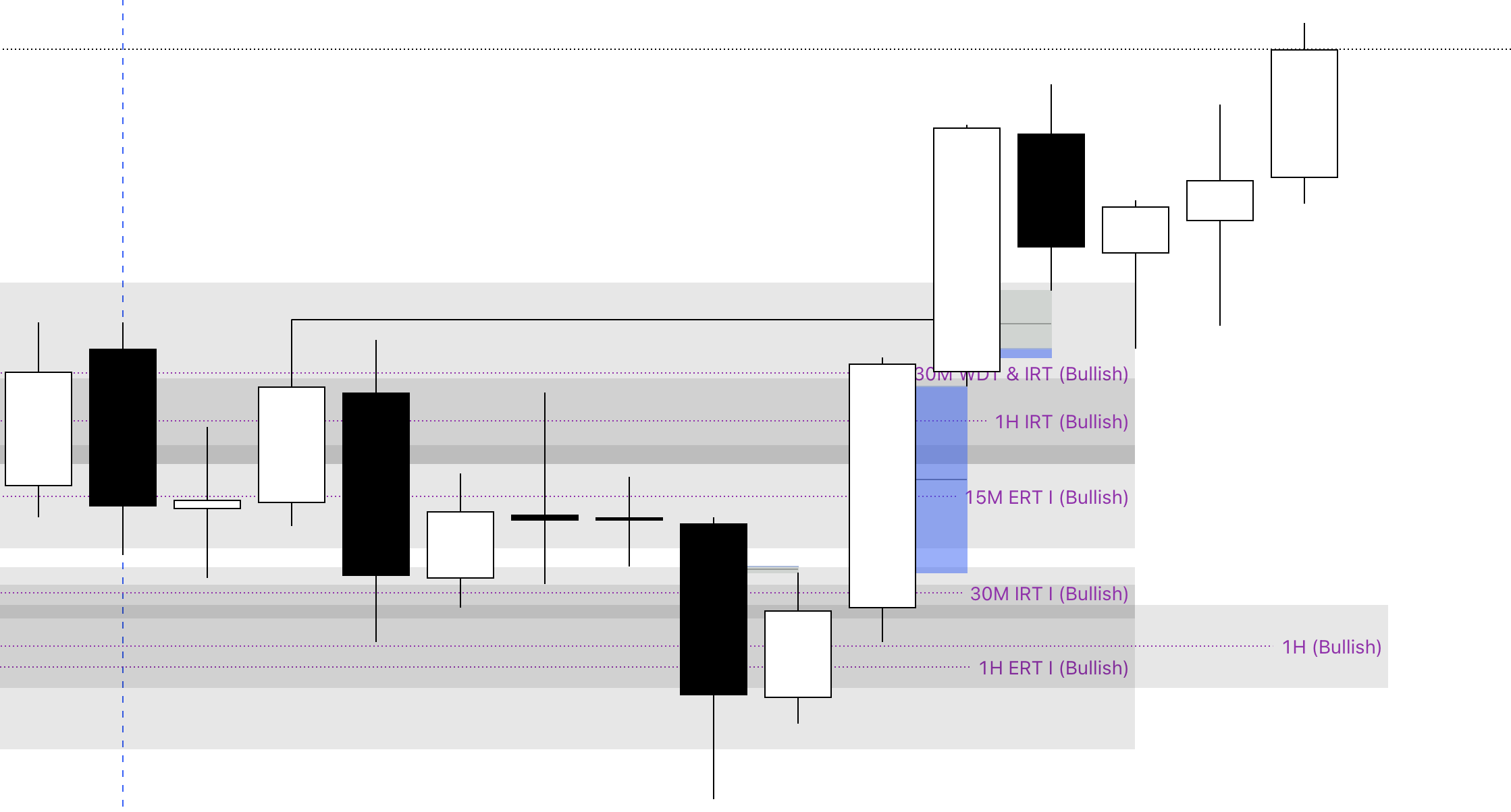 Confluences: A 1H WDT & IRT bullish FVG within a bullish; 30M WDT & IRT FVG.