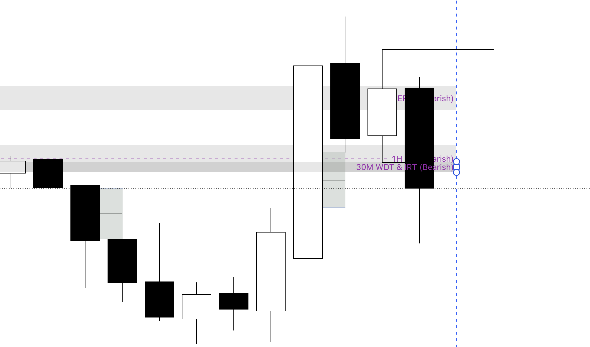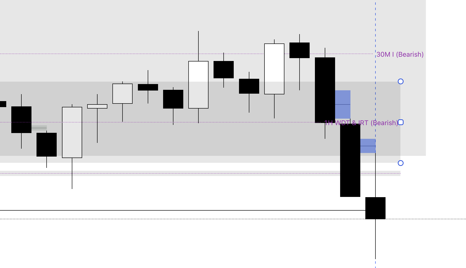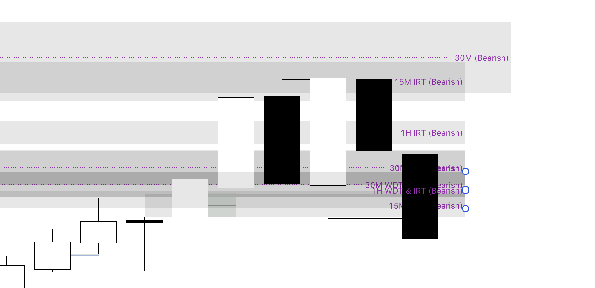 Confluences: A 30M WDT & IRT bearish FVG within a bearish; 1H WDT & IRT FVG.