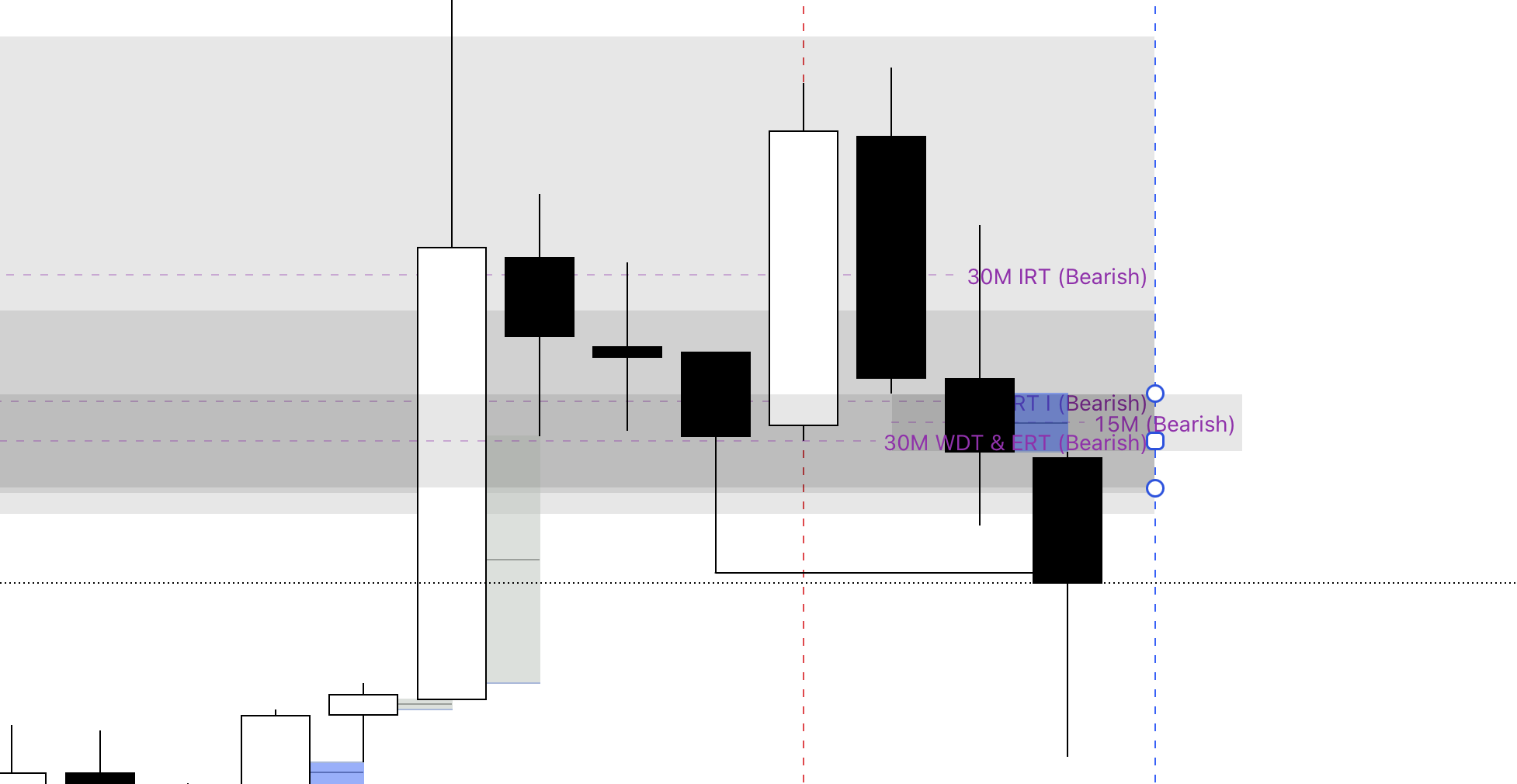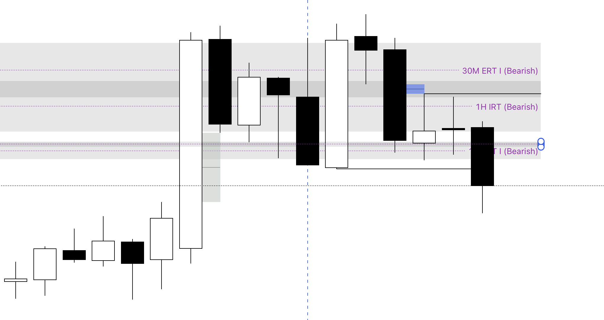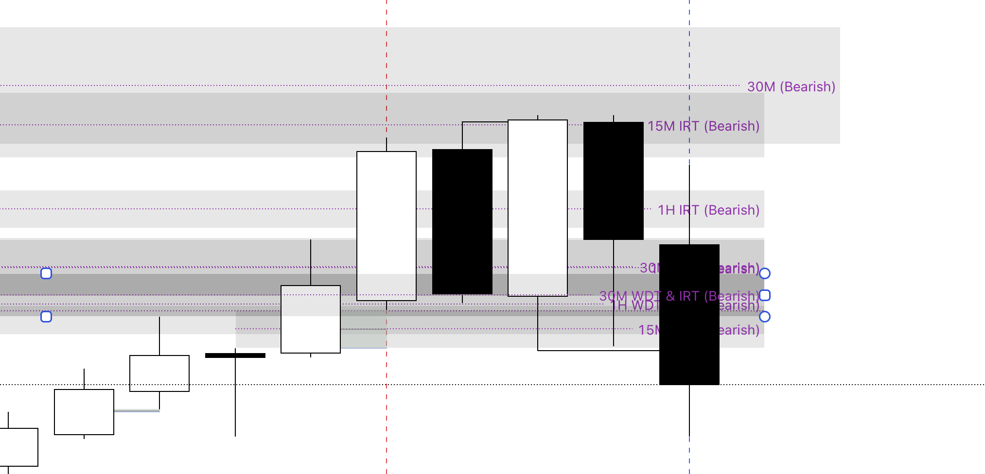Confluences: A 30M WDT & IRT bearish FVG within a bearish; 1H WDT & IRT FVG.