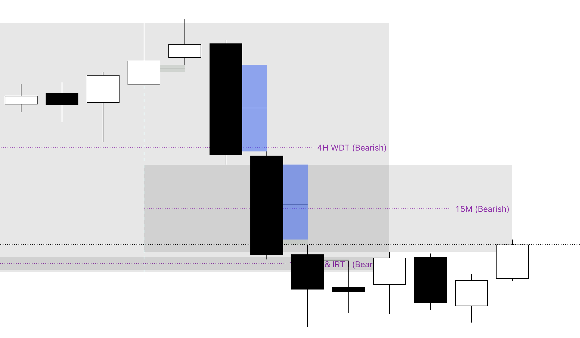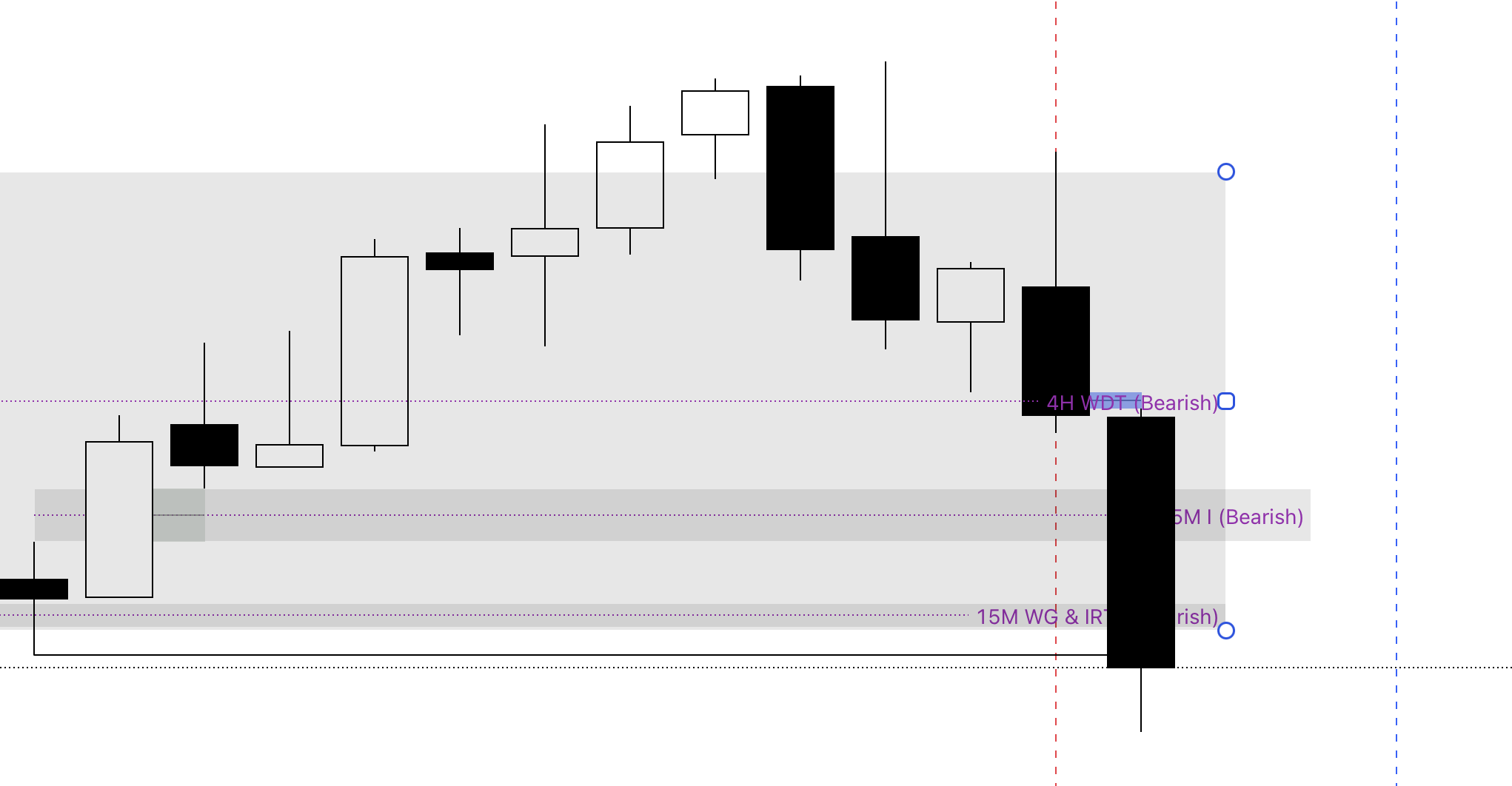 Confluences: 15M WG & IRT bearish inverse FVG within a 4H WDT bearish FVG.