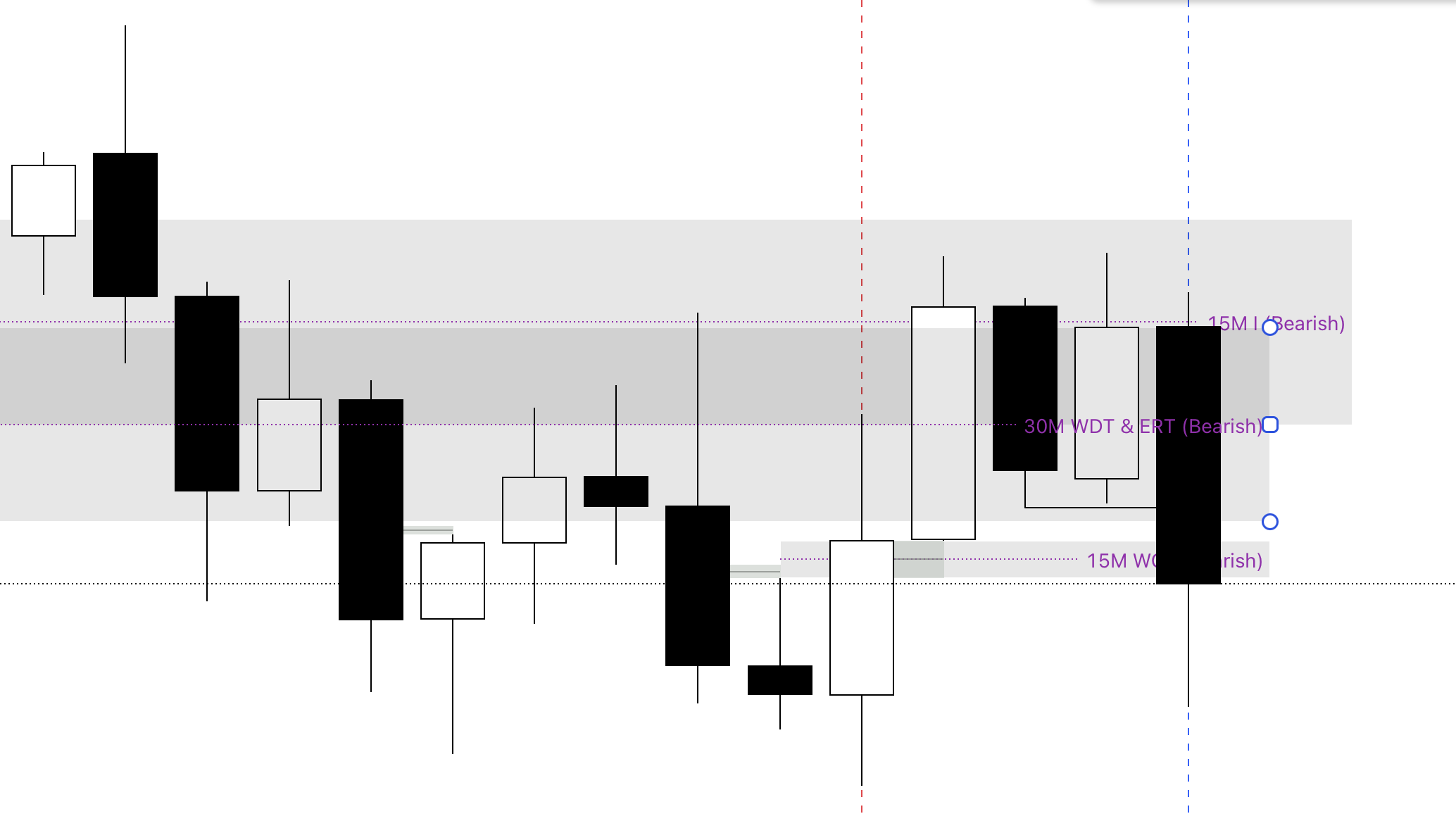 Confluences: A 15M bearish FVG within a bearish; 30M WDT & ERT FVG.