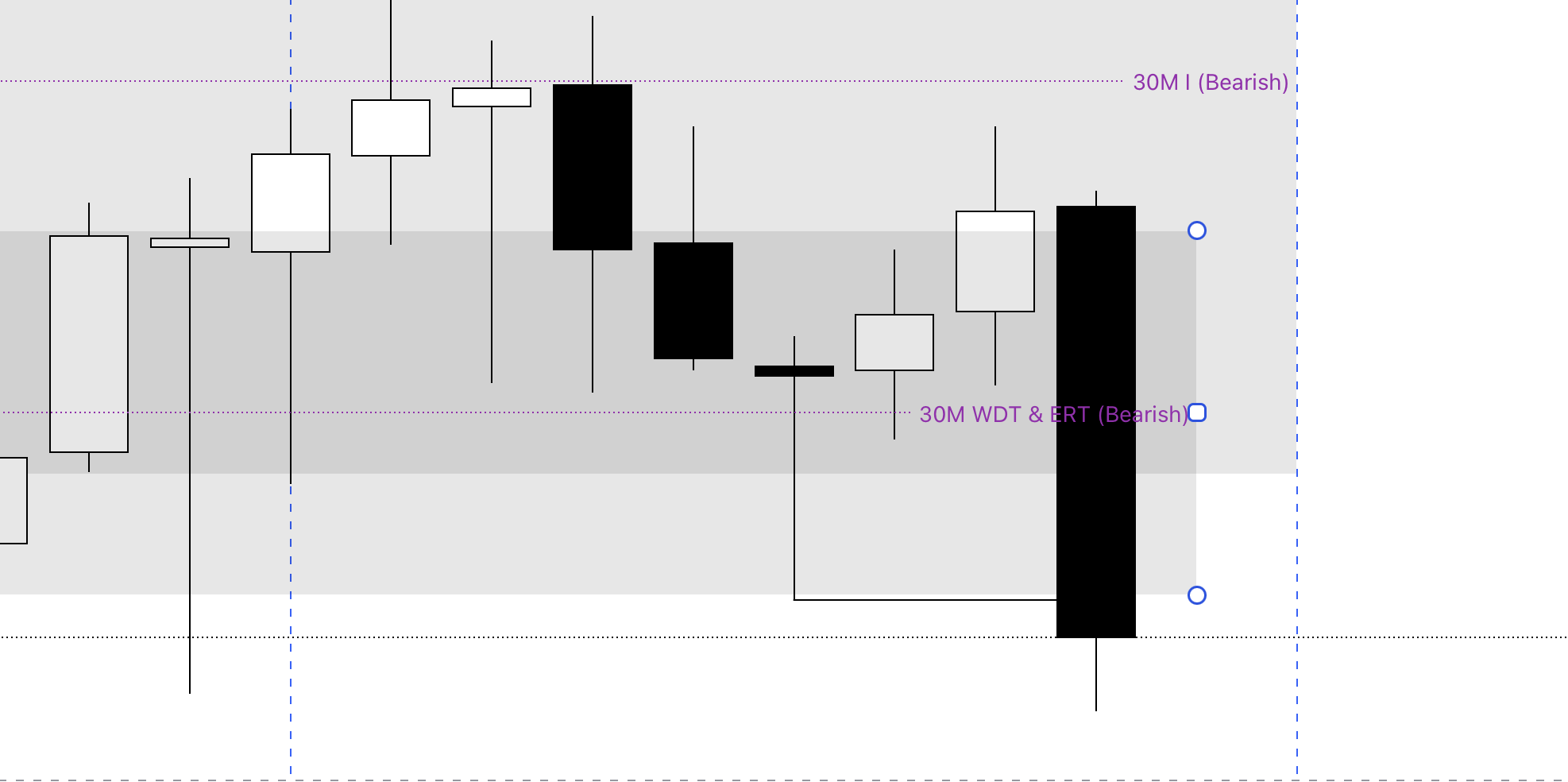 Confluences: A 30M bearish inverse FVG within a bearish; 30M WDT & ERT FVG.