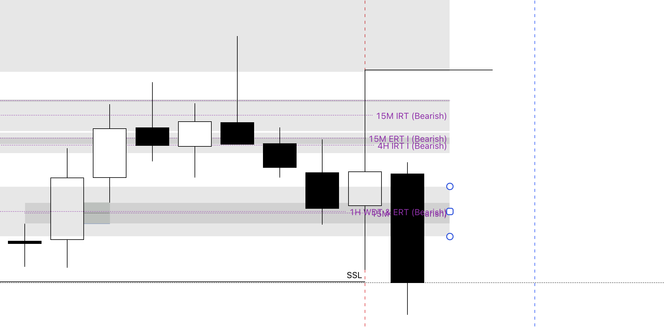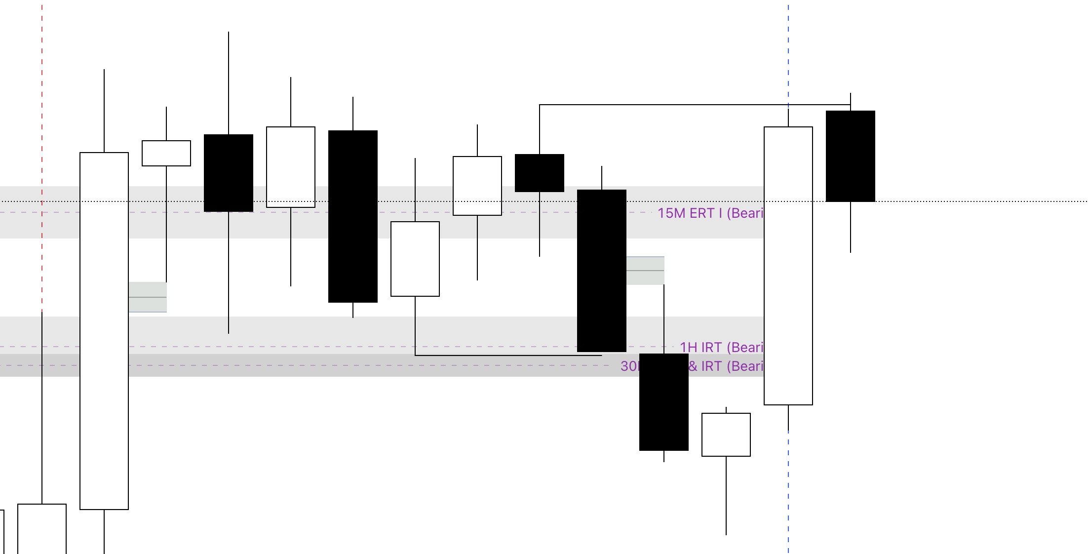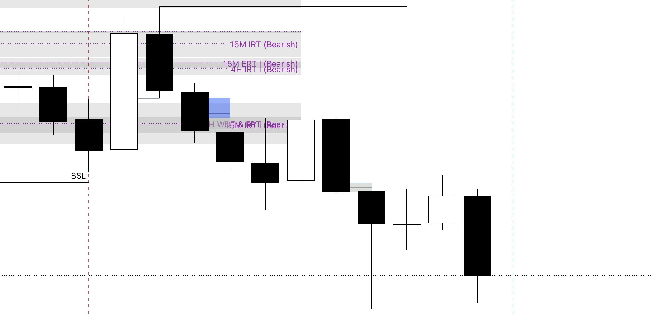 Confluences: A 15M IRT inverse FVG within a bearish; 1H WDT & ERT FVG.