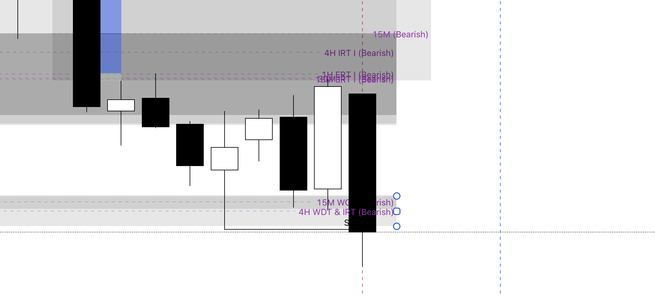 Confluences: A 1H IRT bearish FVG above a 1H WDT & IRT bearish FVG.