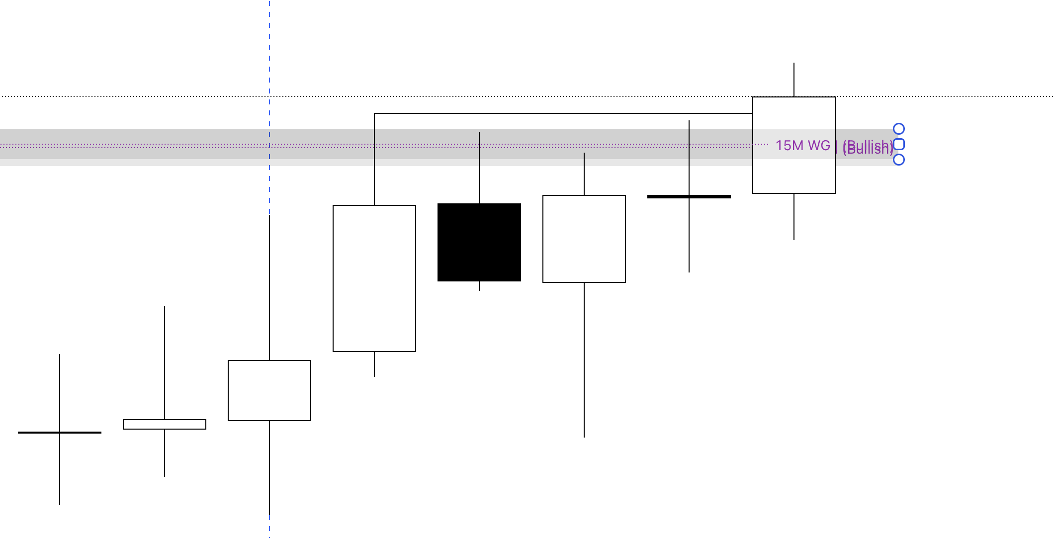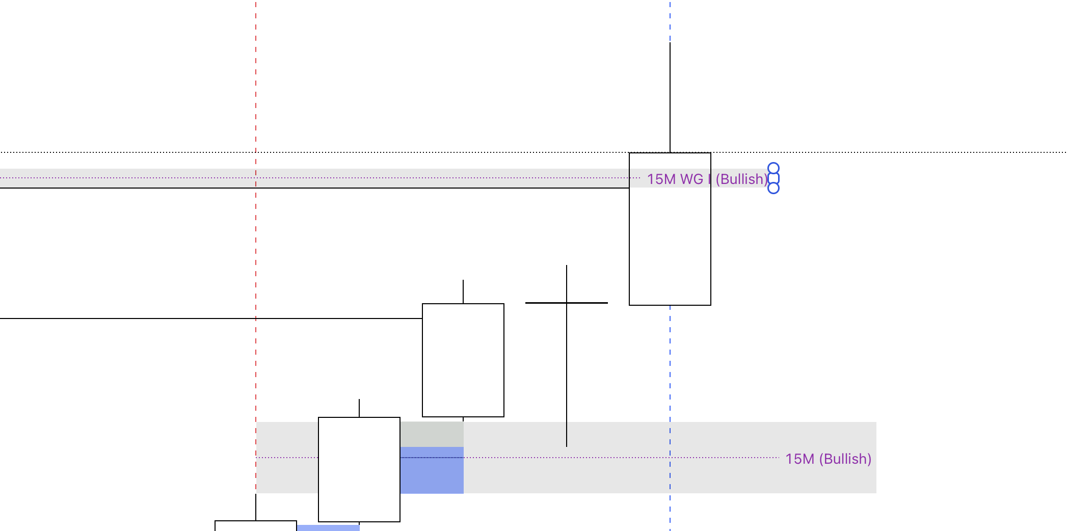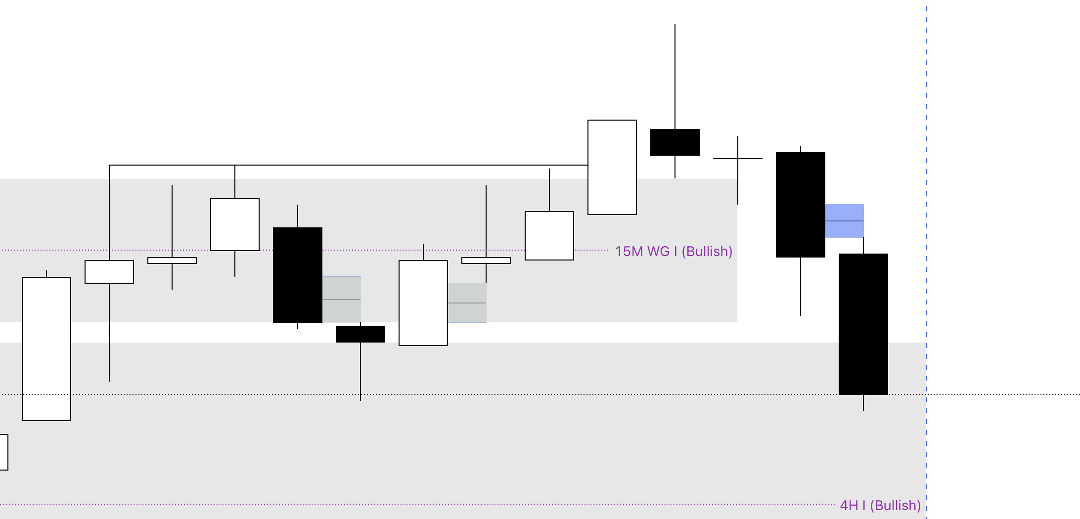Confluences: A 15M bullish FVG within a bullish 15M WG inverse FVG.