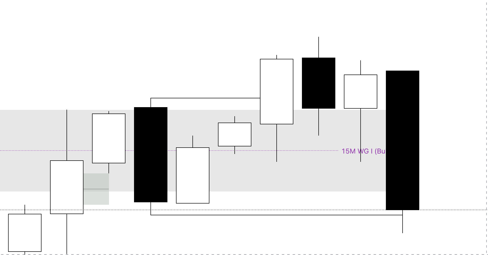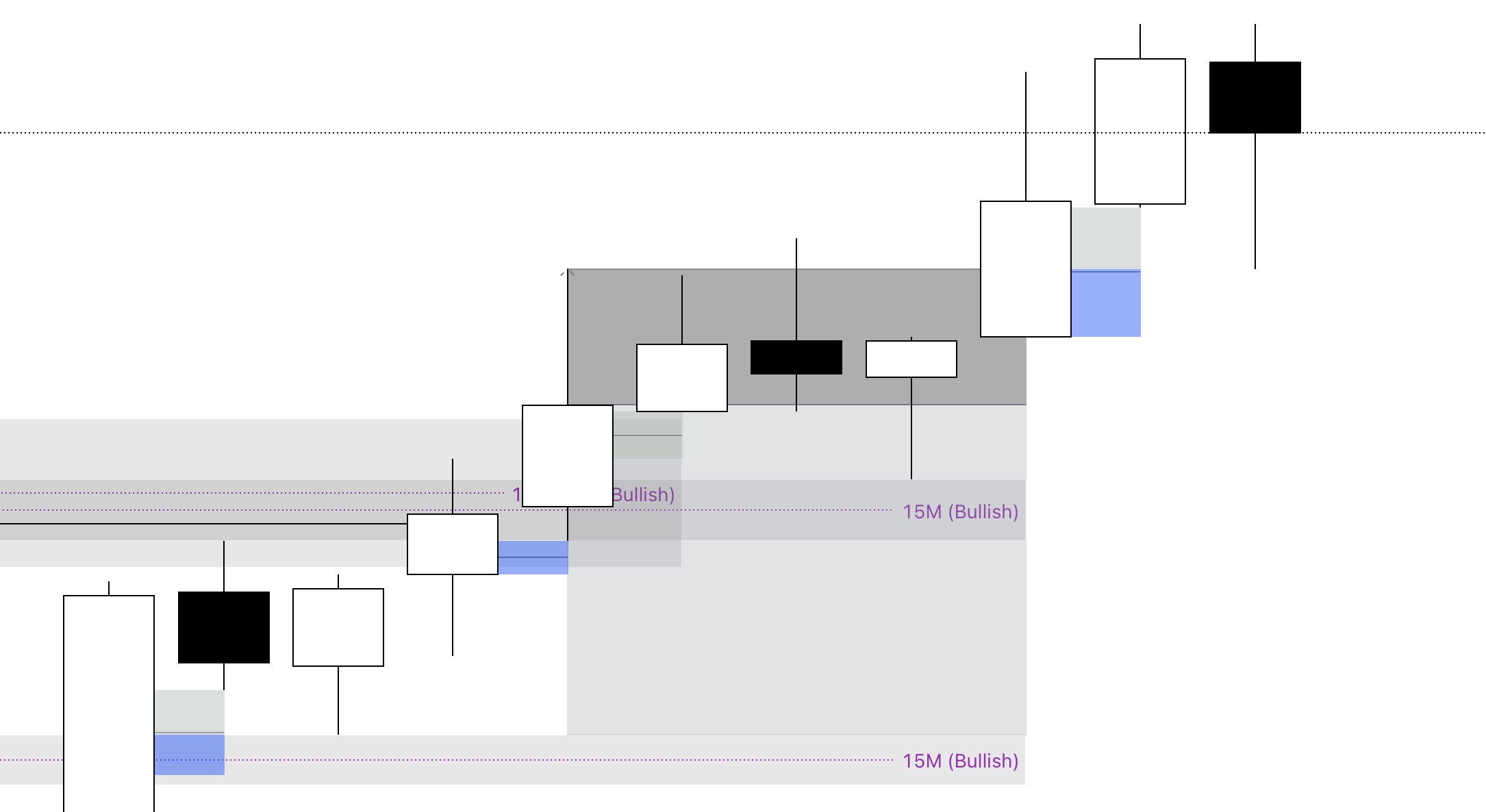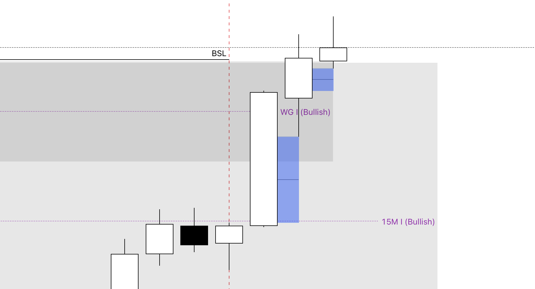 Confluences: A 15M bullish FVG within a bullish 15M WG inverse FVG.