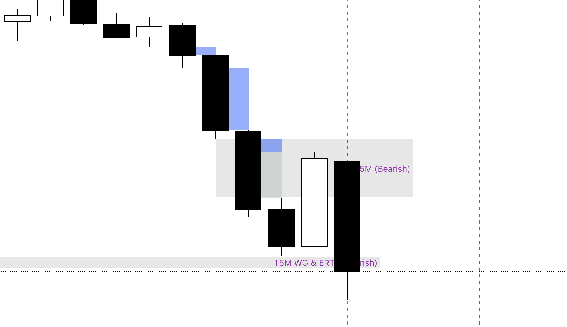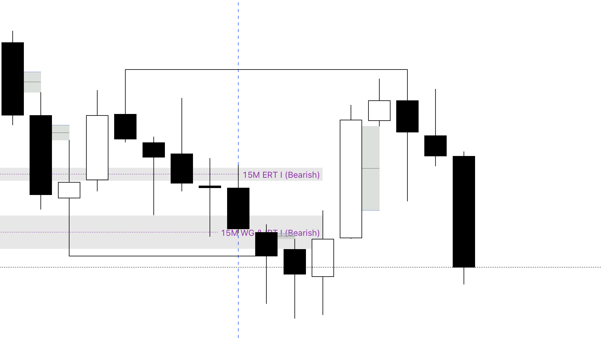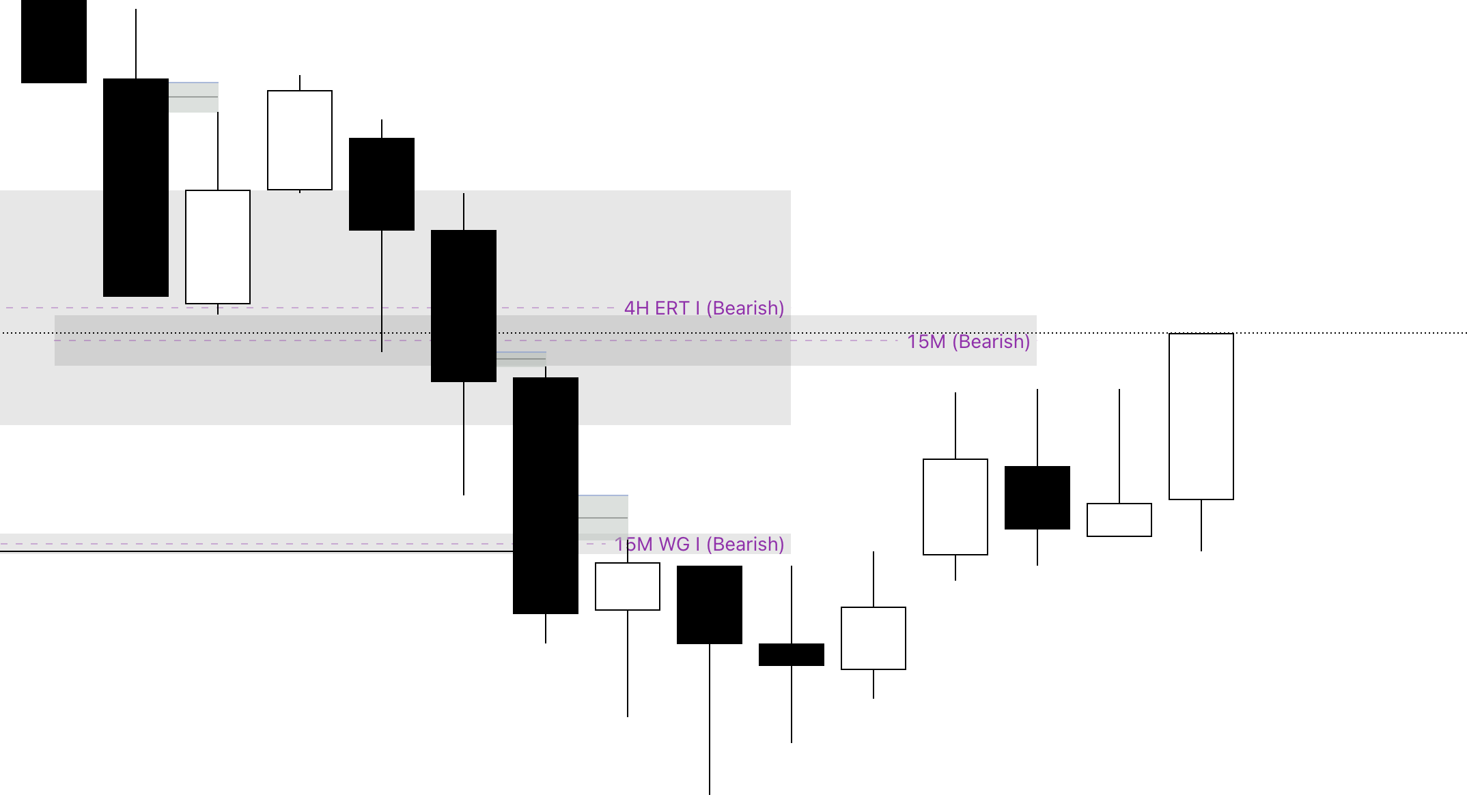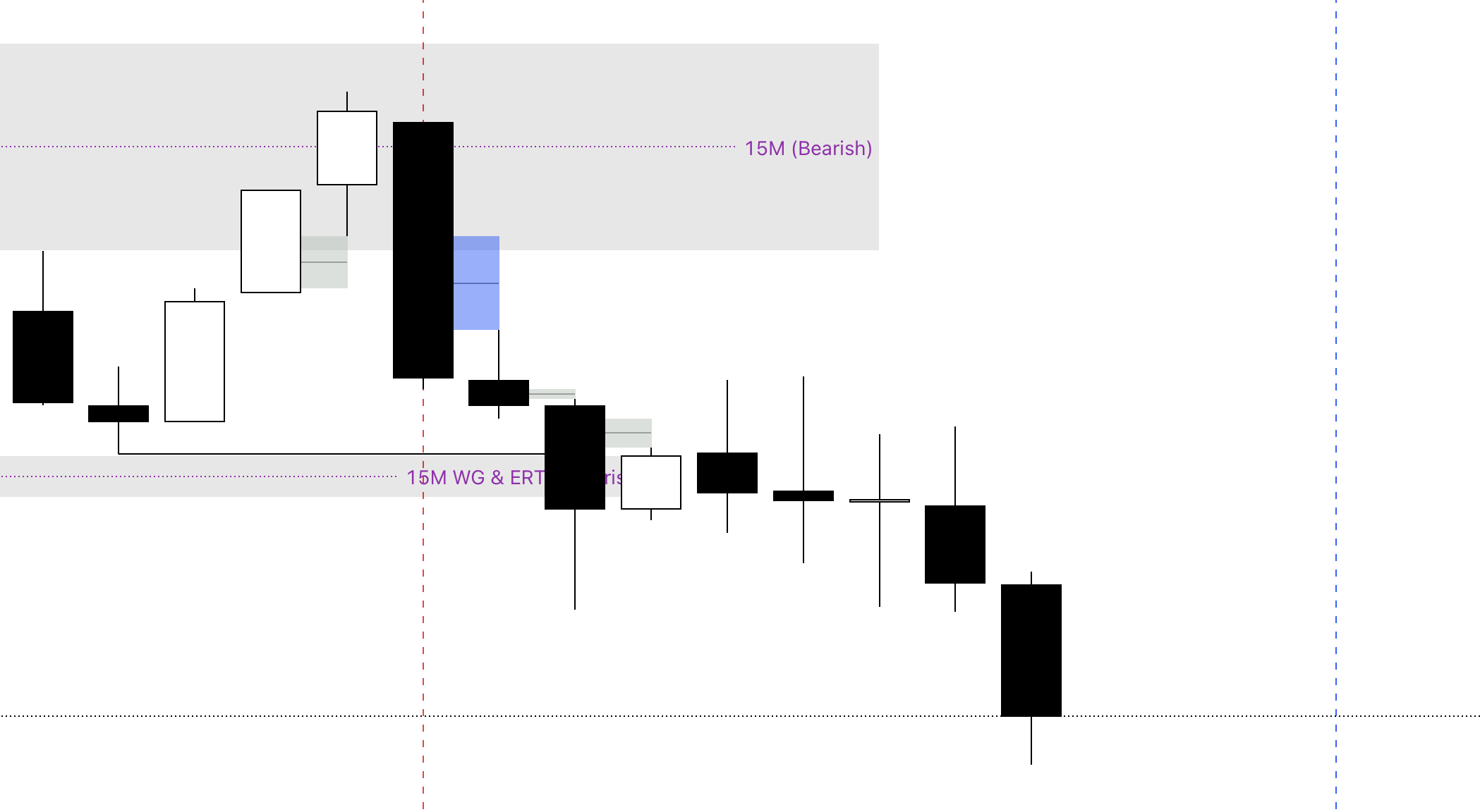 Confluences: A 15M WG & ERT inverse FVG within a bearish; 15M WG & ERT inverse FVG.