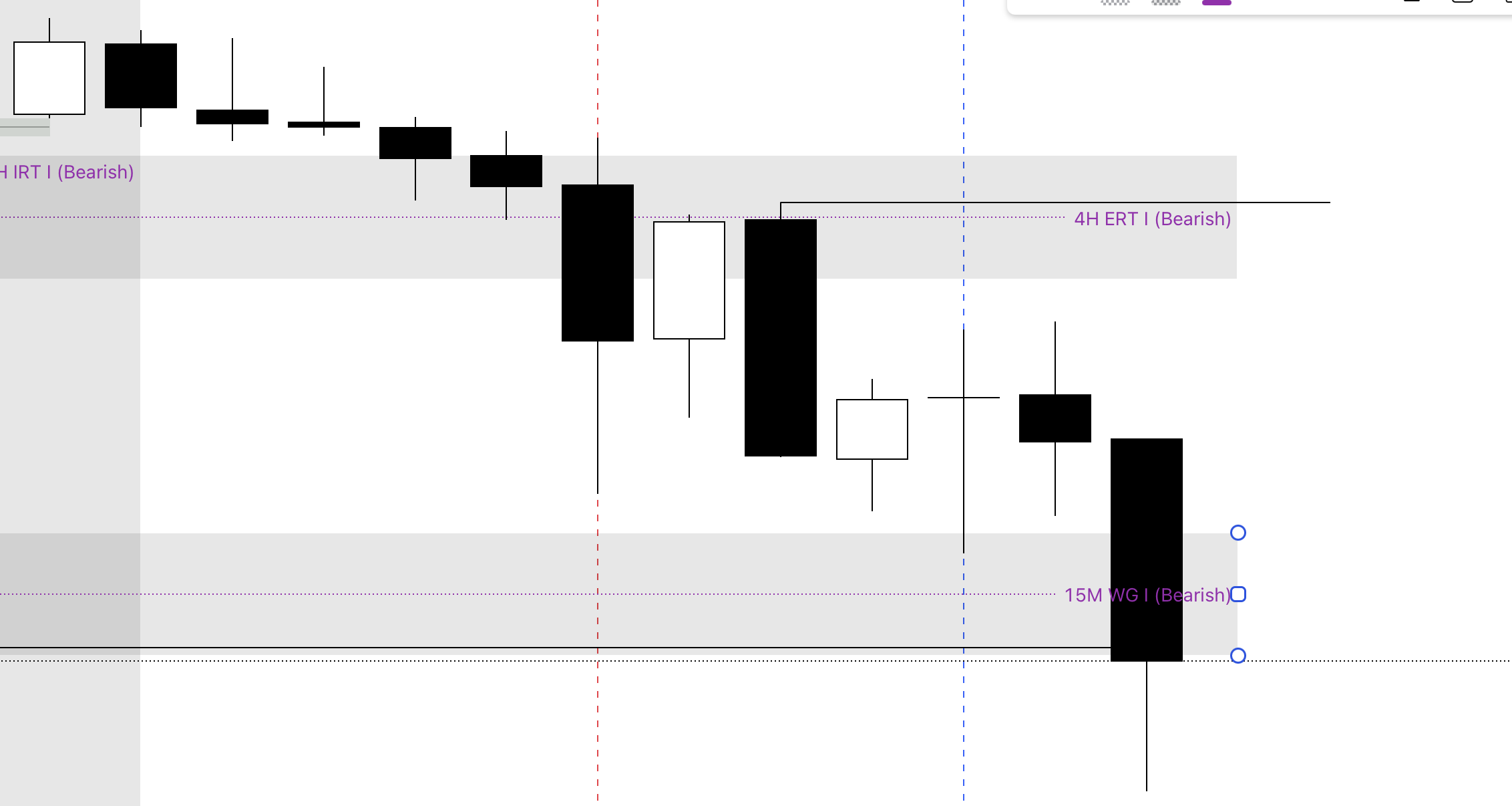 Confluences: A 4H IRT bearish inverse FVG within a bearish; 15M WG inverse FVG.