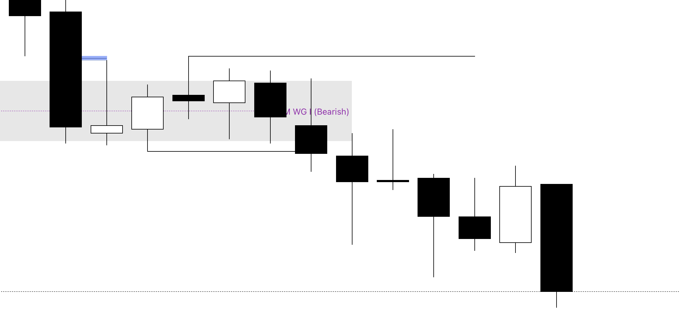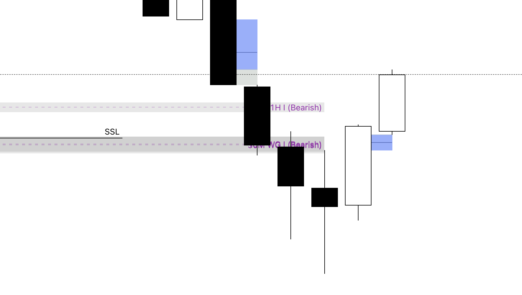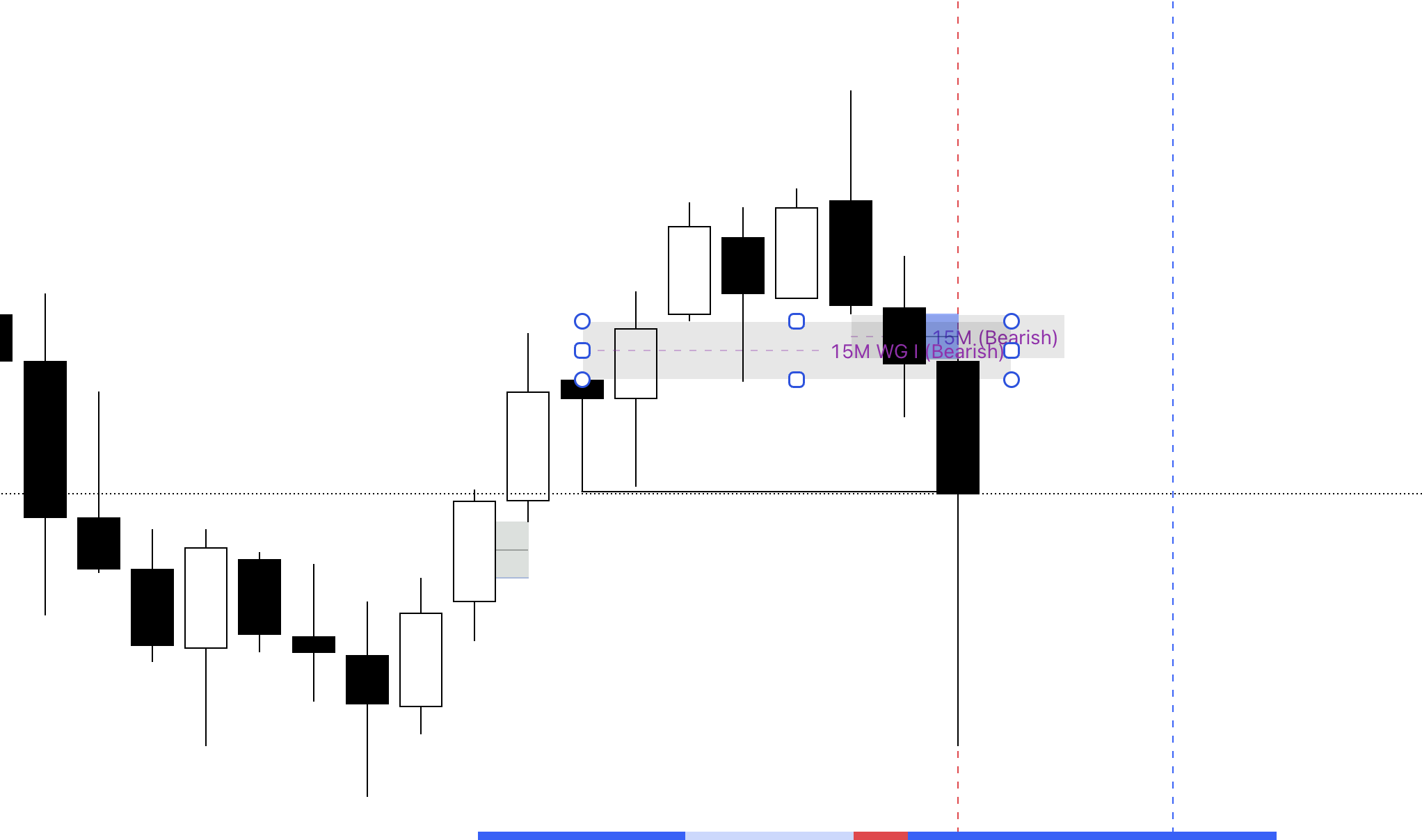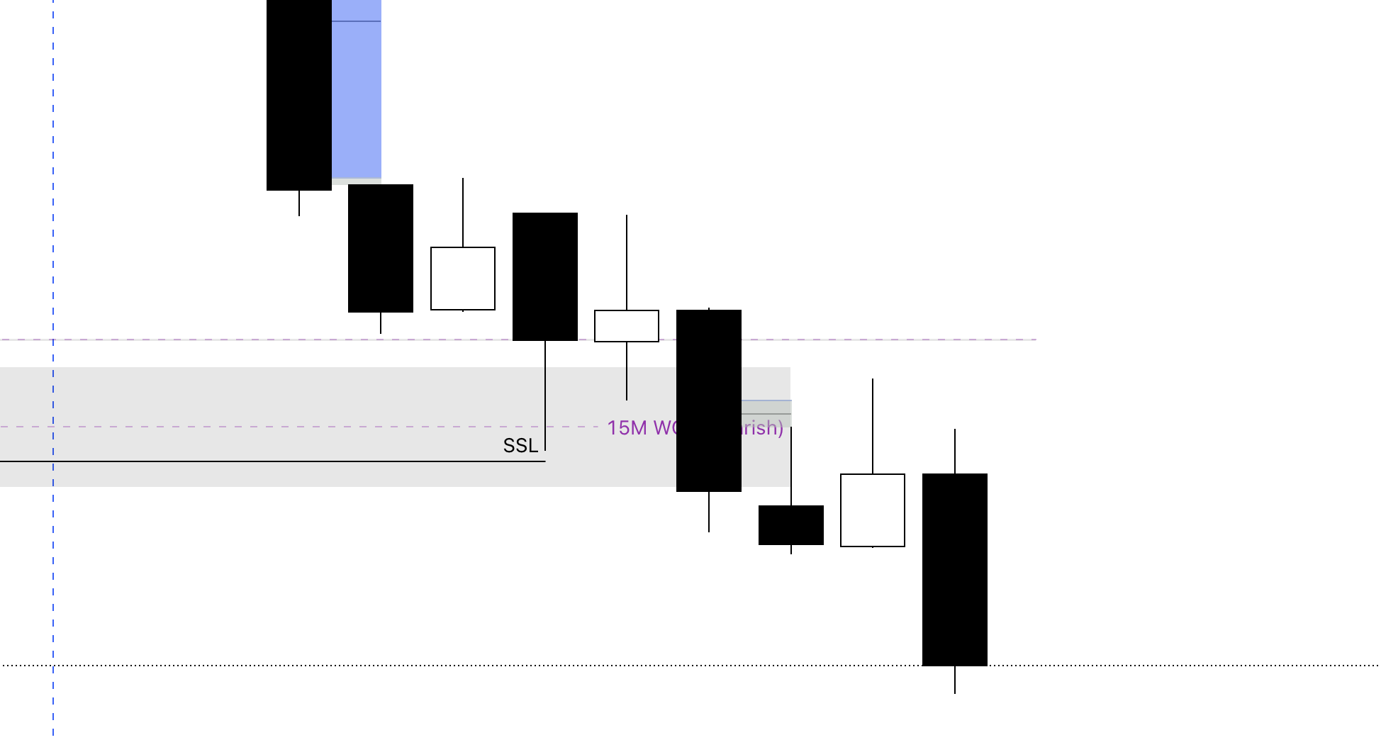 Confluences: A 15M bearish FVG above a bearish; 15M WG Inverse FVG.