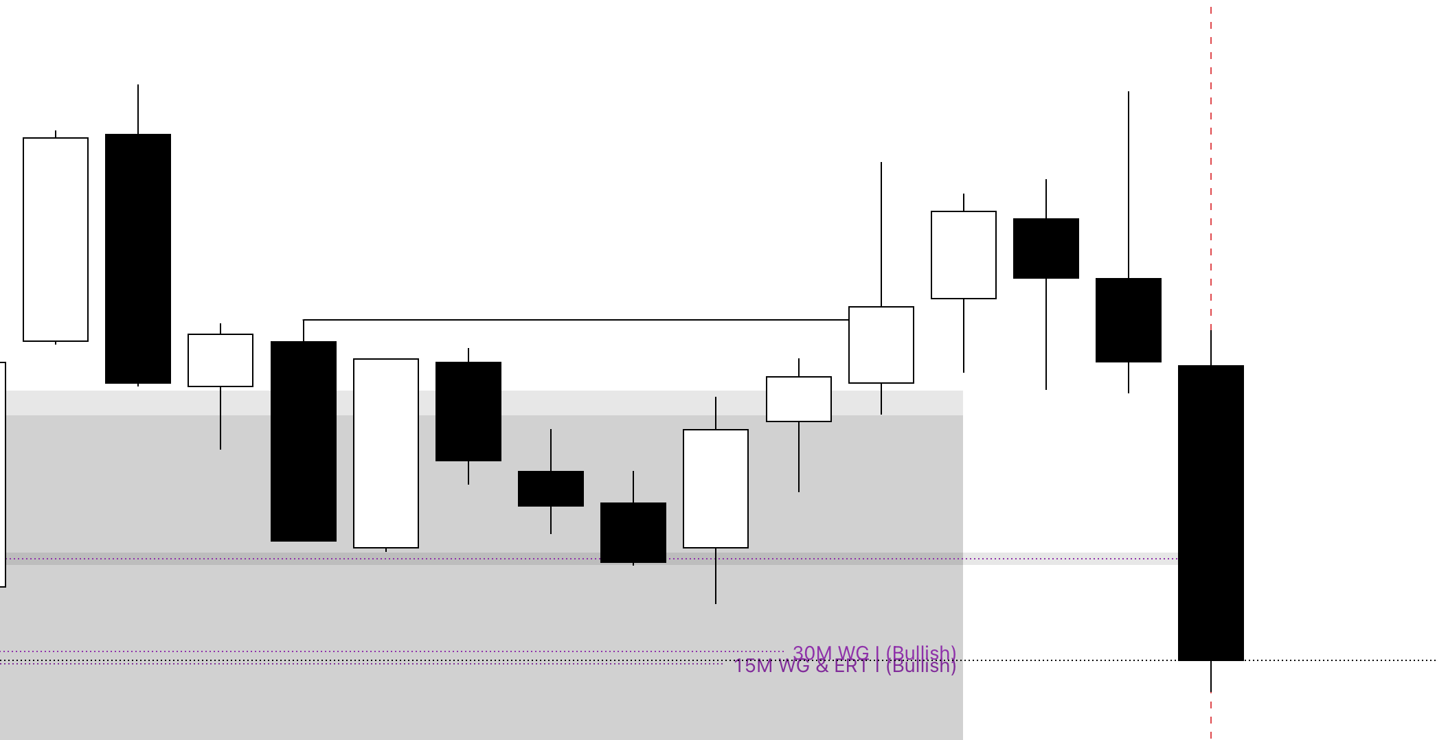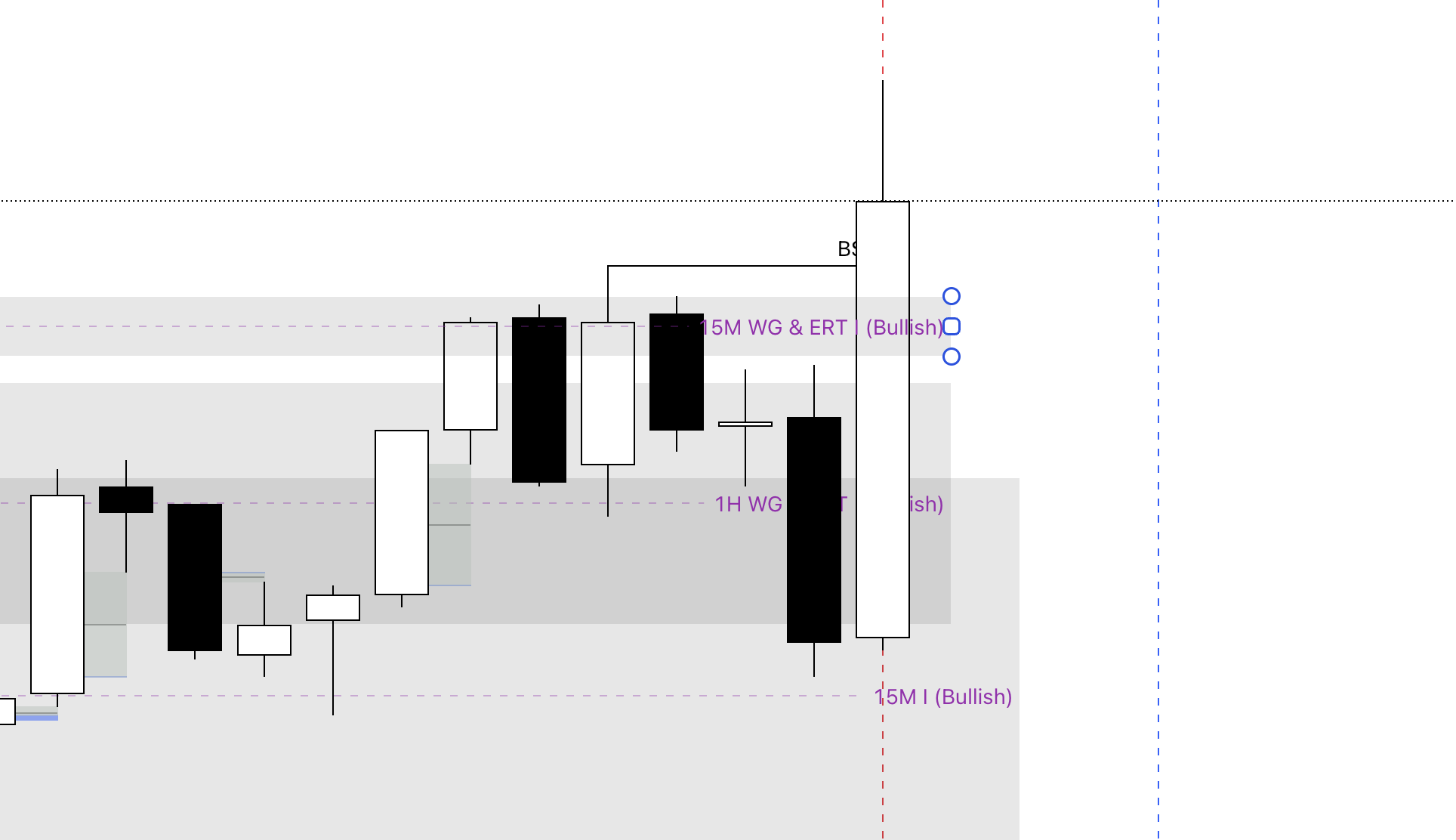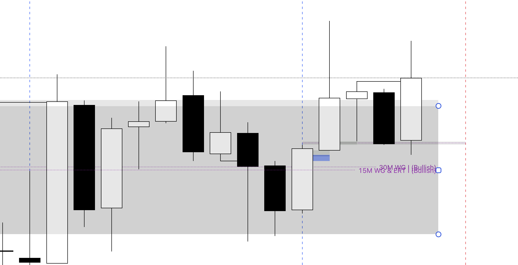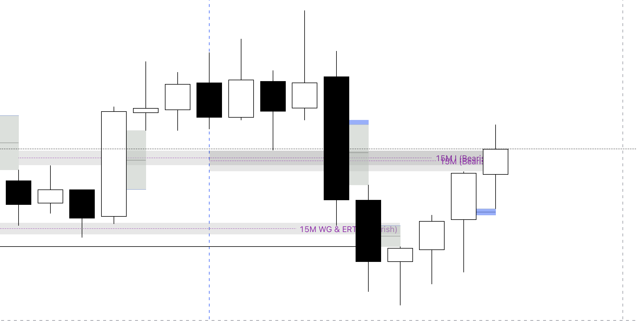 Confluences: A 1H WG & ERT bullish inverse beneath a bullish; 15M WG & ERT inverse FVG.