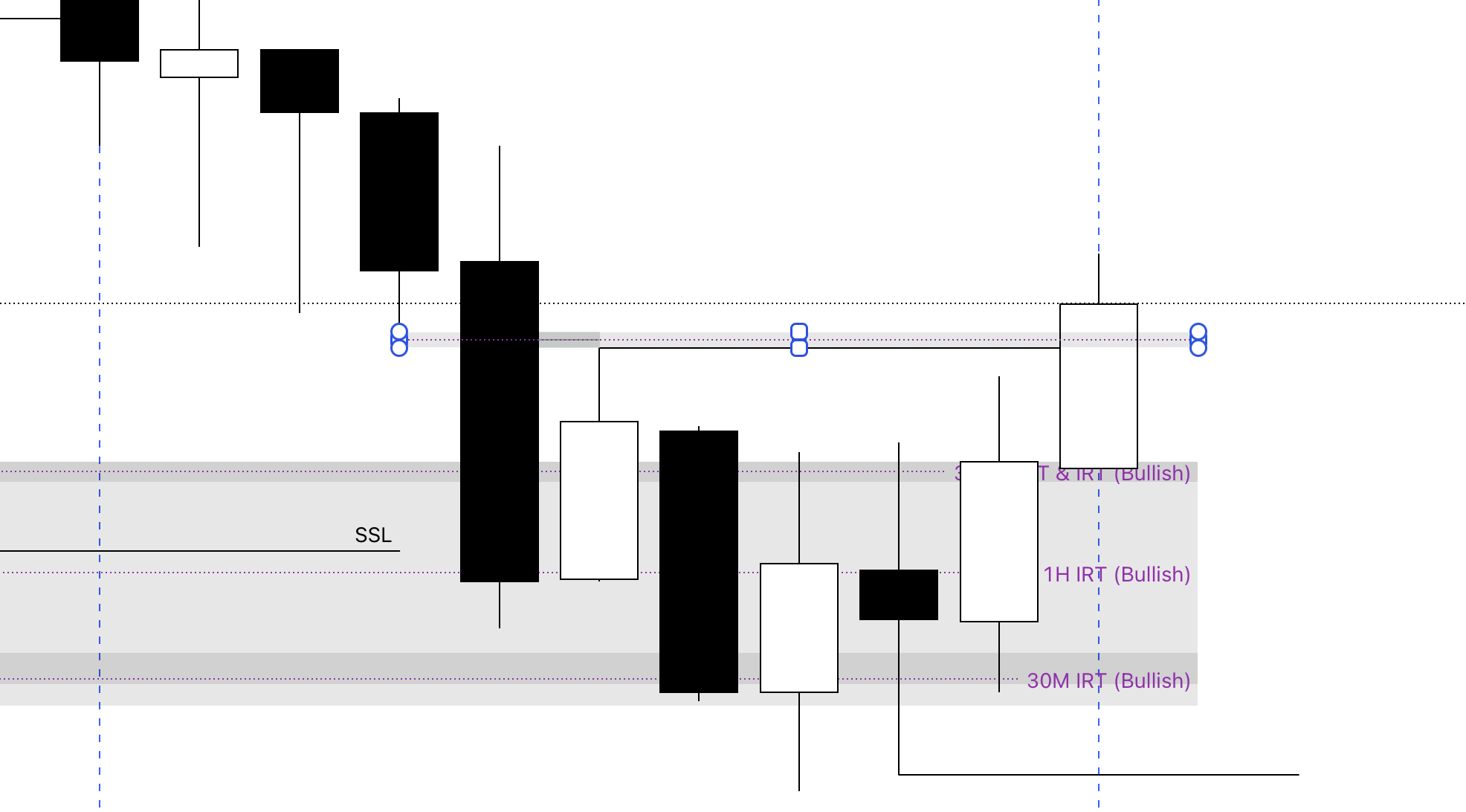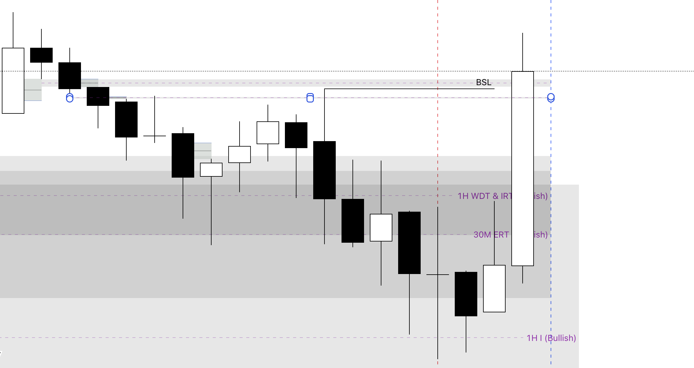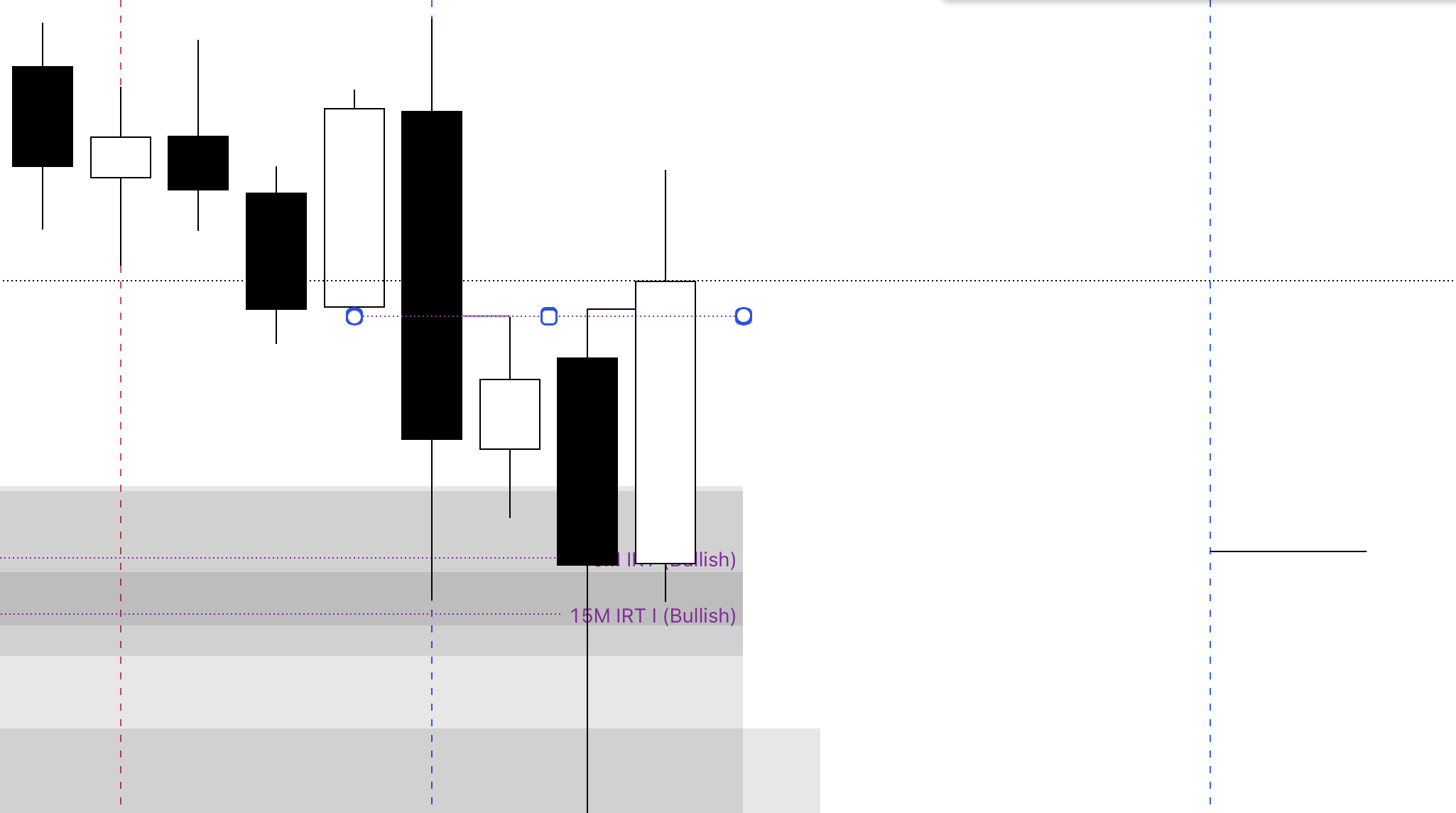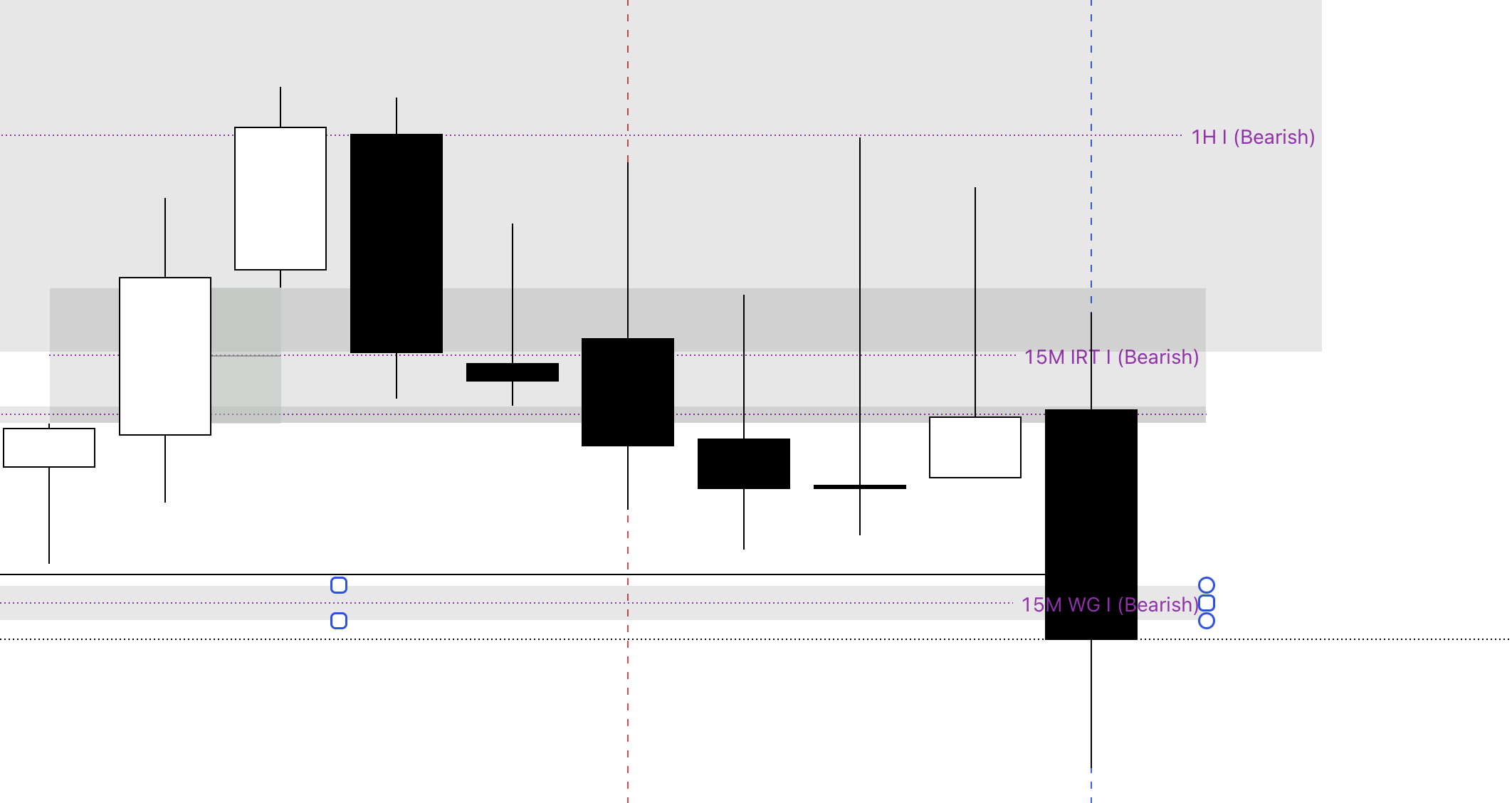 Confluences: A 30M IRT bearish inverse FVG and 15M IRT bearish inverse FVG at the same level above a 15M WG bearish inverse FVG.