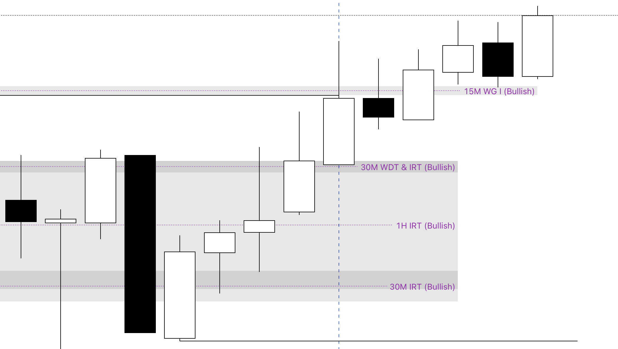 Confluences: A 30M WG & IRT bullish inverse FVG within a 15M WG bullish inverse FVG.