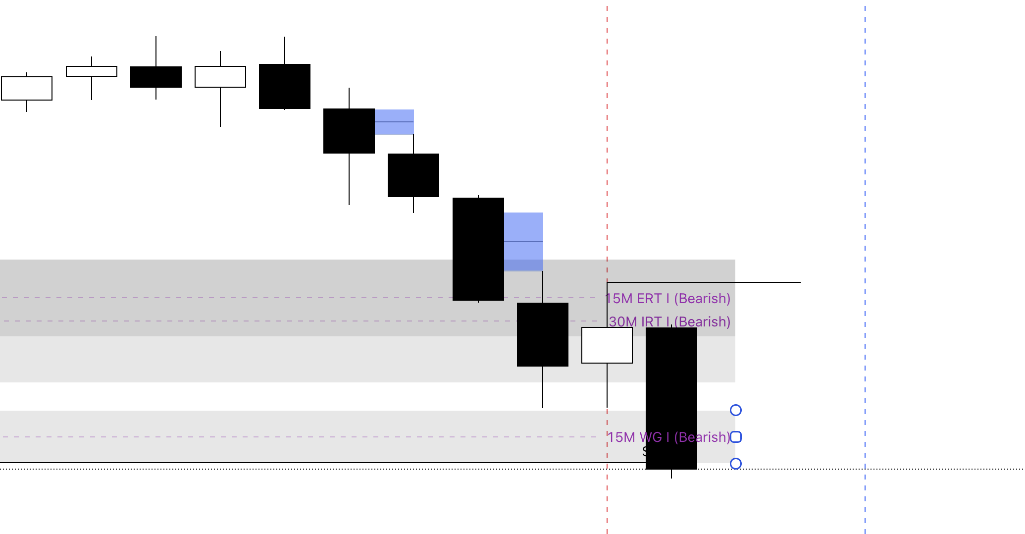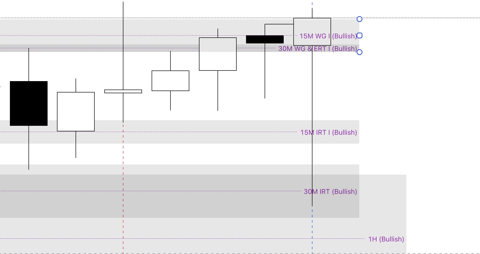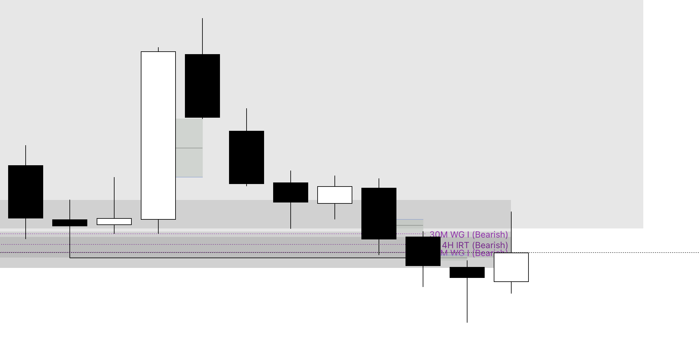 Confluences: A 30M IRT bearish inverse FVG above a 15M WG bearish inverse FVG.