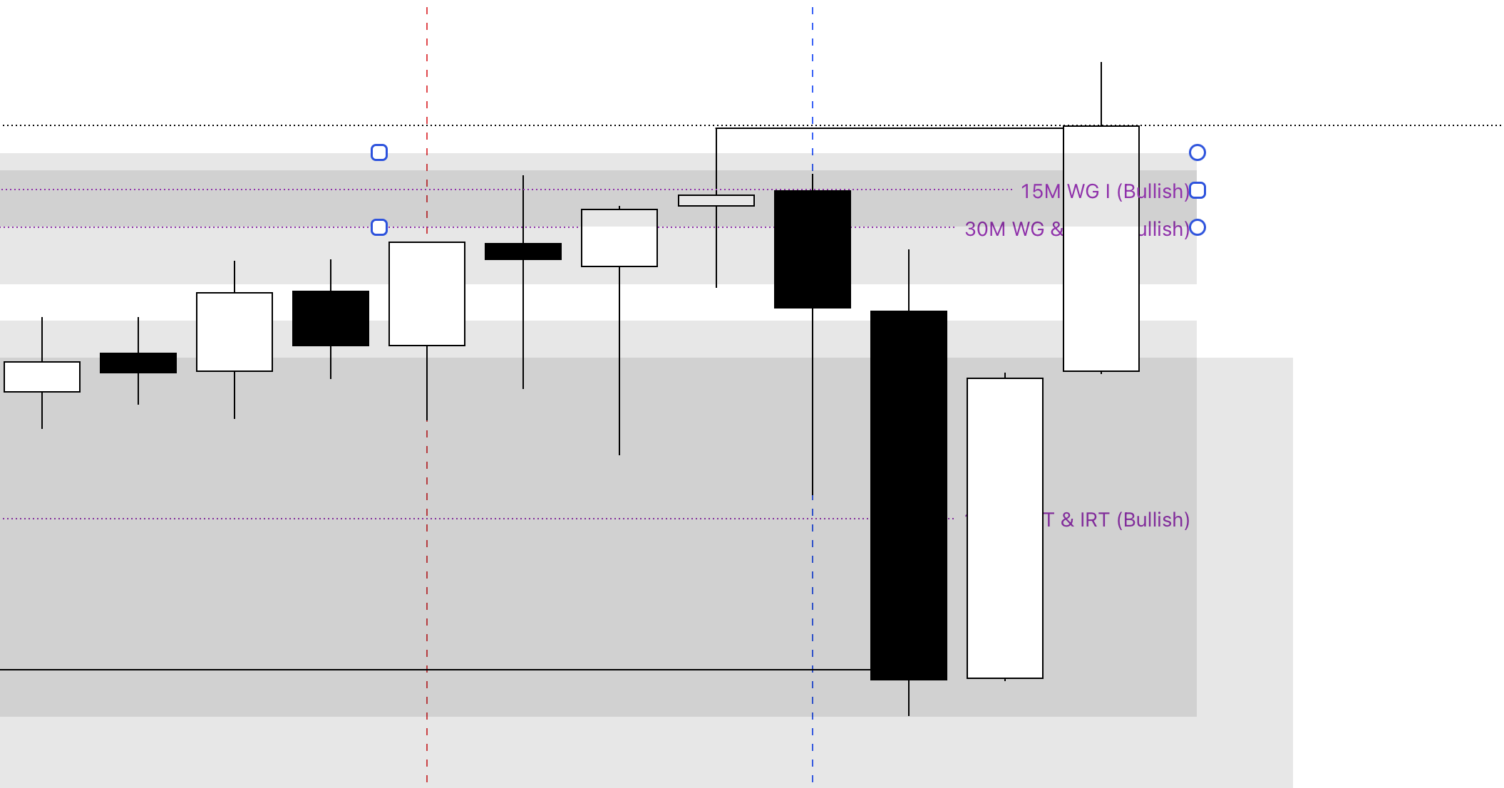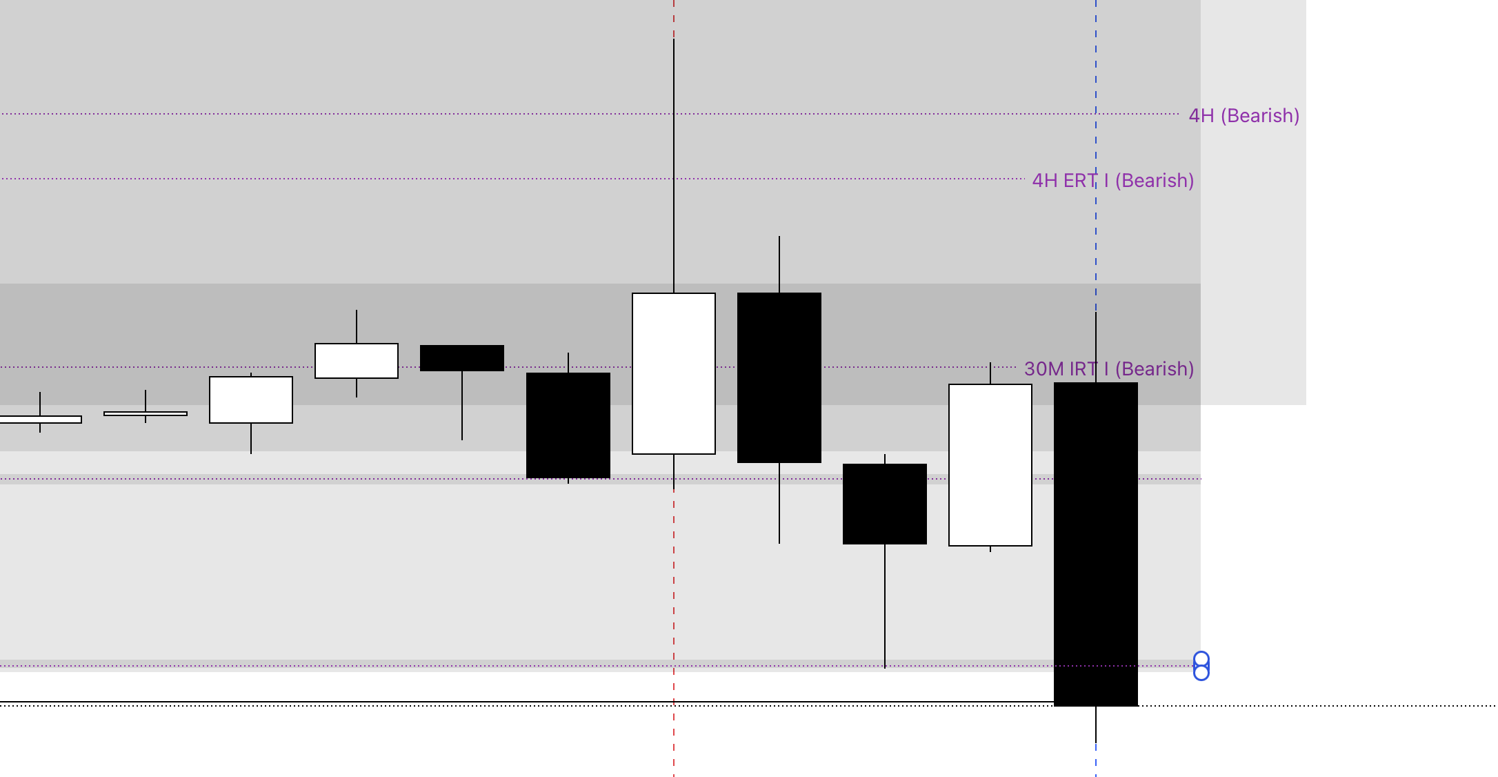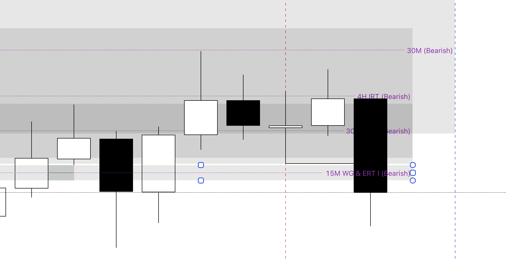 Confluences: A 30M IRT bearish inverse FVG above a 15M WG bearish inverse FVG.