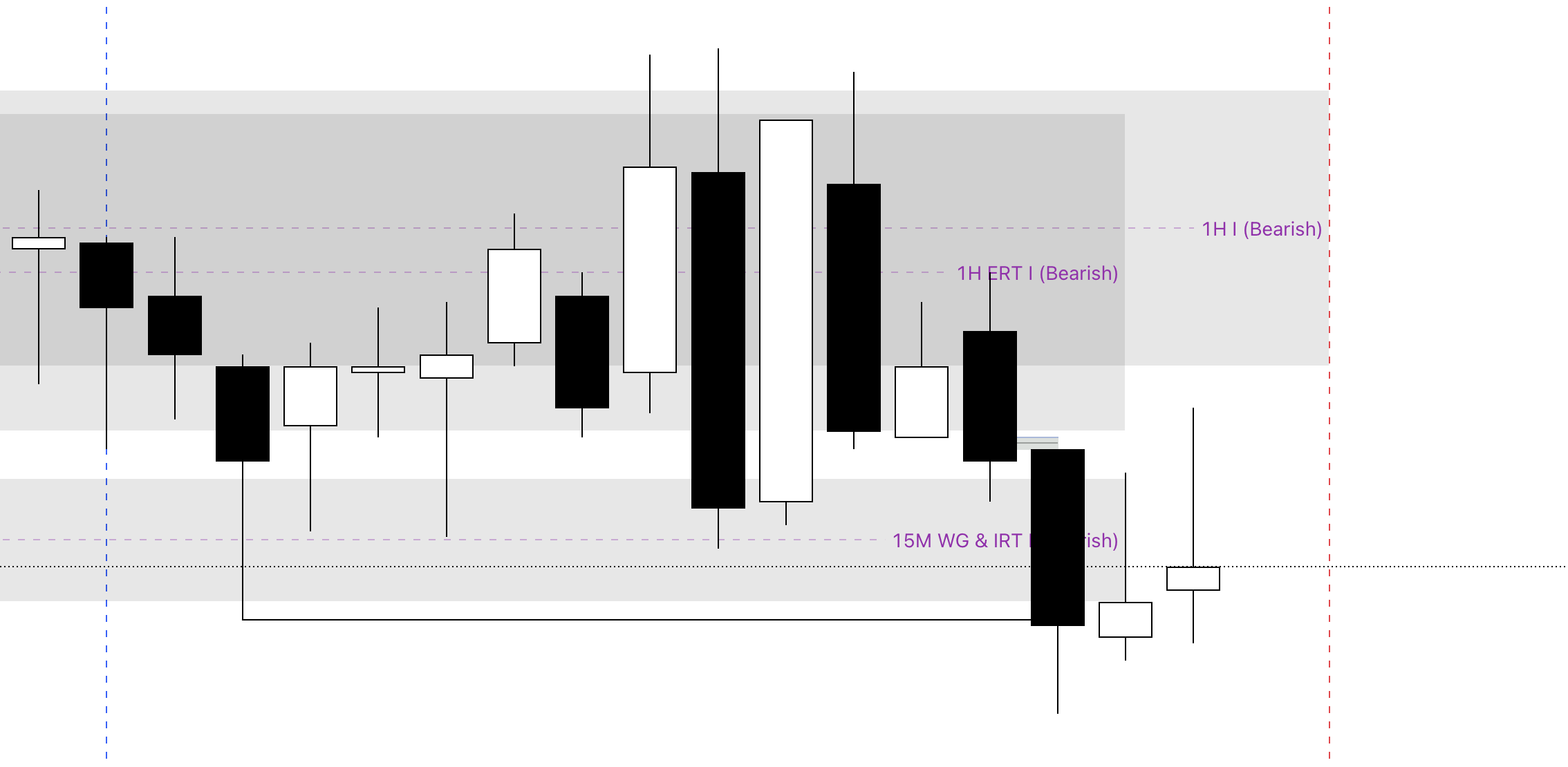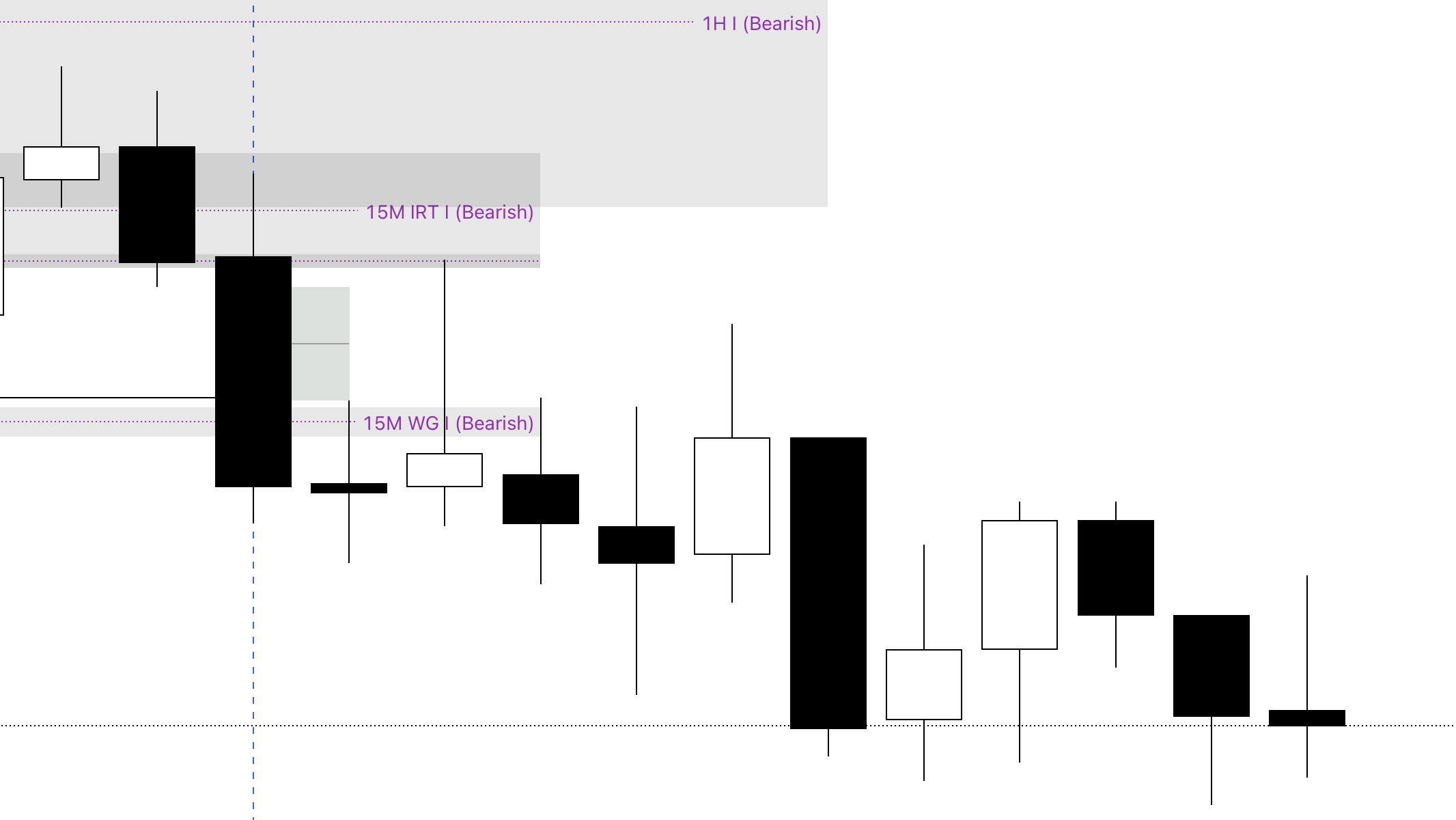 Confluences: A 1H IRT bearish FVG within a bearish; 15M WG inverse FVG.