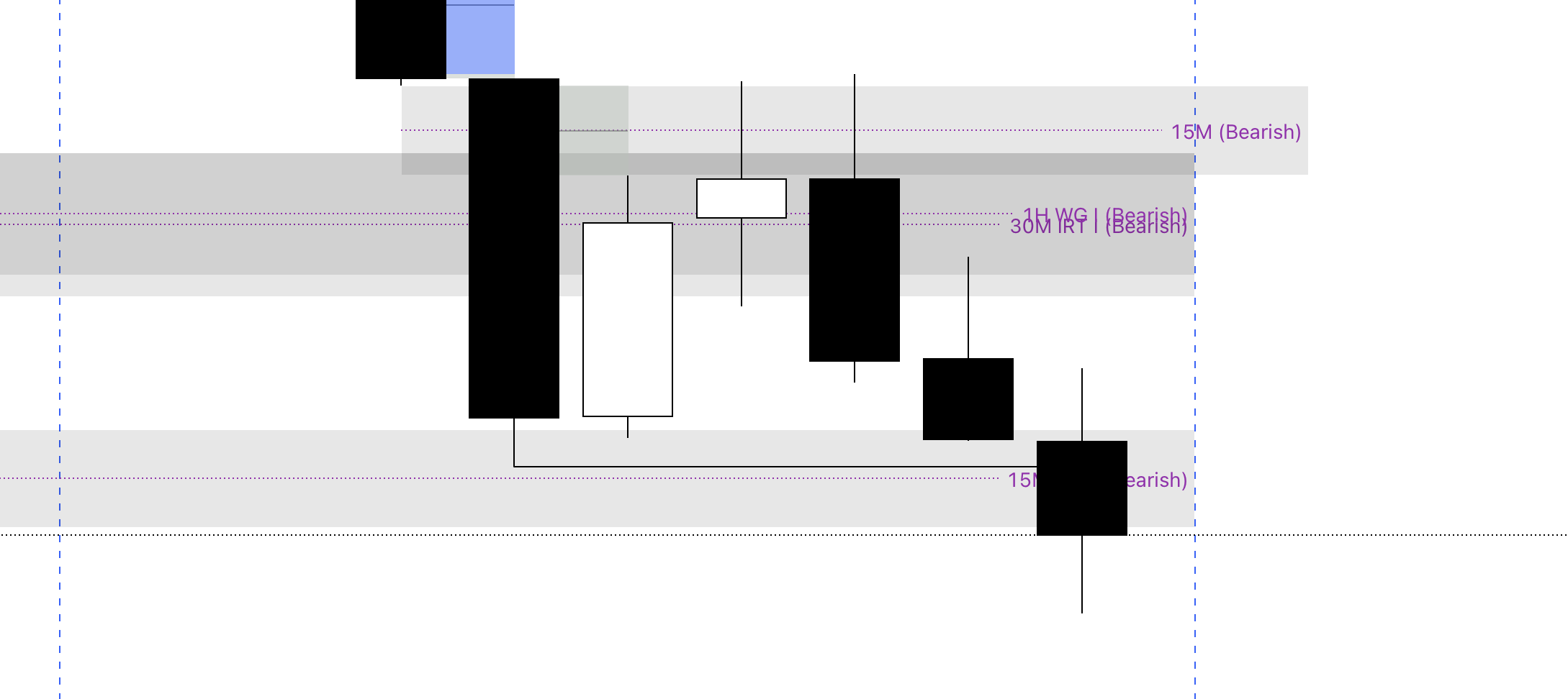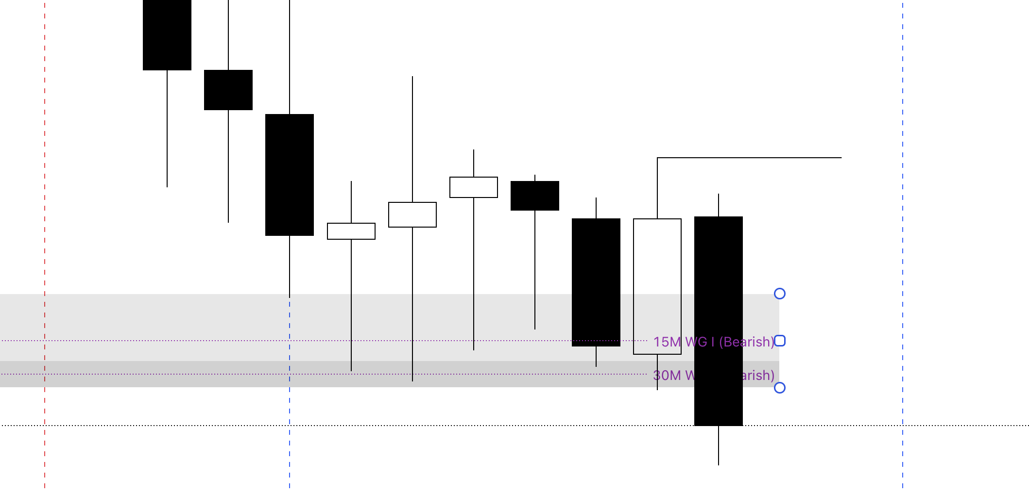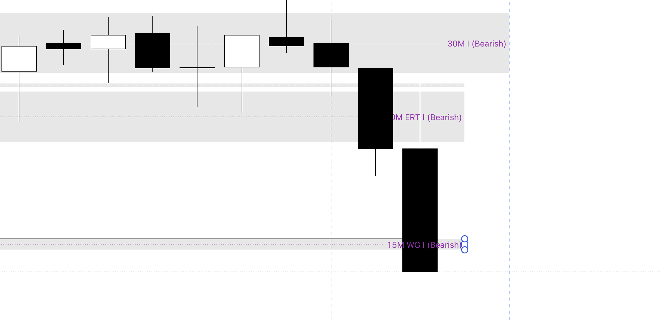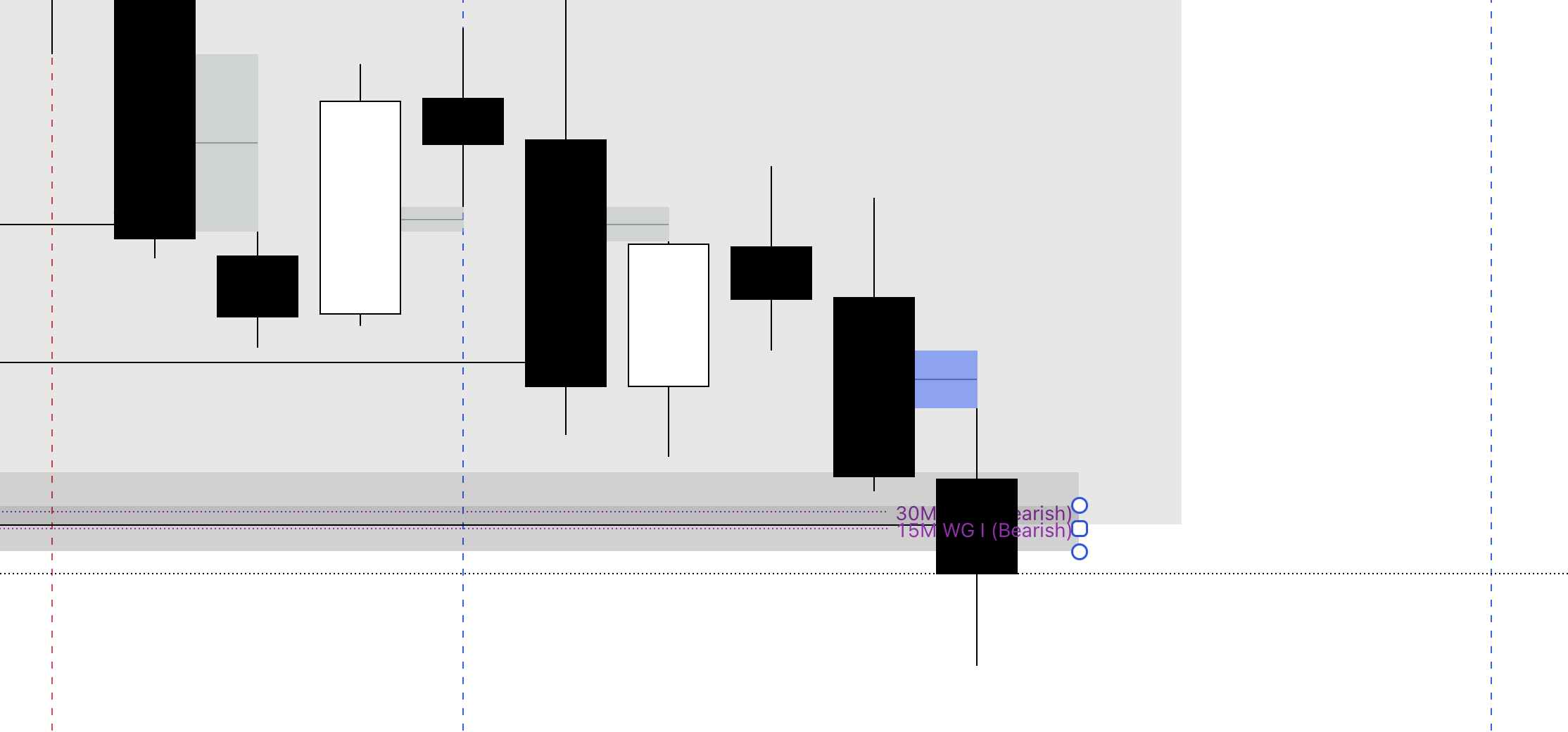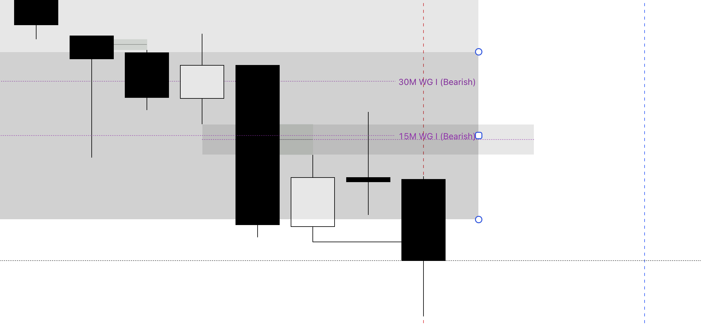 Confluences: A 30M bearish FVG above a 15M WG bearish inverse FVG.
