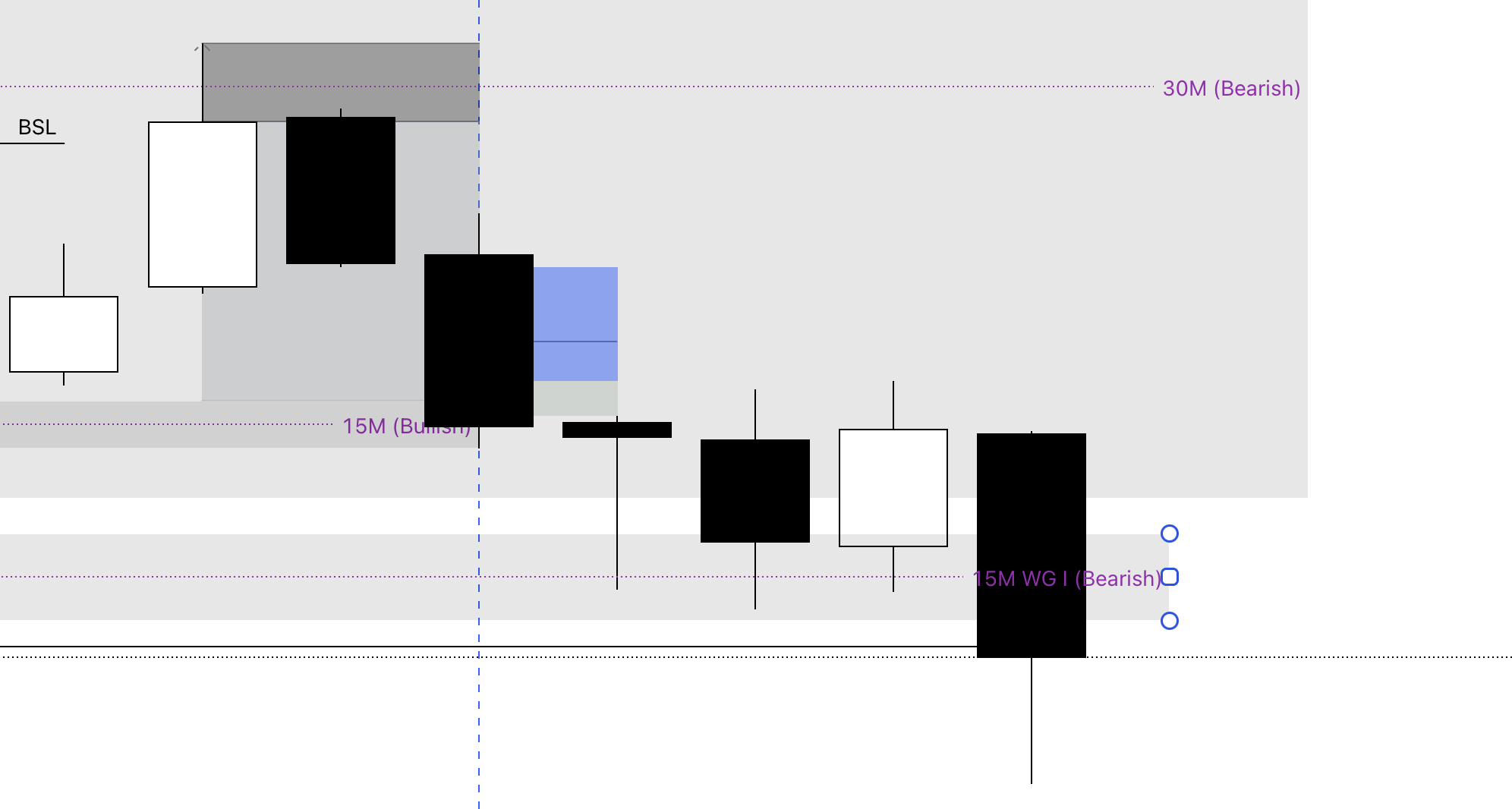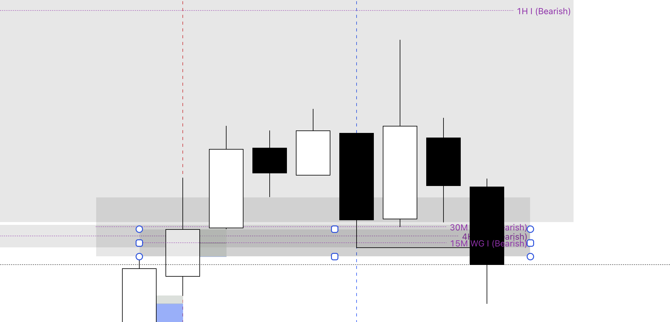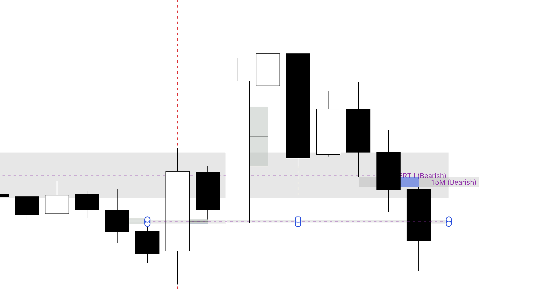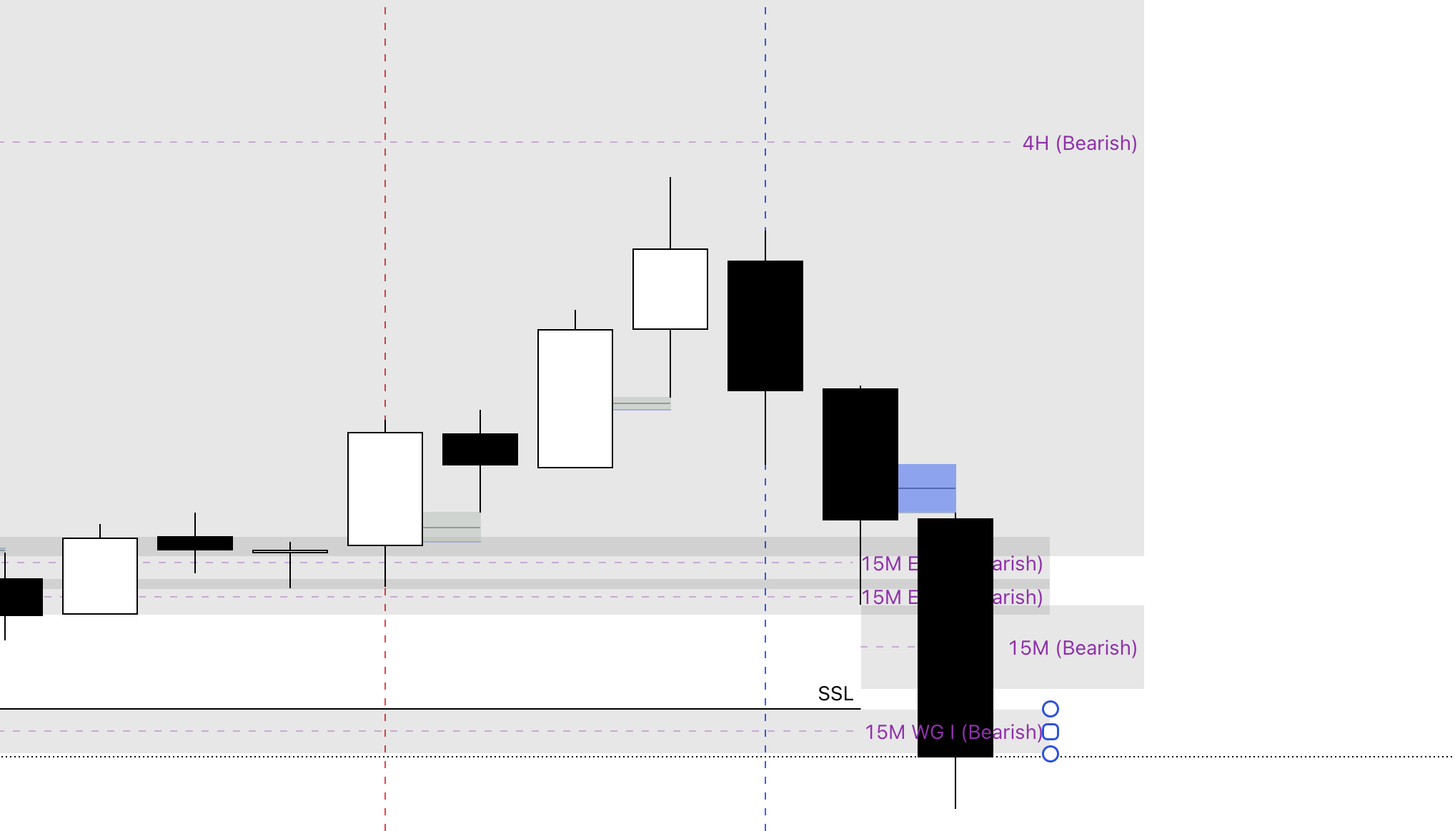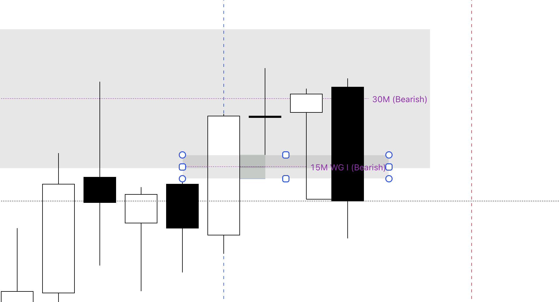 Confluences: A 30M bearish FVG above a 15M WG bearish inverse FVG.