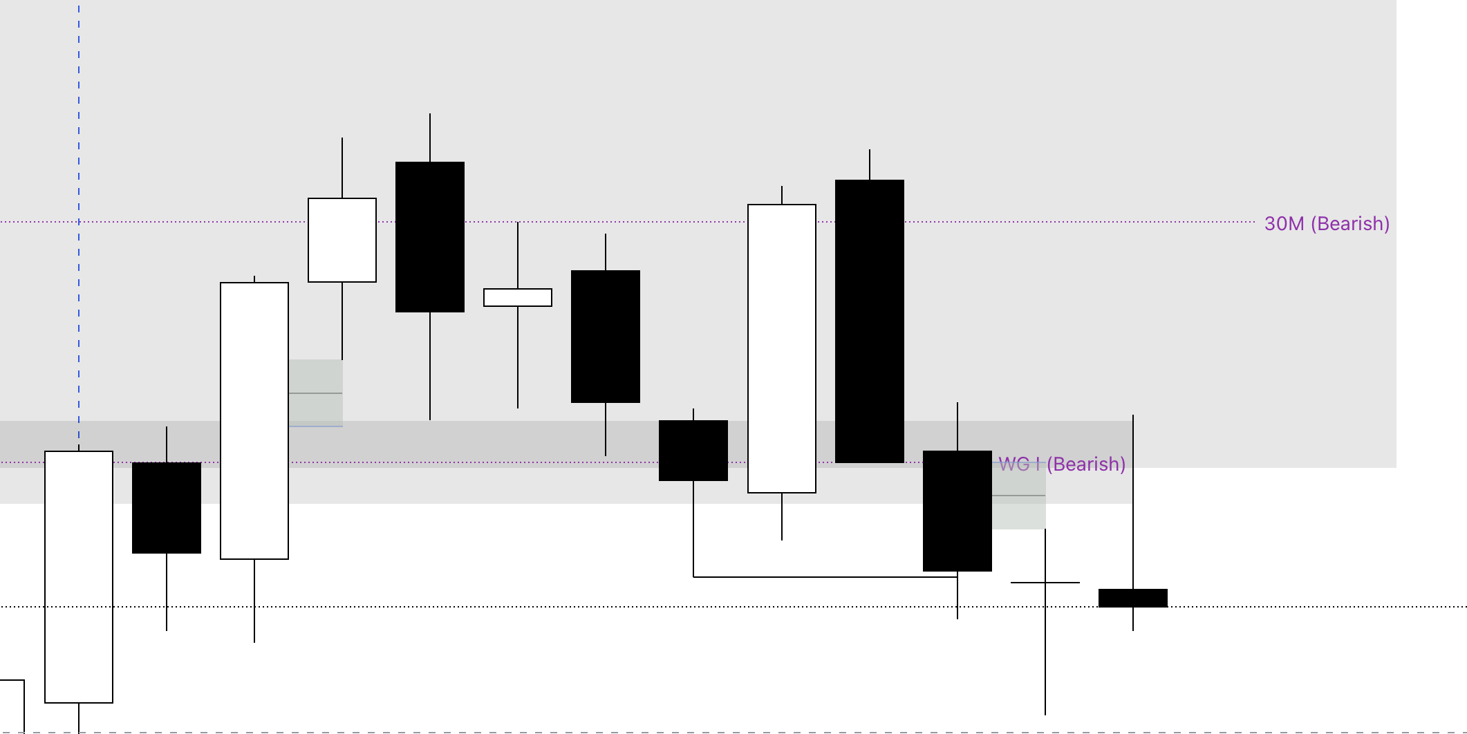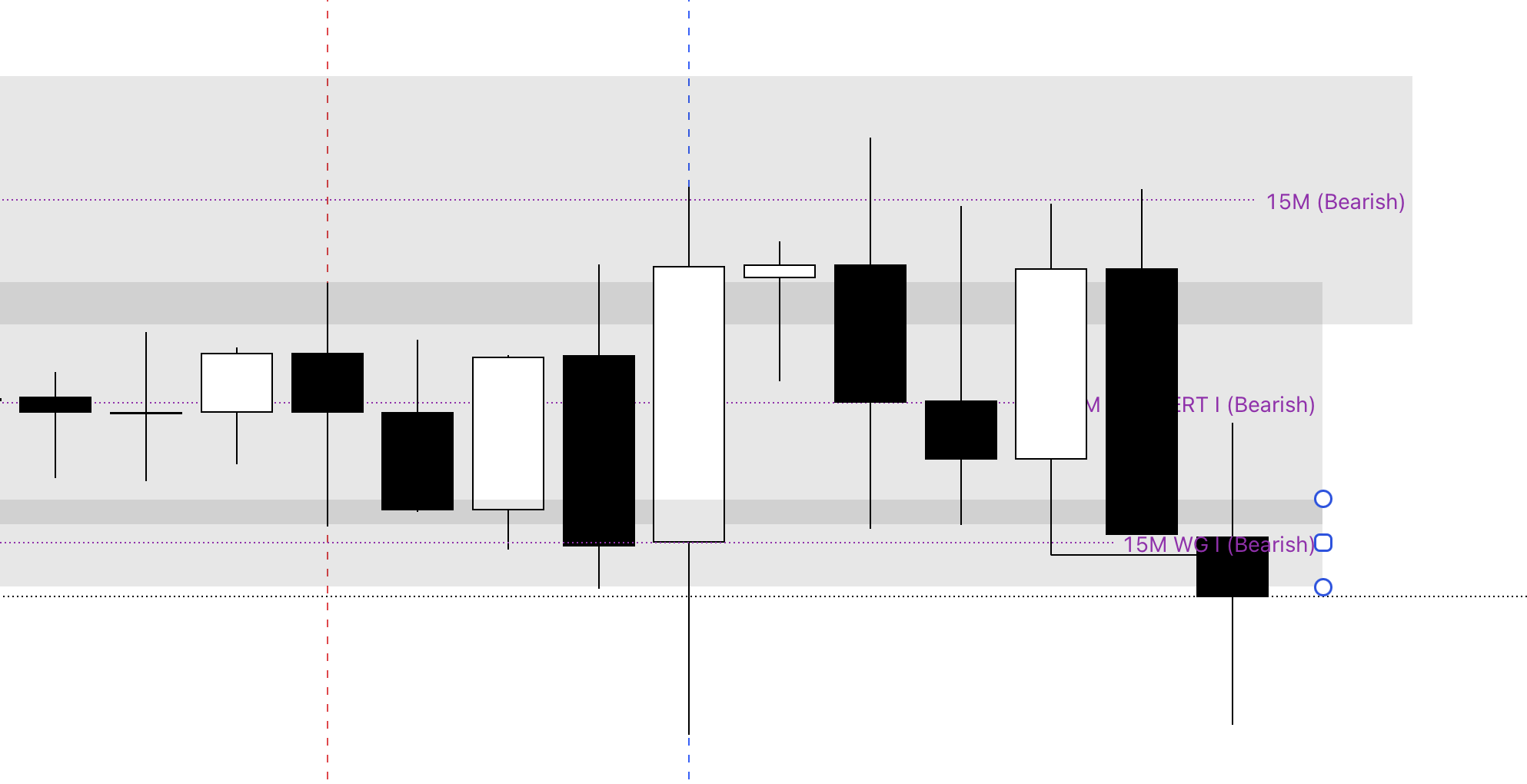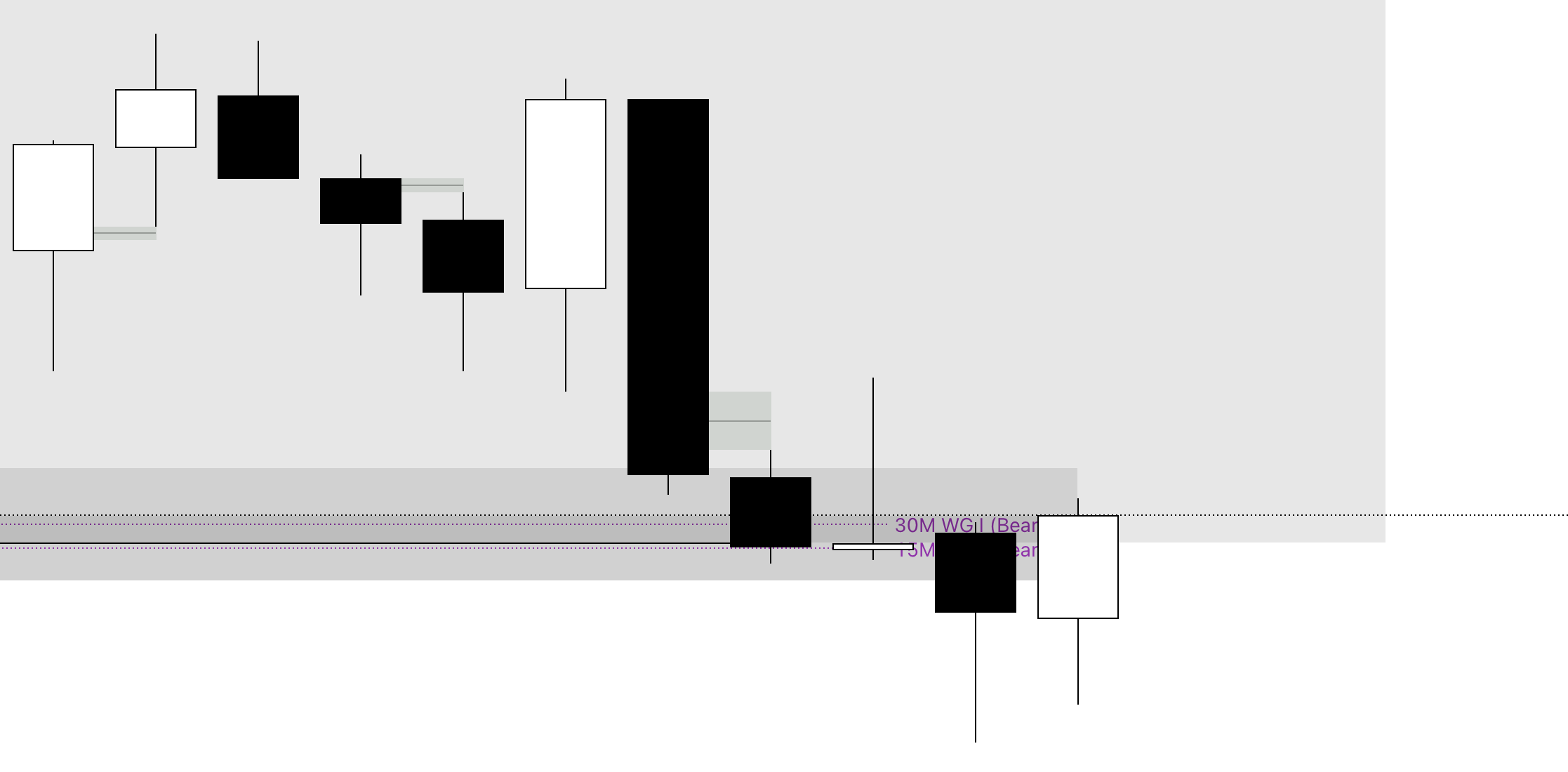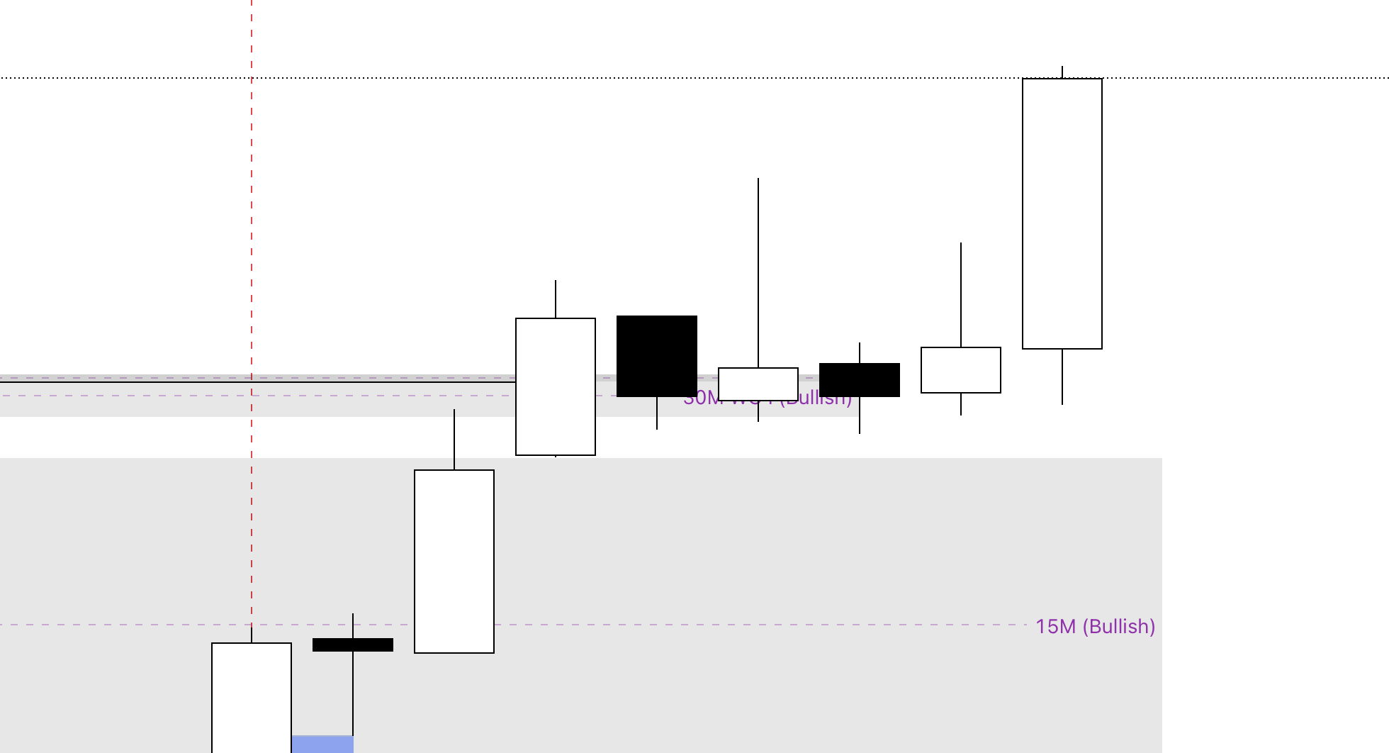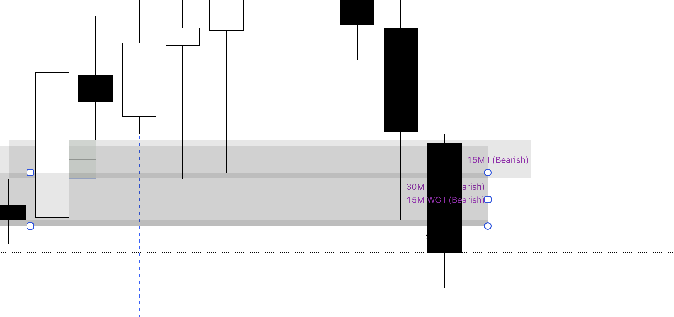 Confluences: A 30M bearish FVG above a 15M WG bearish inverse FVG.