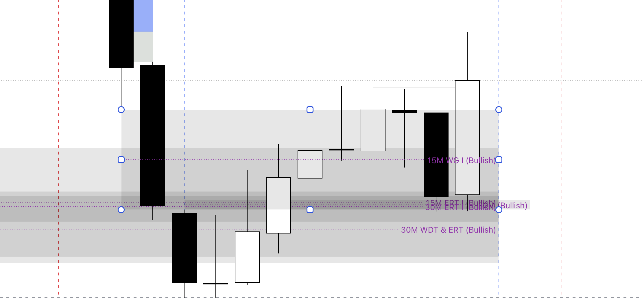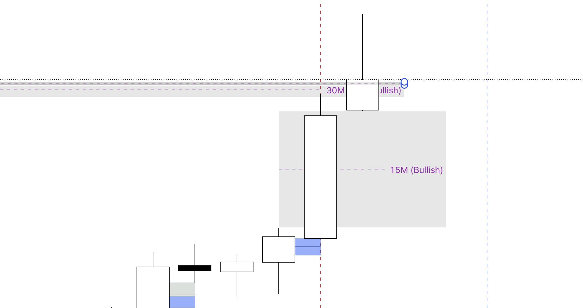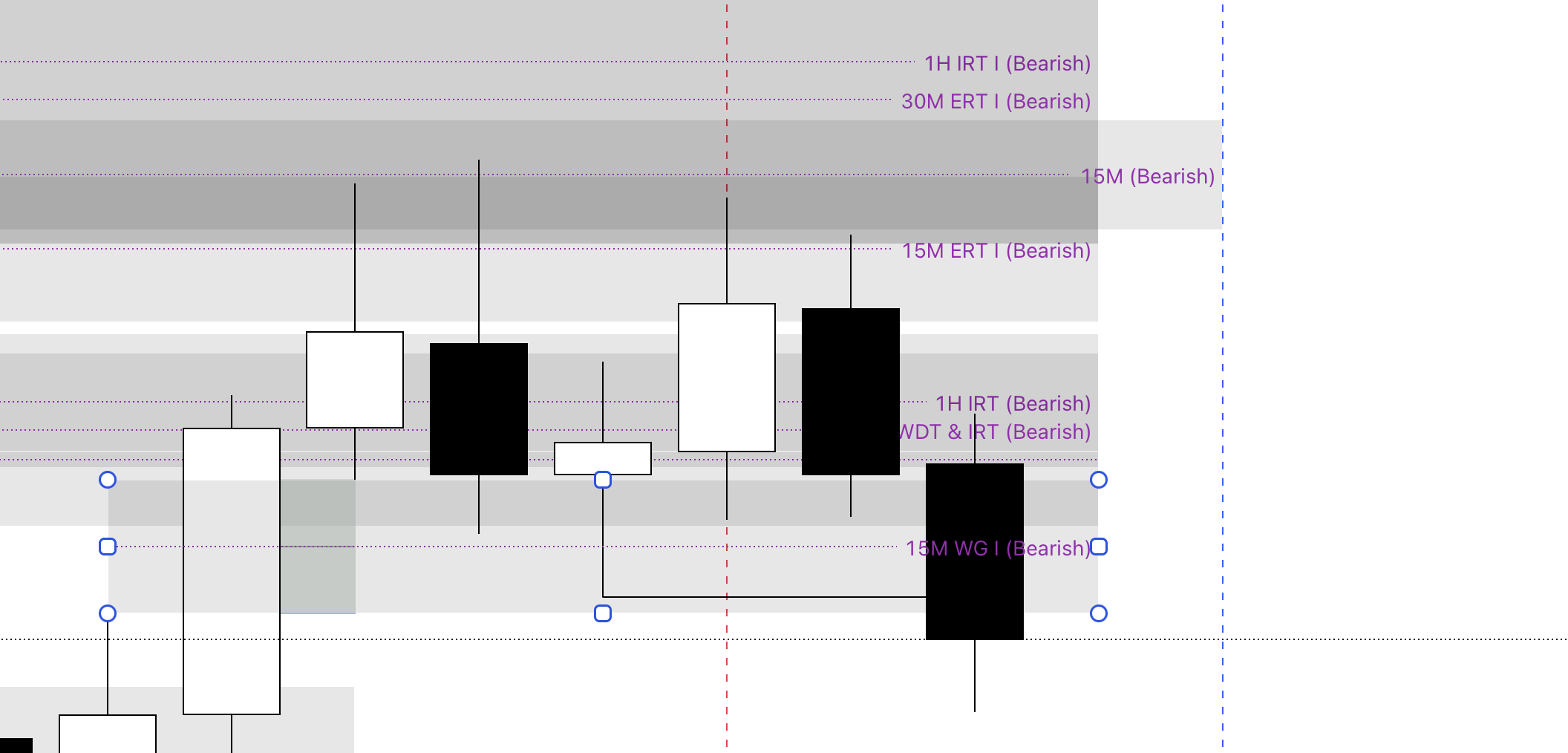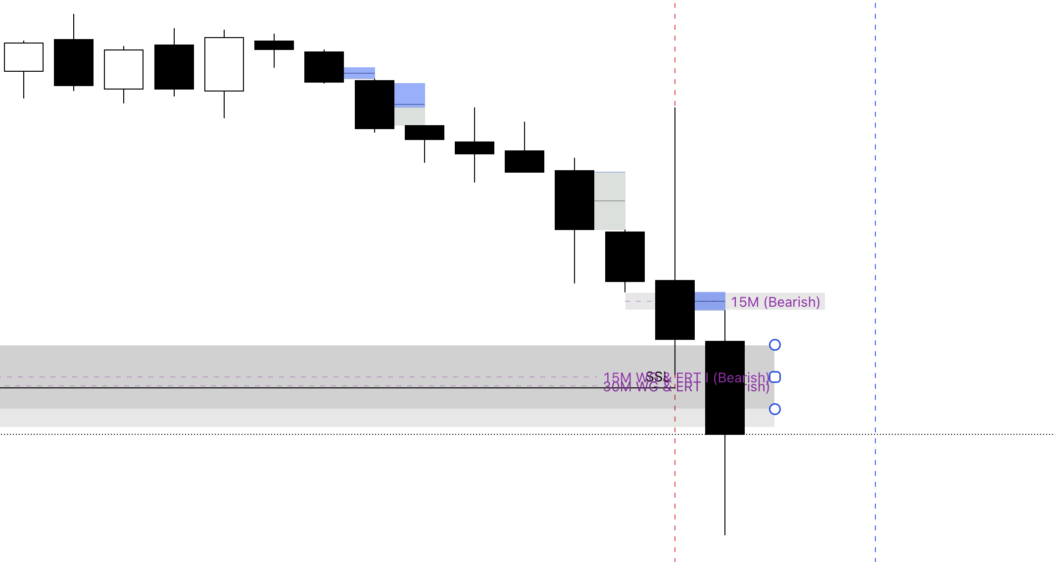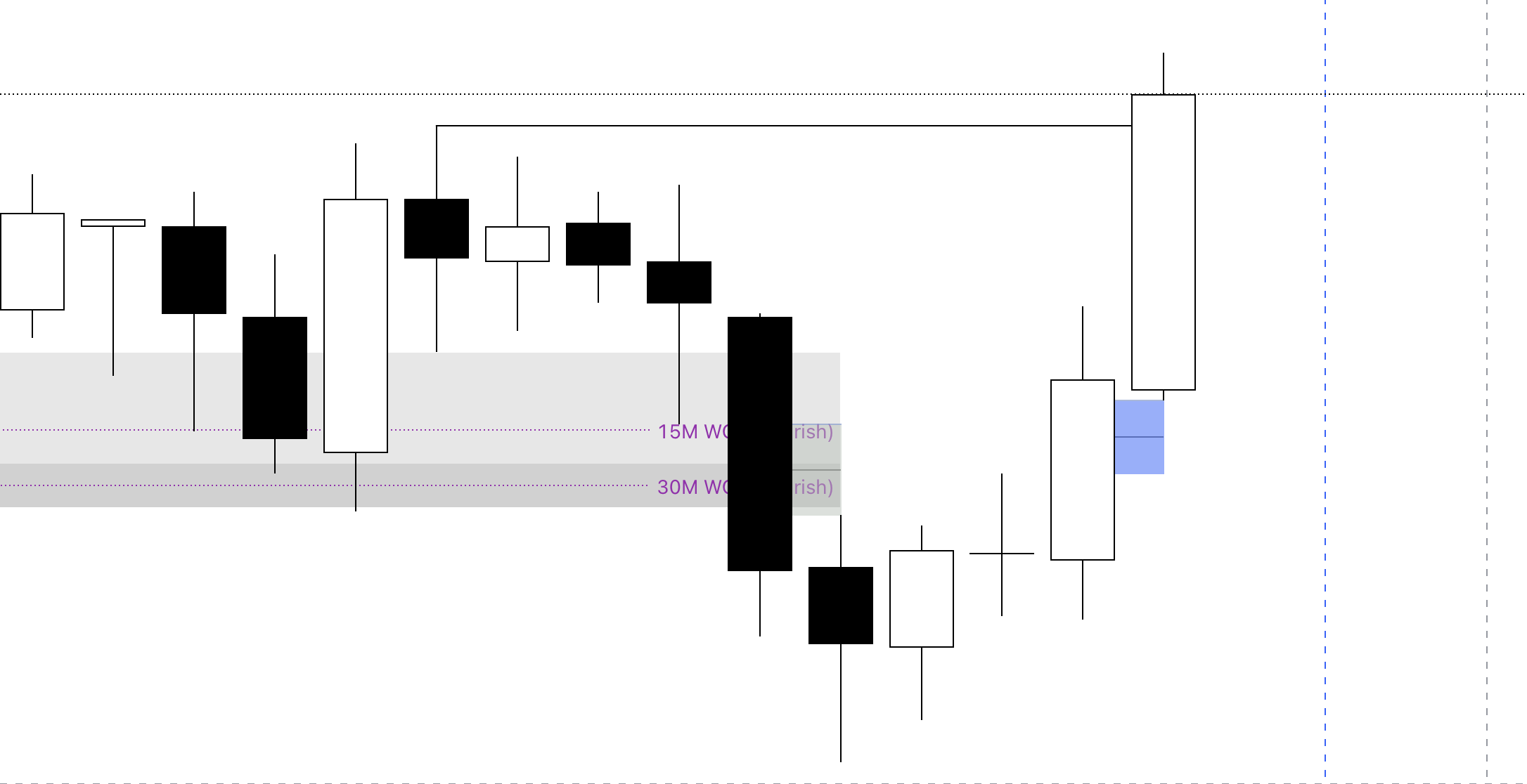Confluences: A 30M bearish FVG above a 15M WG bearish inverse FVG.
