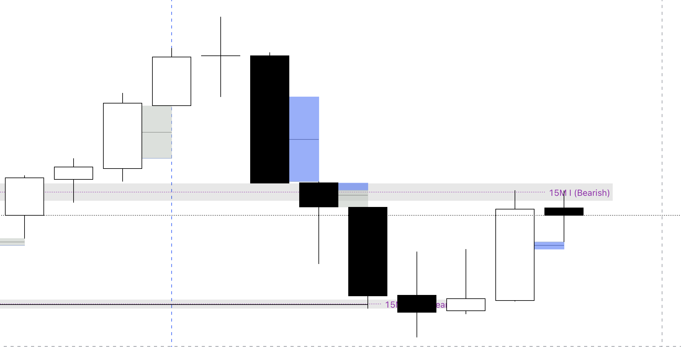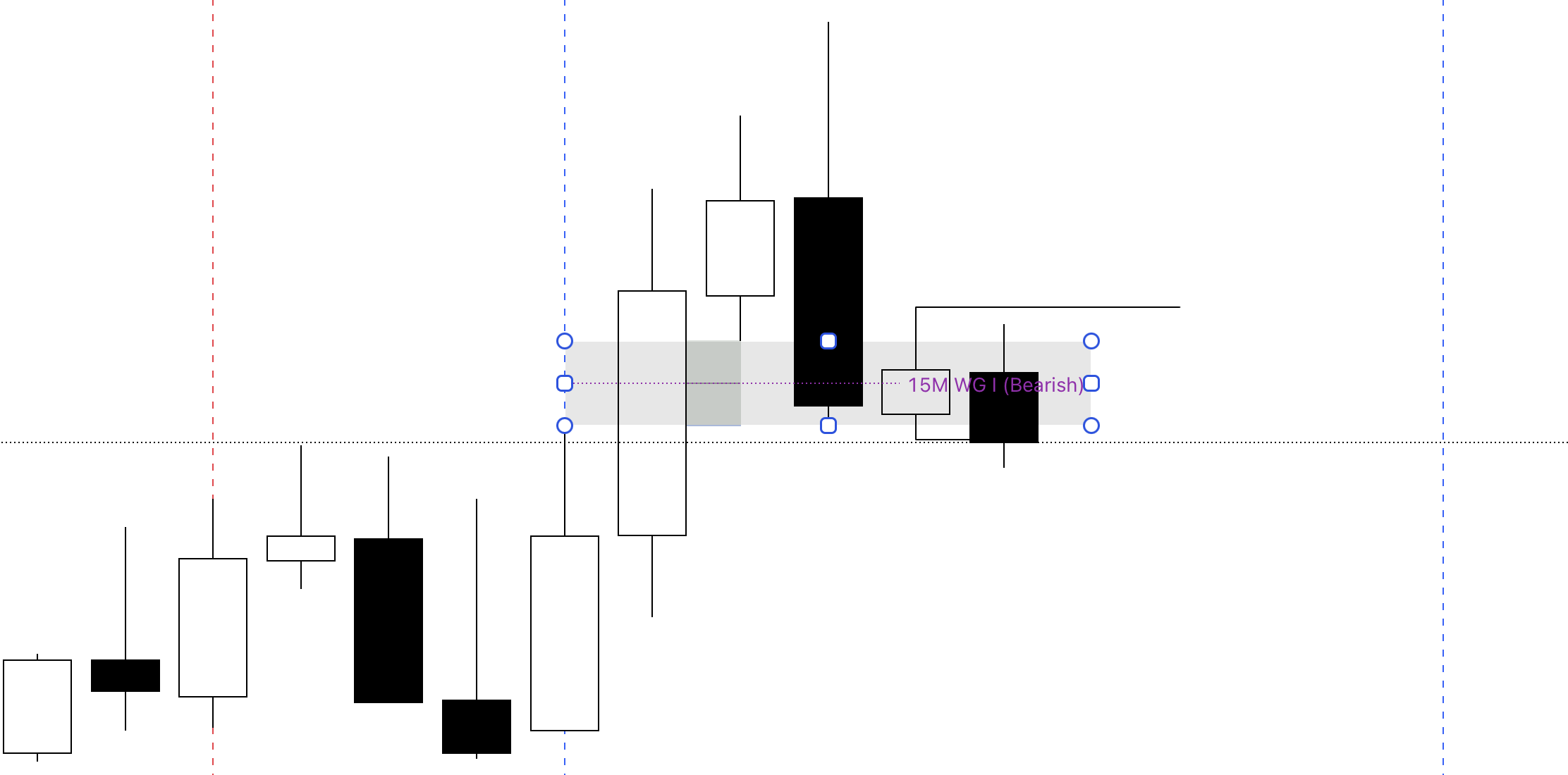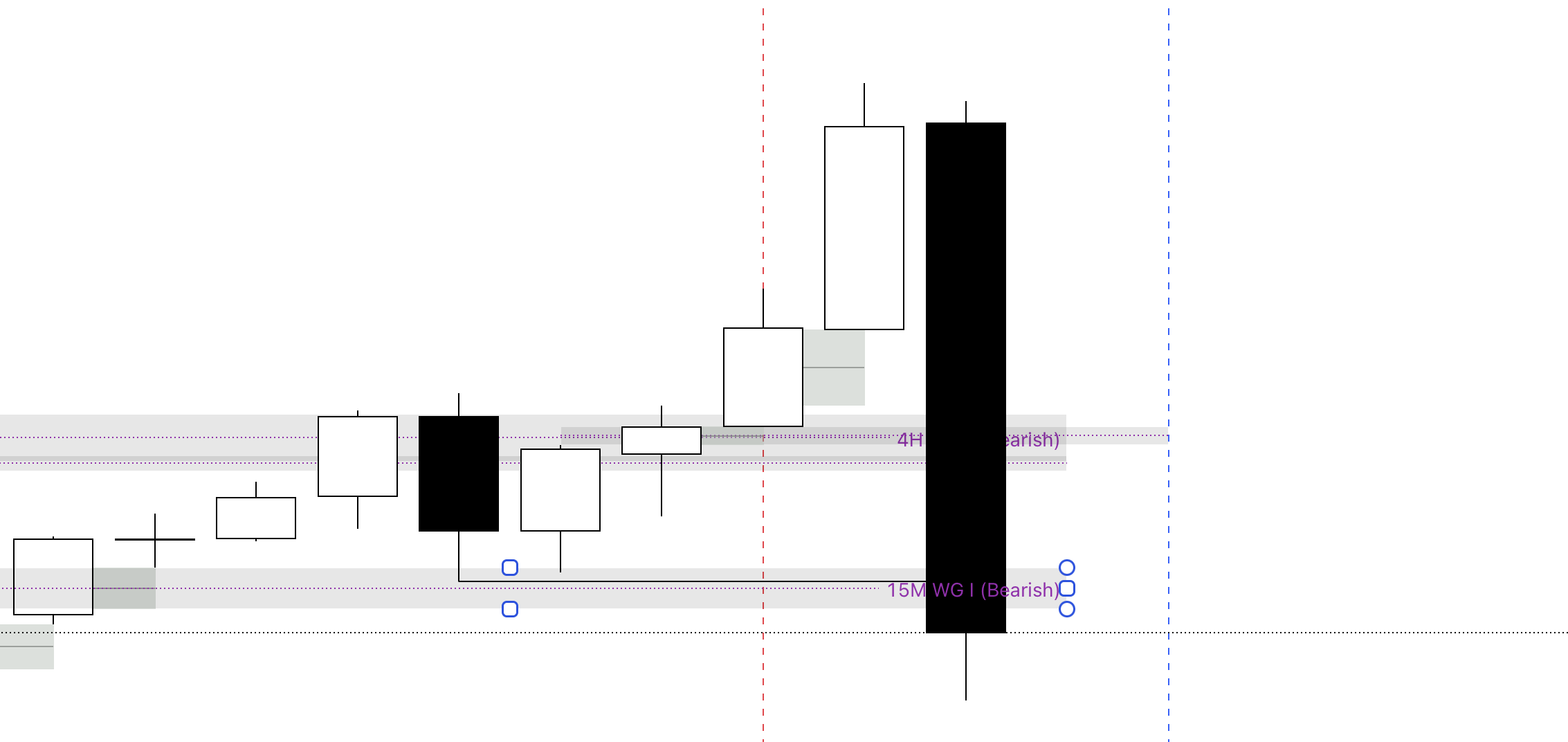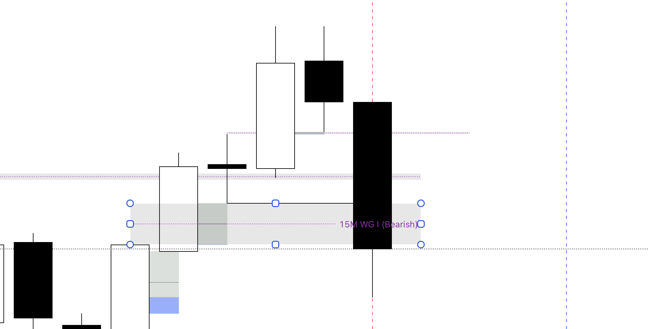Confluences: A 15M bearish inverse FVG above a 15M WG bearish inverse FVG.