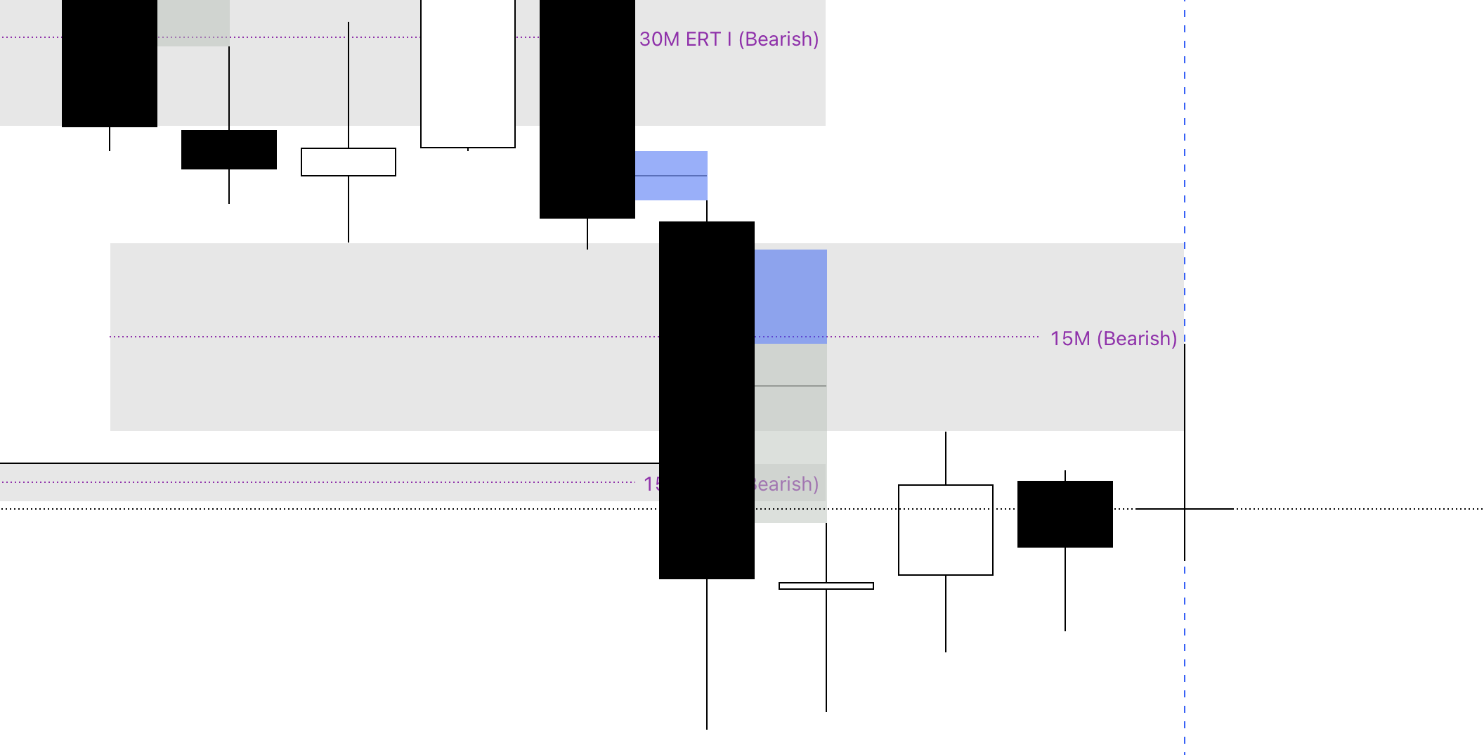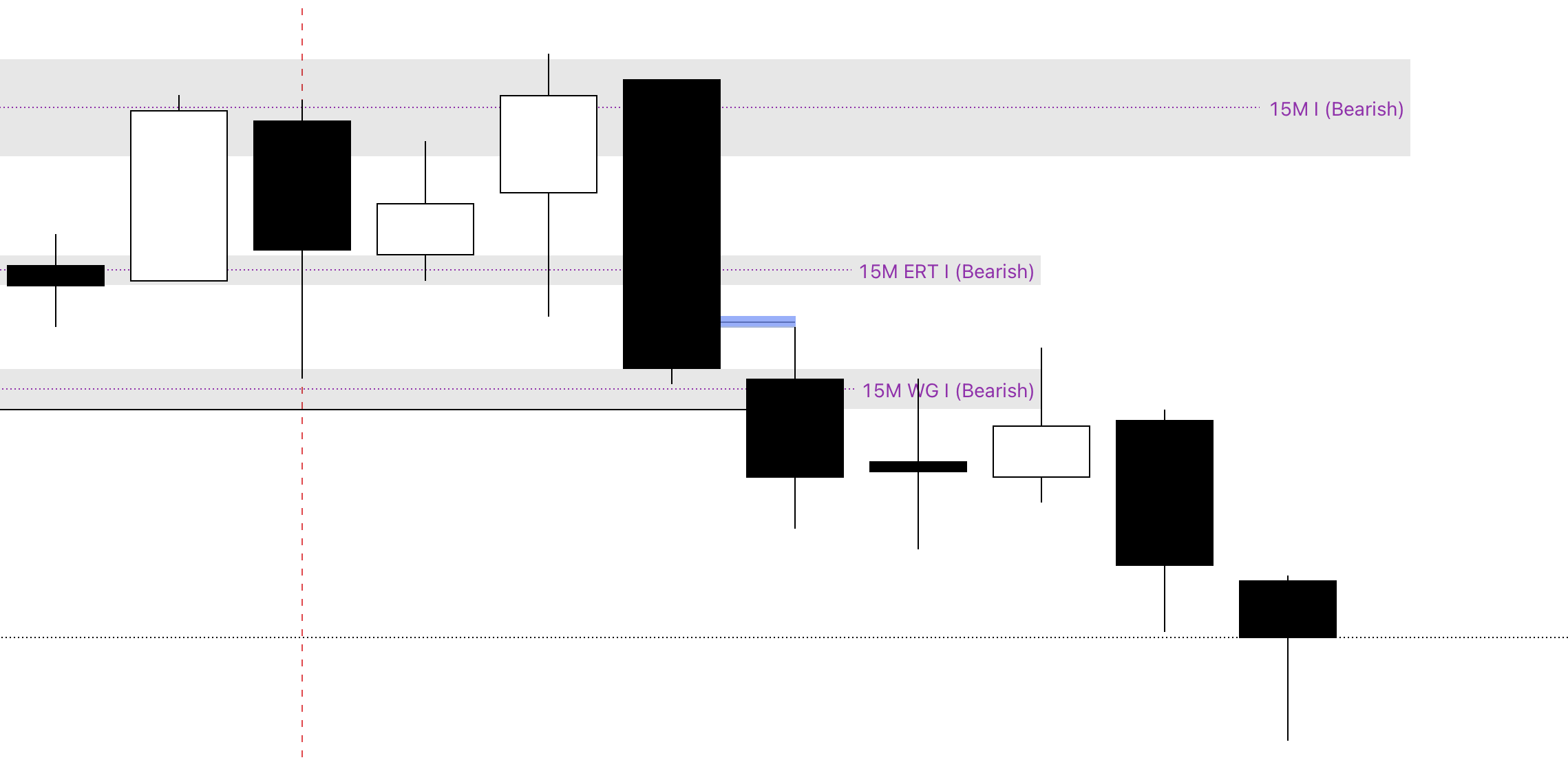 Confluences: A 15M bearish FVG (after a 15M ERT bearish inverse FVG) within a bearish 15M WG & IRT inverse FVG.