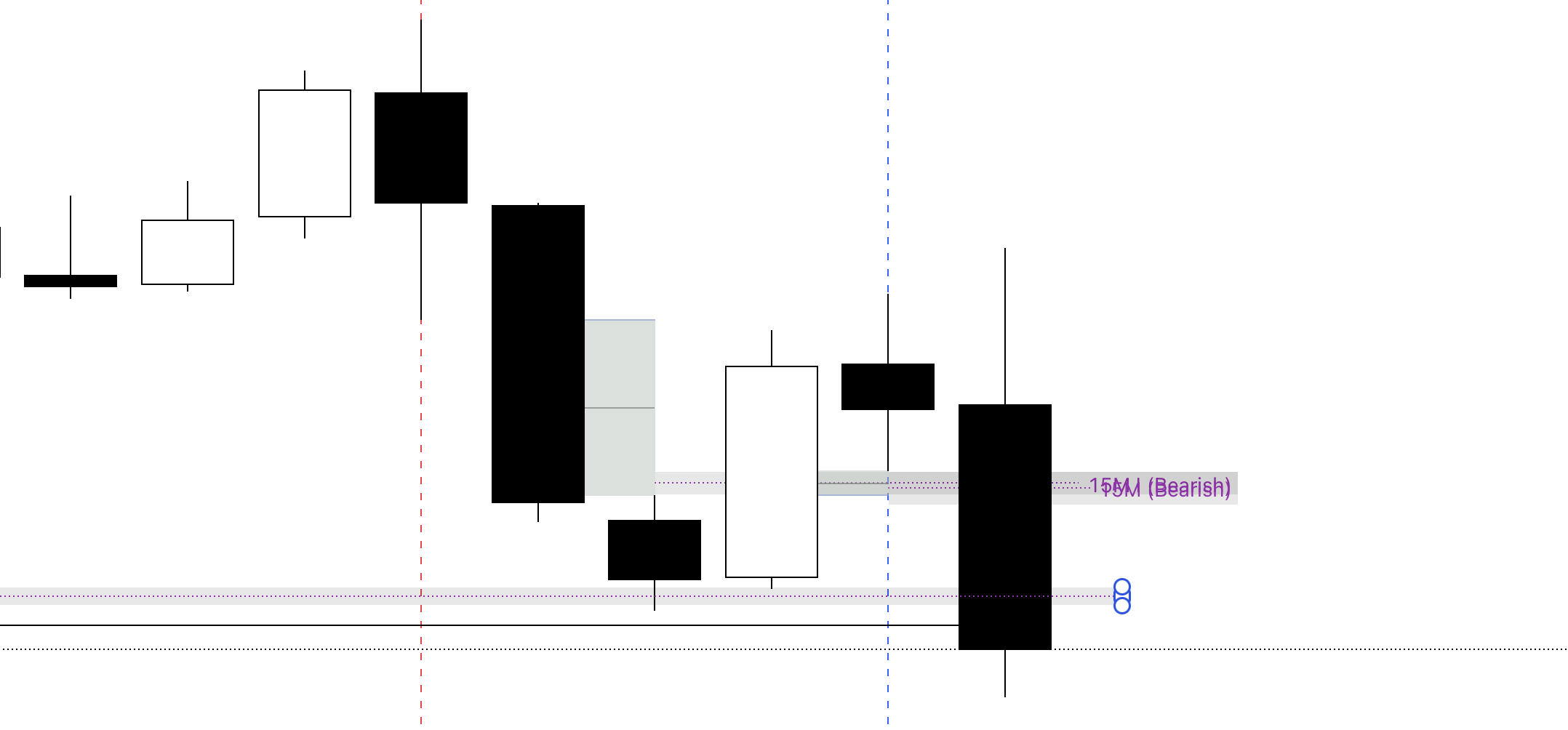 Confluences: A 15M bearish inverse FVG above a bearish; 15M WG inverse FVG.