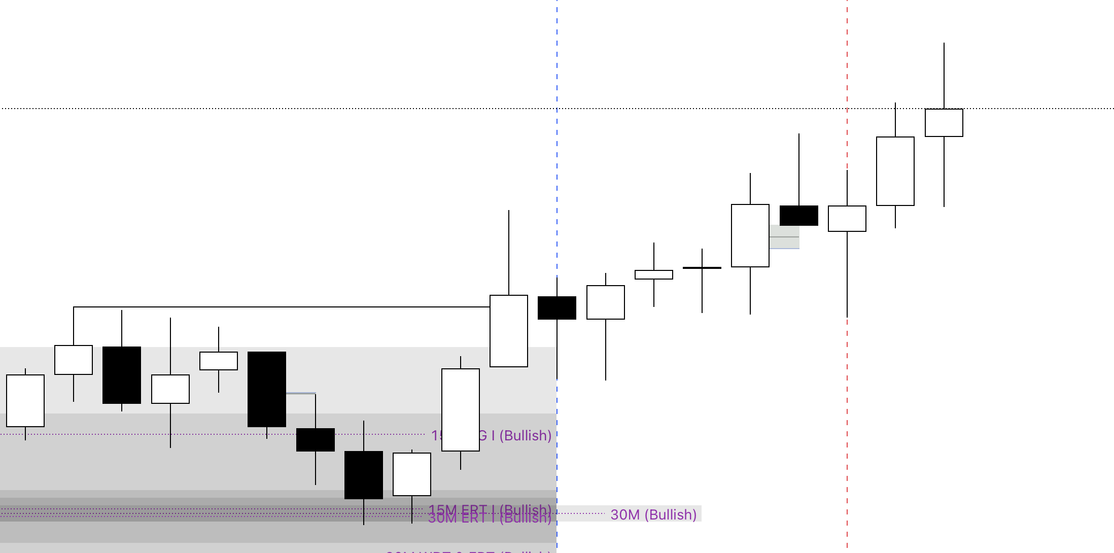 Confluences: A 30M WG & ERT bullish inverse FVG within a bullish; 15M WG inverse FVG.