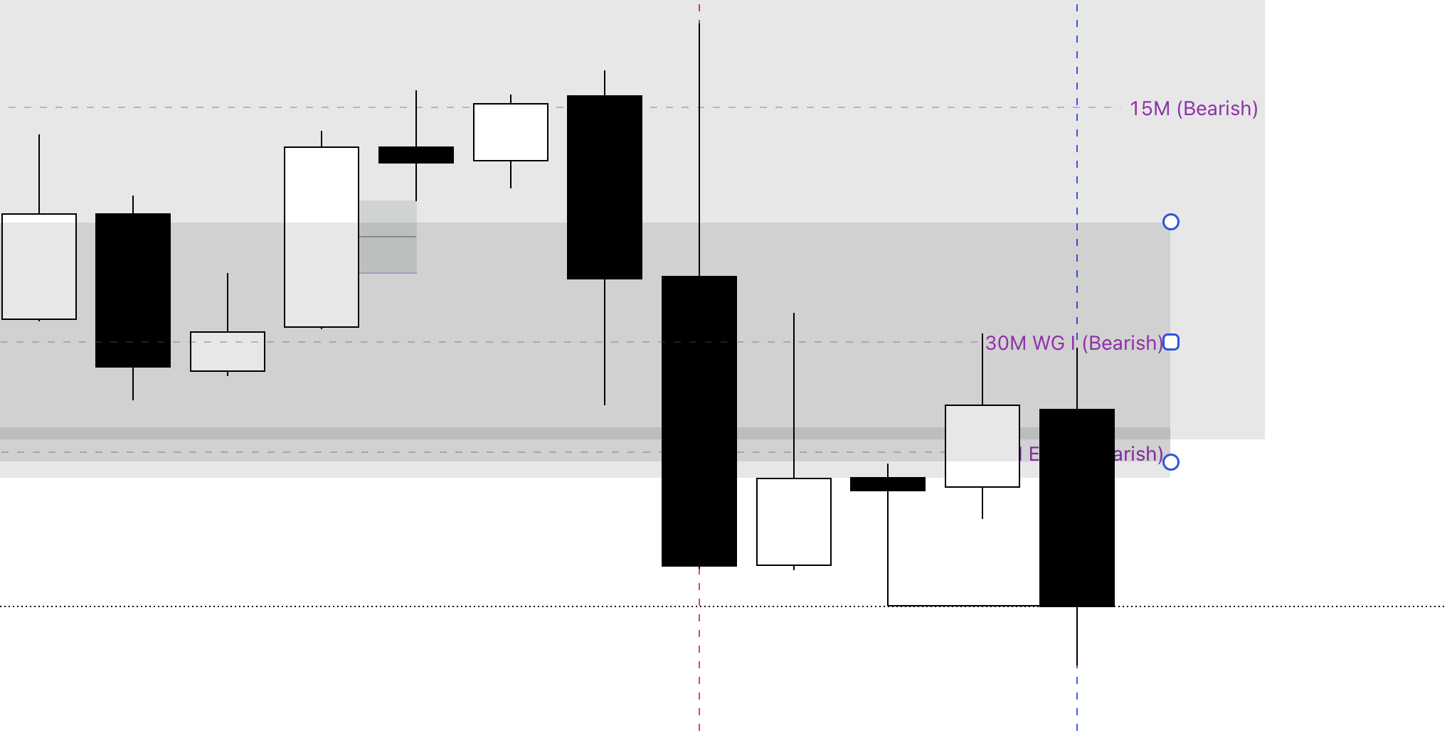 Confluences: A 15M bearish FVG within a bearish; 30M WG inverse FVG.
