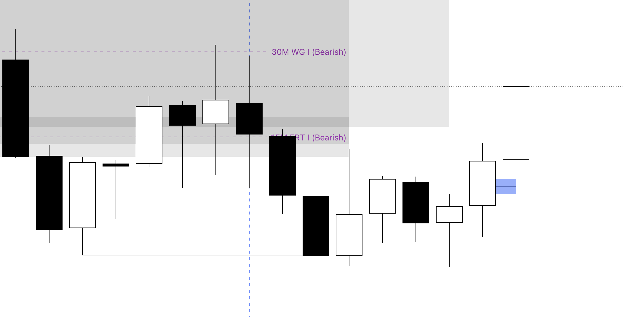 Confluences: A 15M ERT inverse FVG within the bullish; 30M WG inverse FVG.
