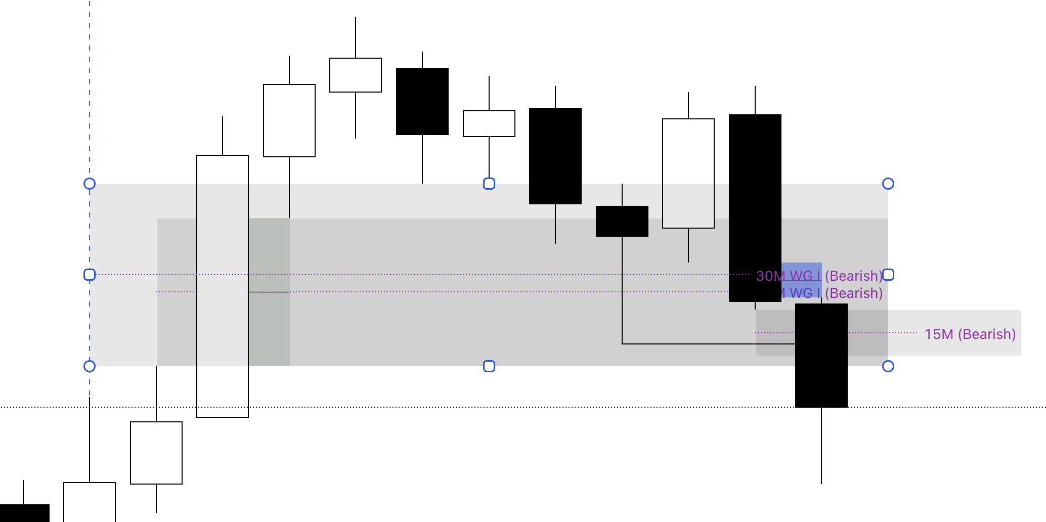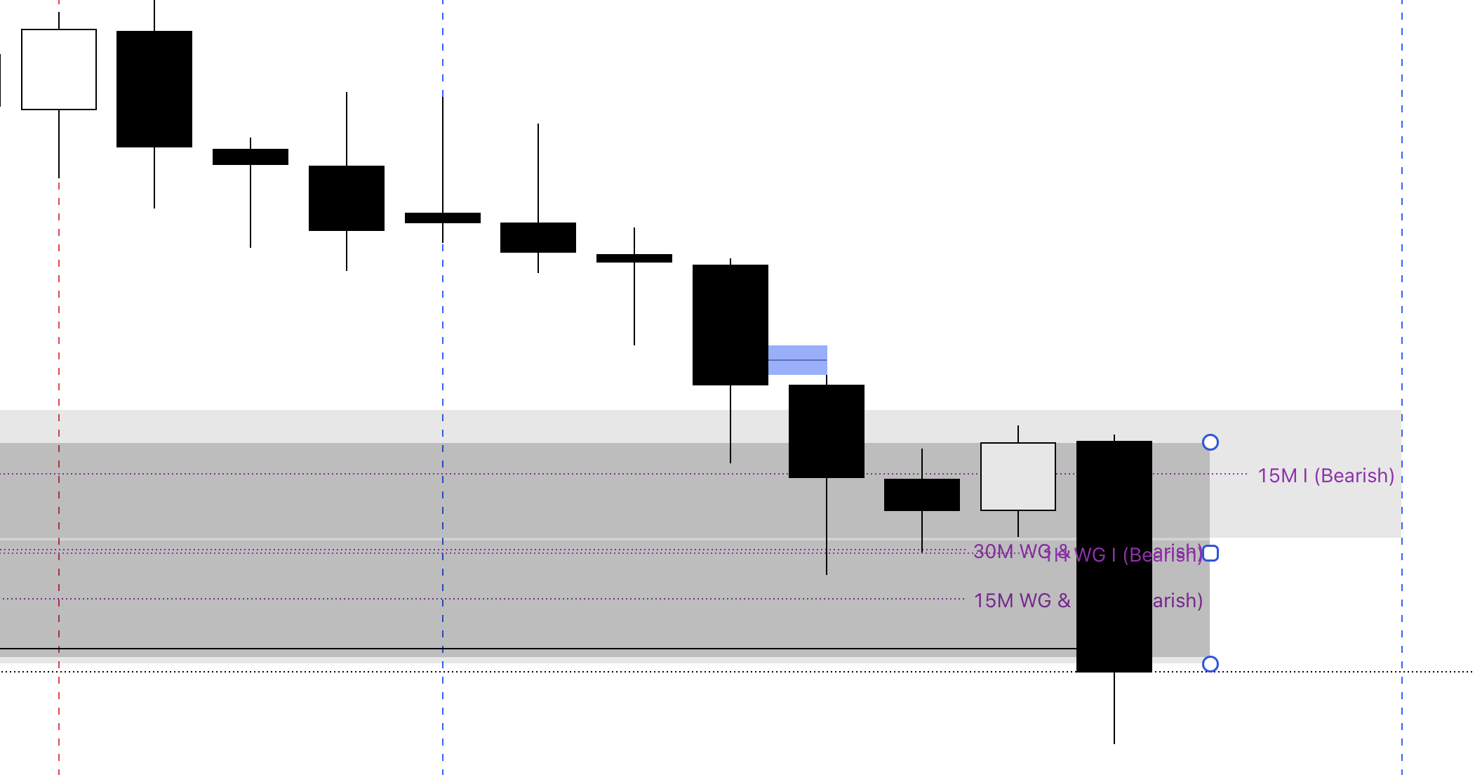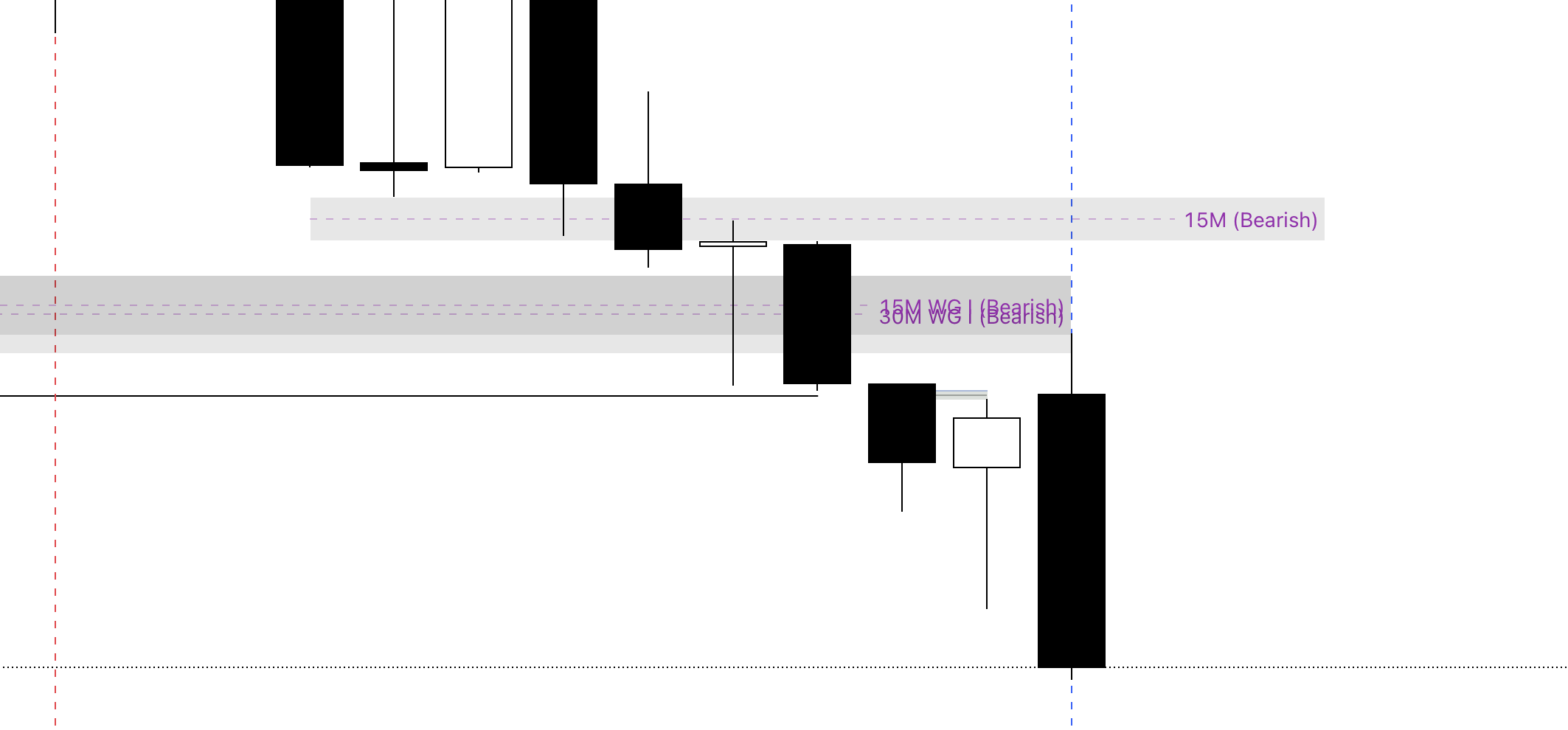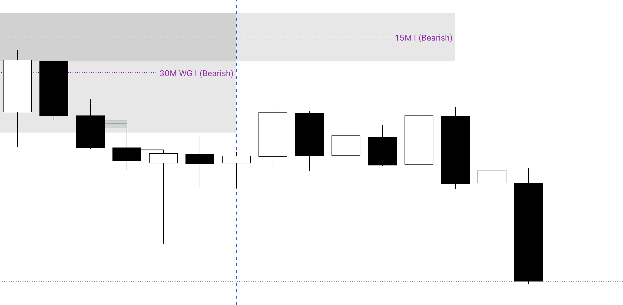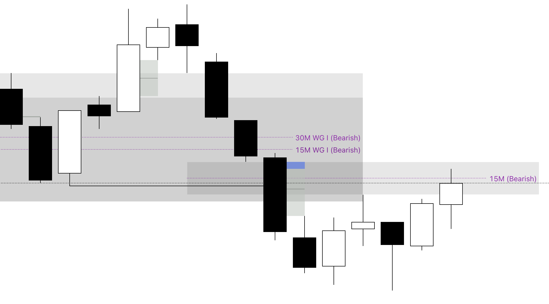 Confluences: A 15M WG bearish inverse FVG within a bearish; 30M WG inverse FVG.