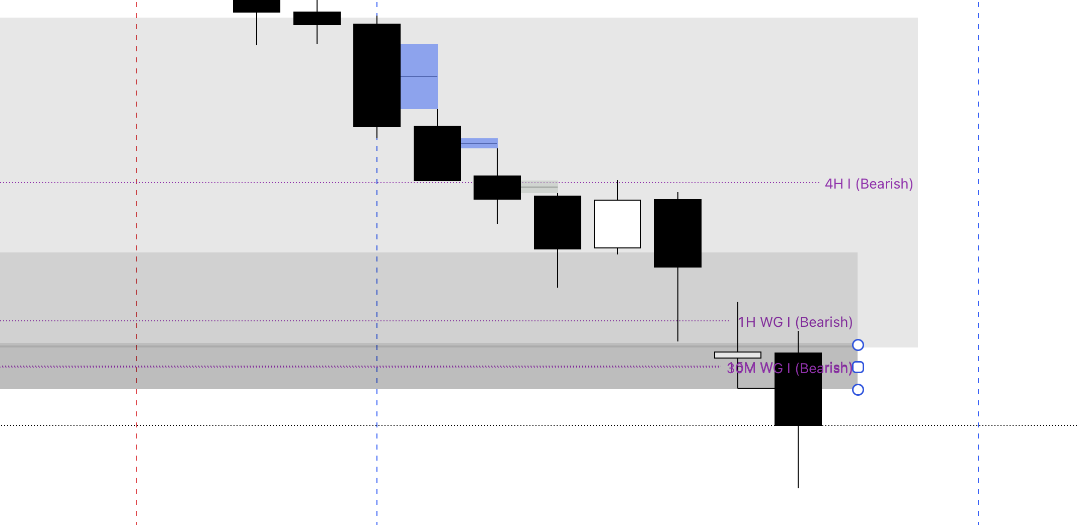 Confluences: 4H bearish inverse FVG within a 30M WG bearish inverse FVG.