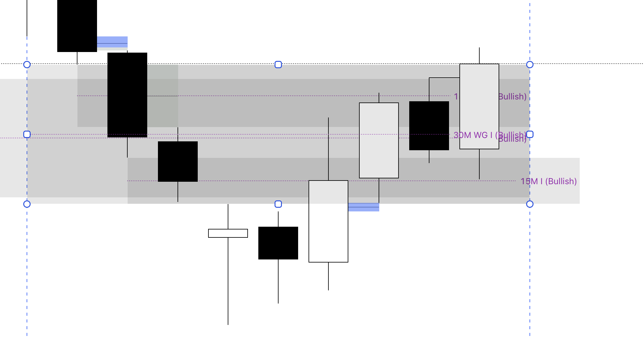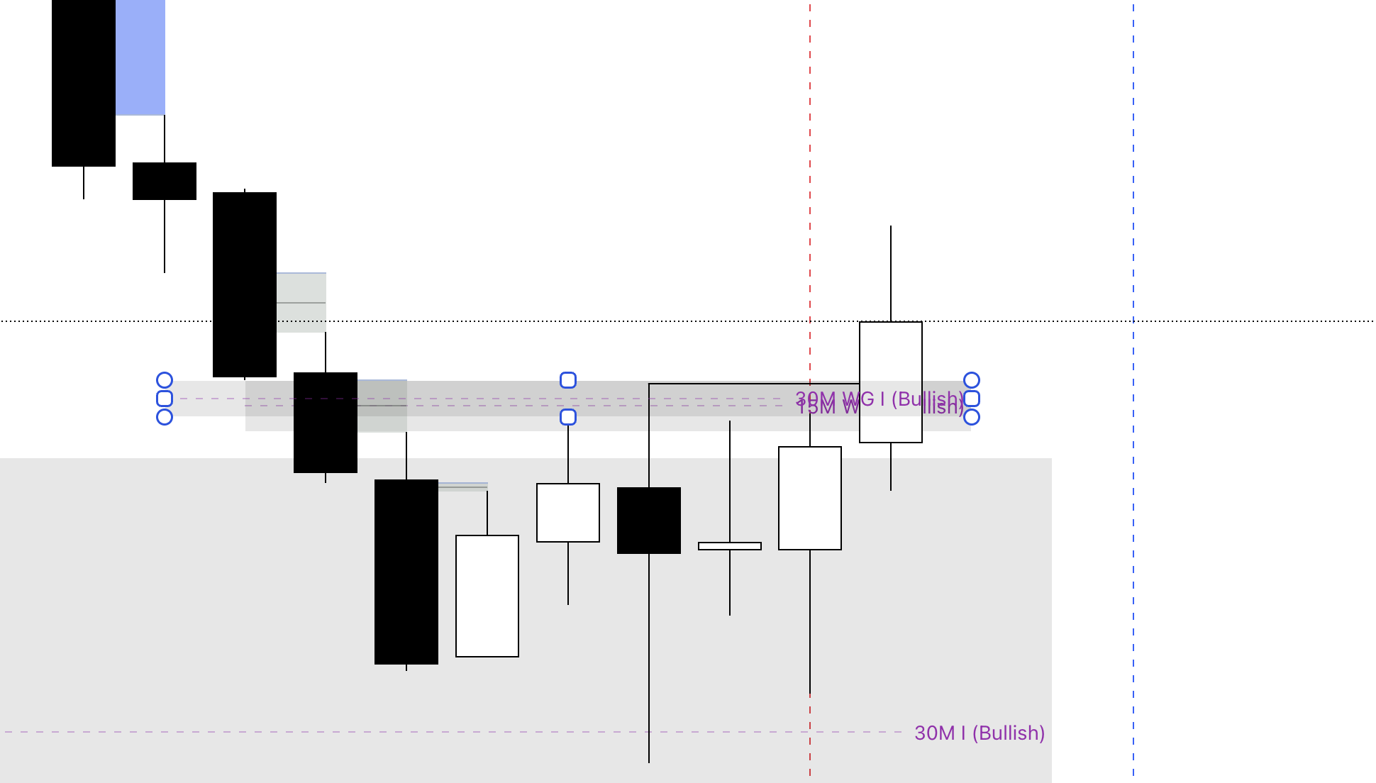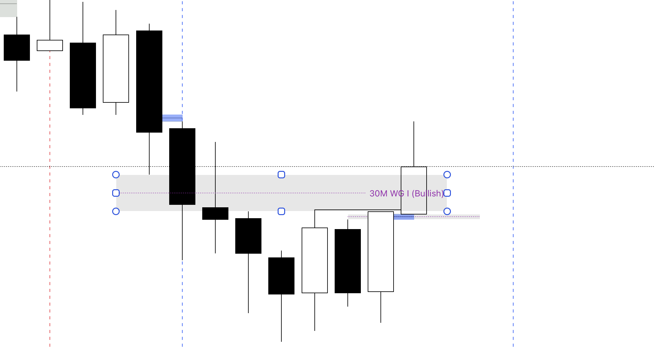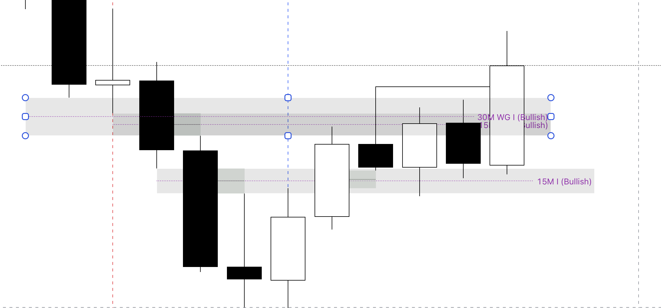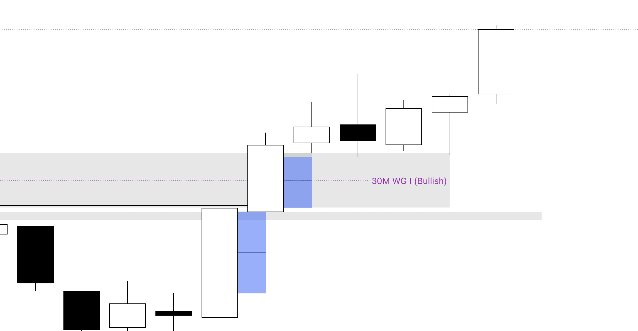 Confluences: A 15M bullish FVG beneath a 30M WG bullish inverse FVG.