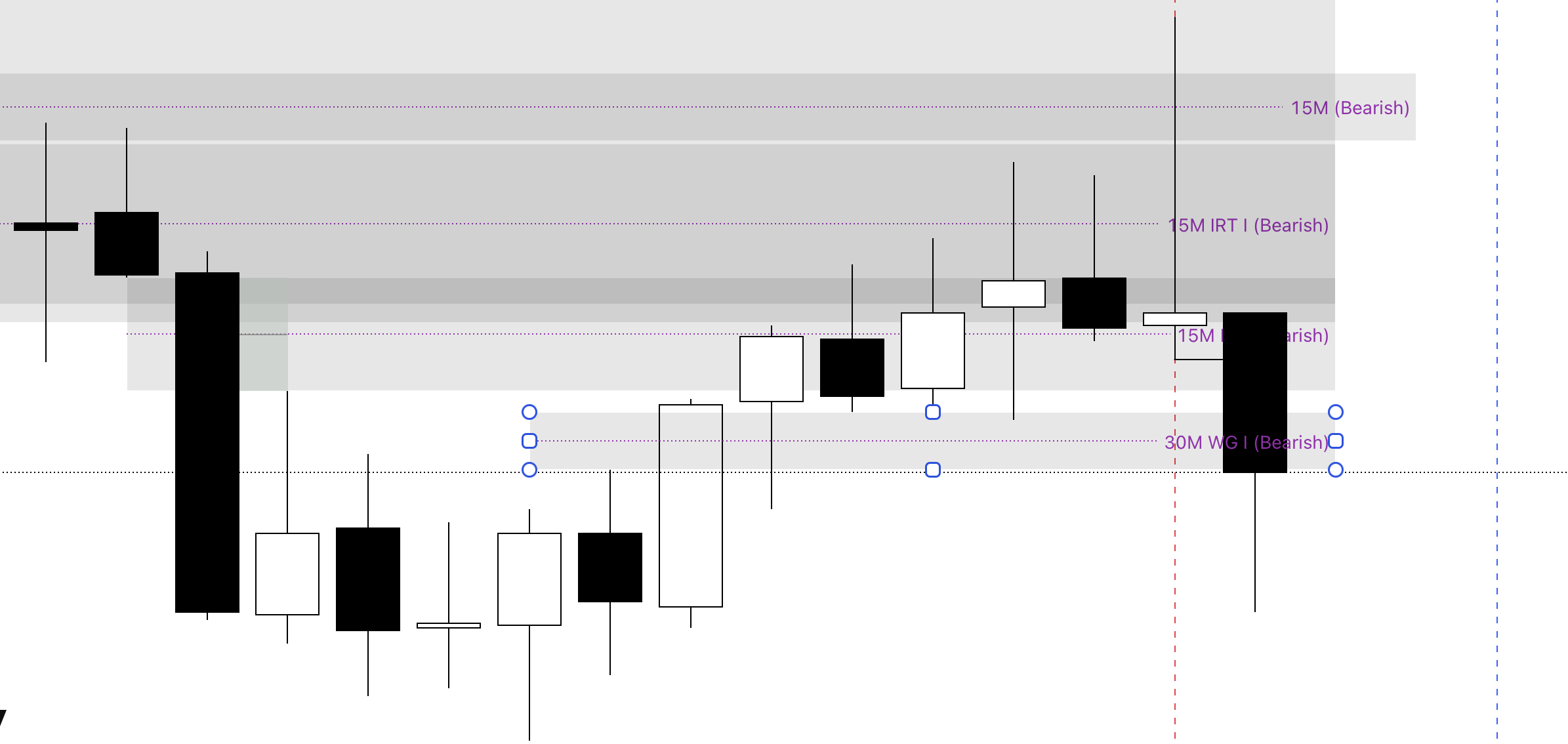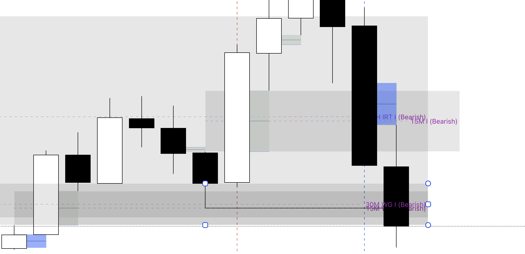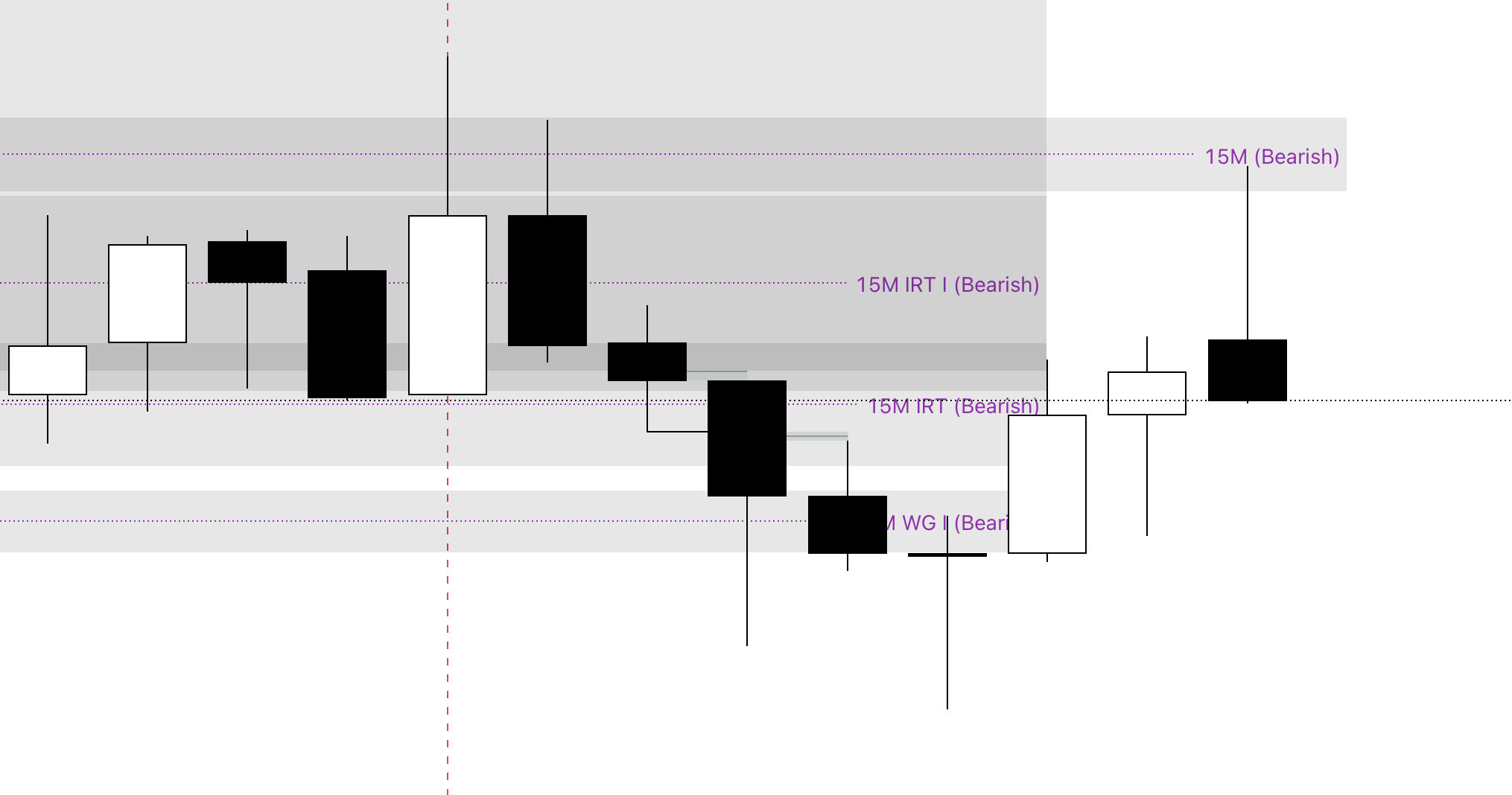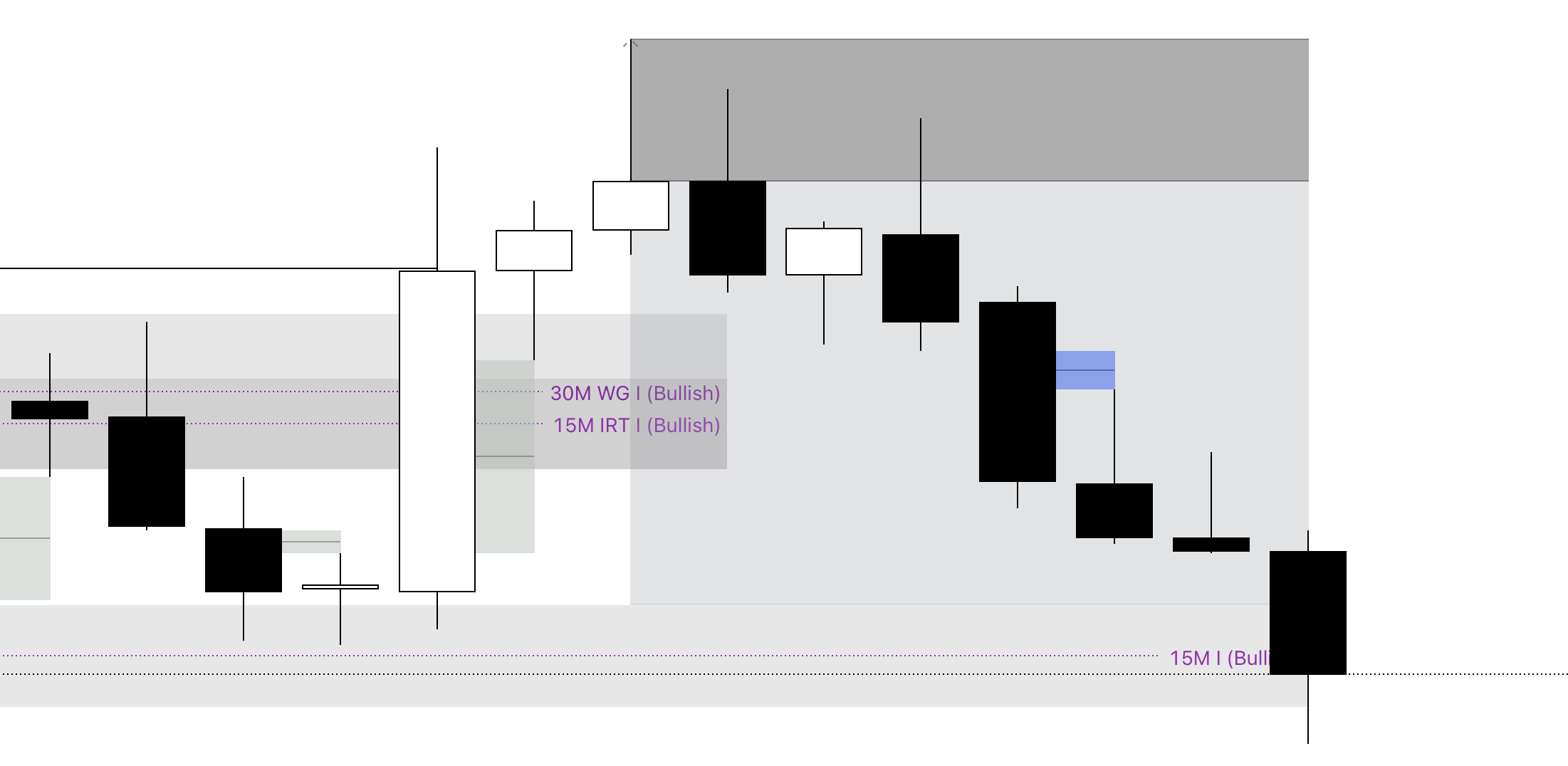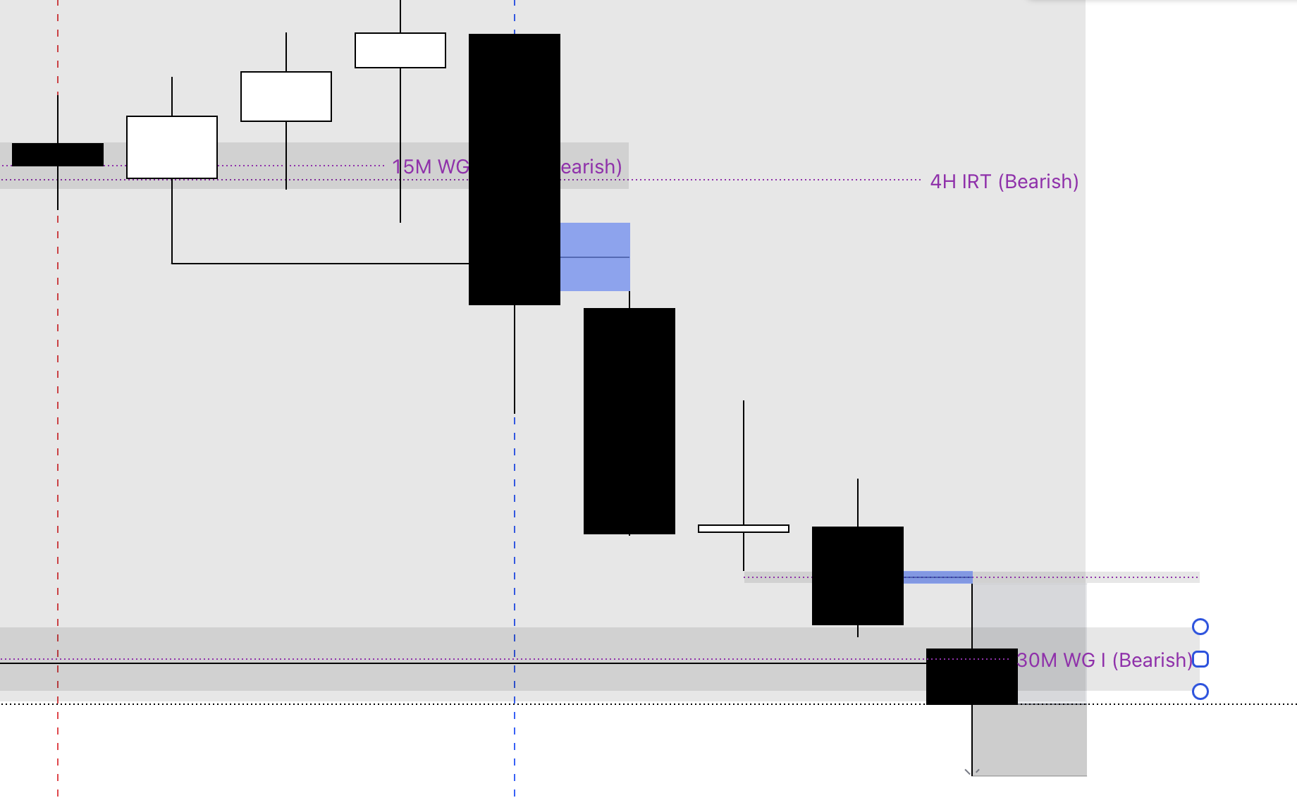 Confluences: A 15M IRT bearish FVG above a 30M WG Bearish inverse FVG.