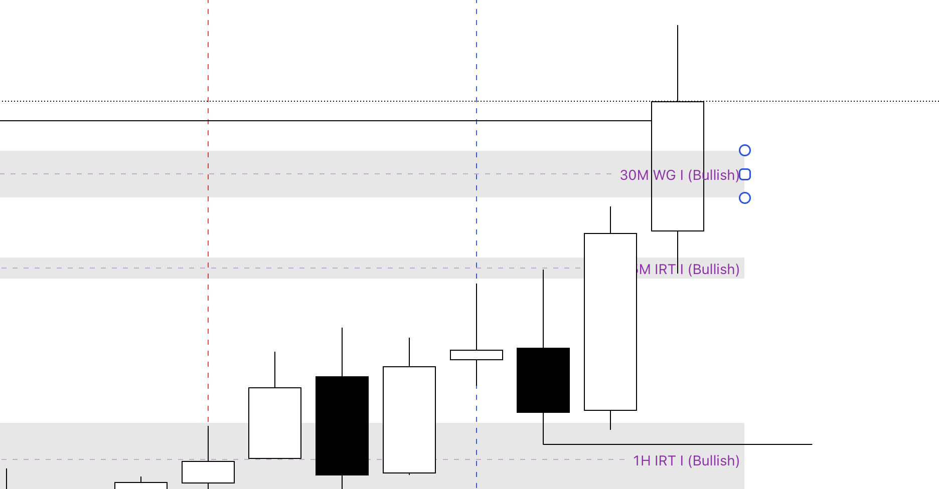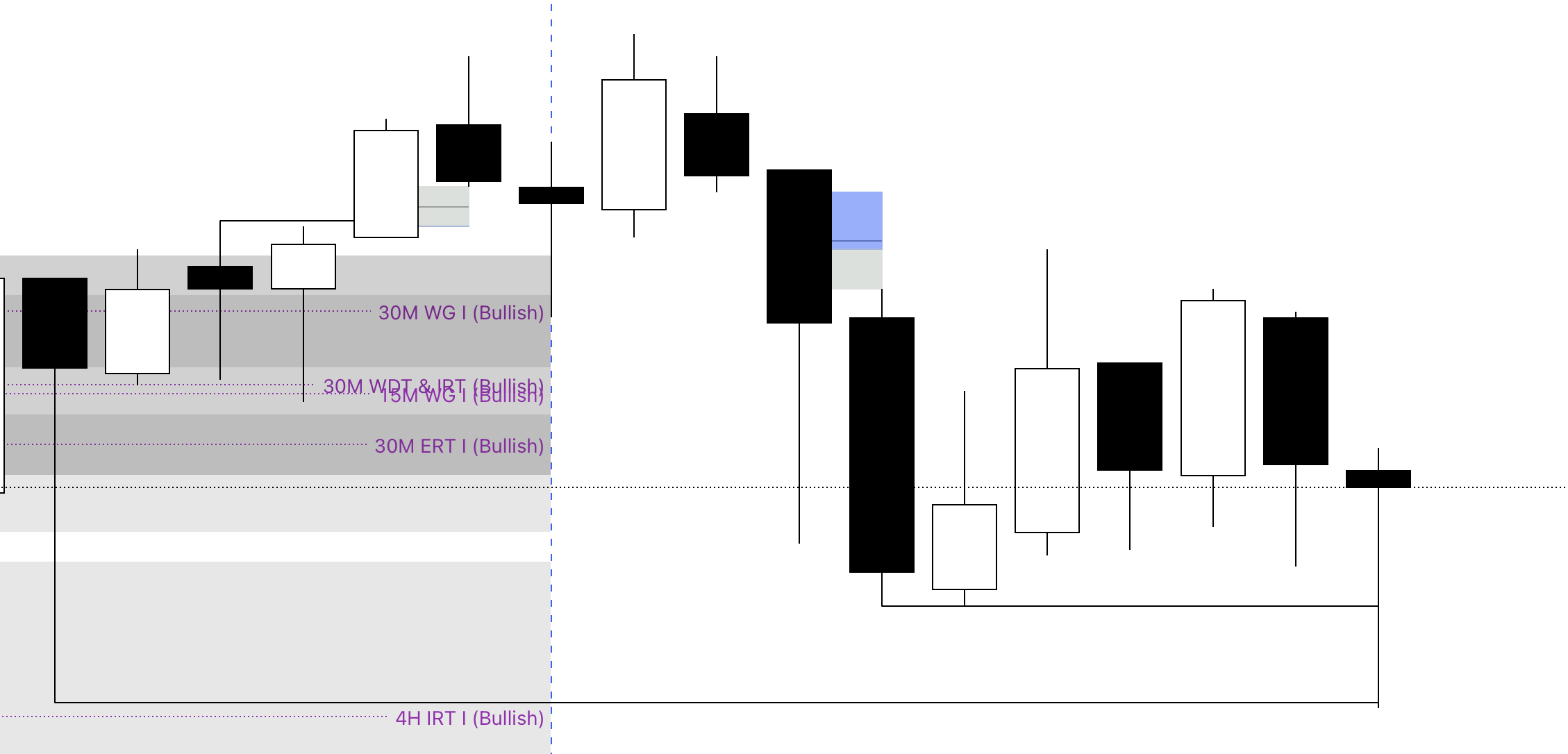 Confluences: A 30M IRT bullish FVG within a 1H WG & IRT bullish inverse FVG.