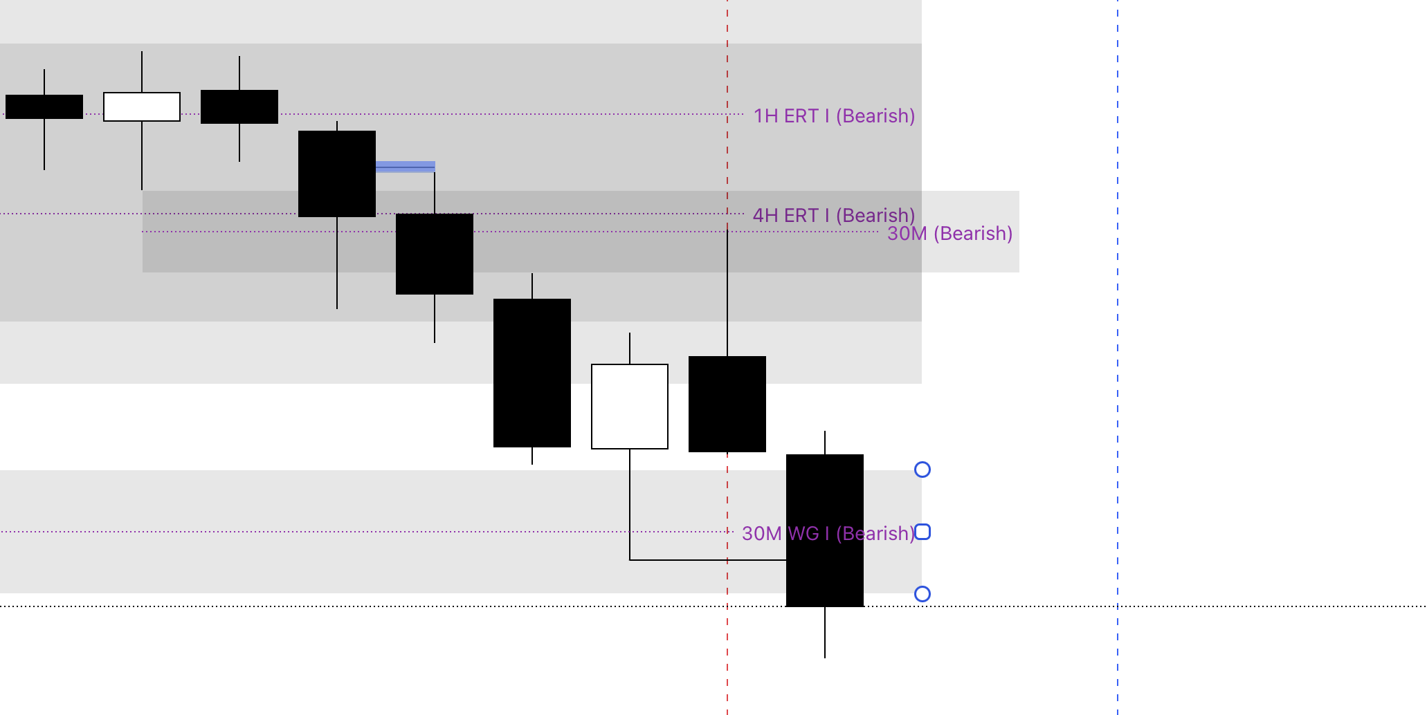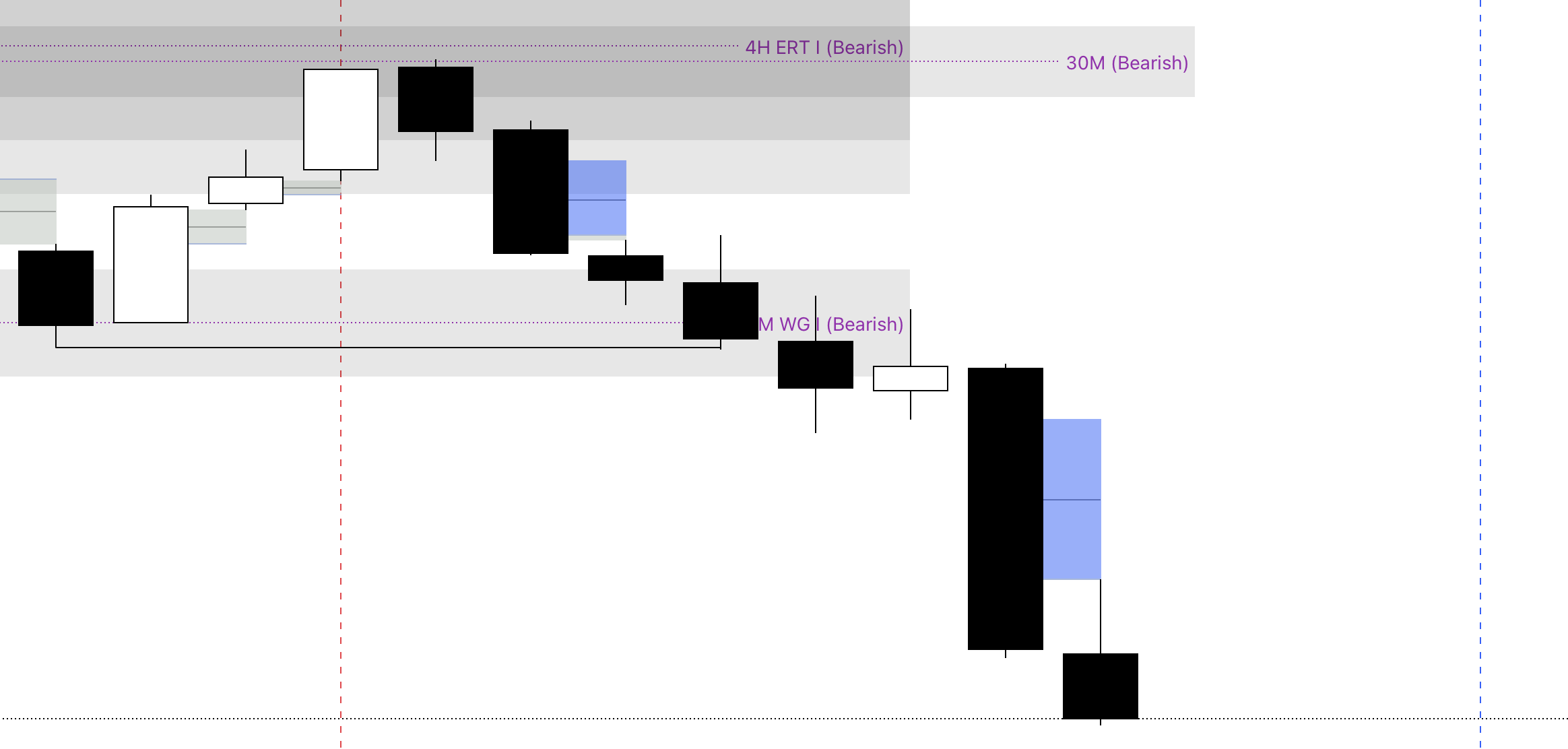 Confluences: A 30M WG & ERT inverse FVG within a bearish; 1H WG & IRT inverse FVG.
