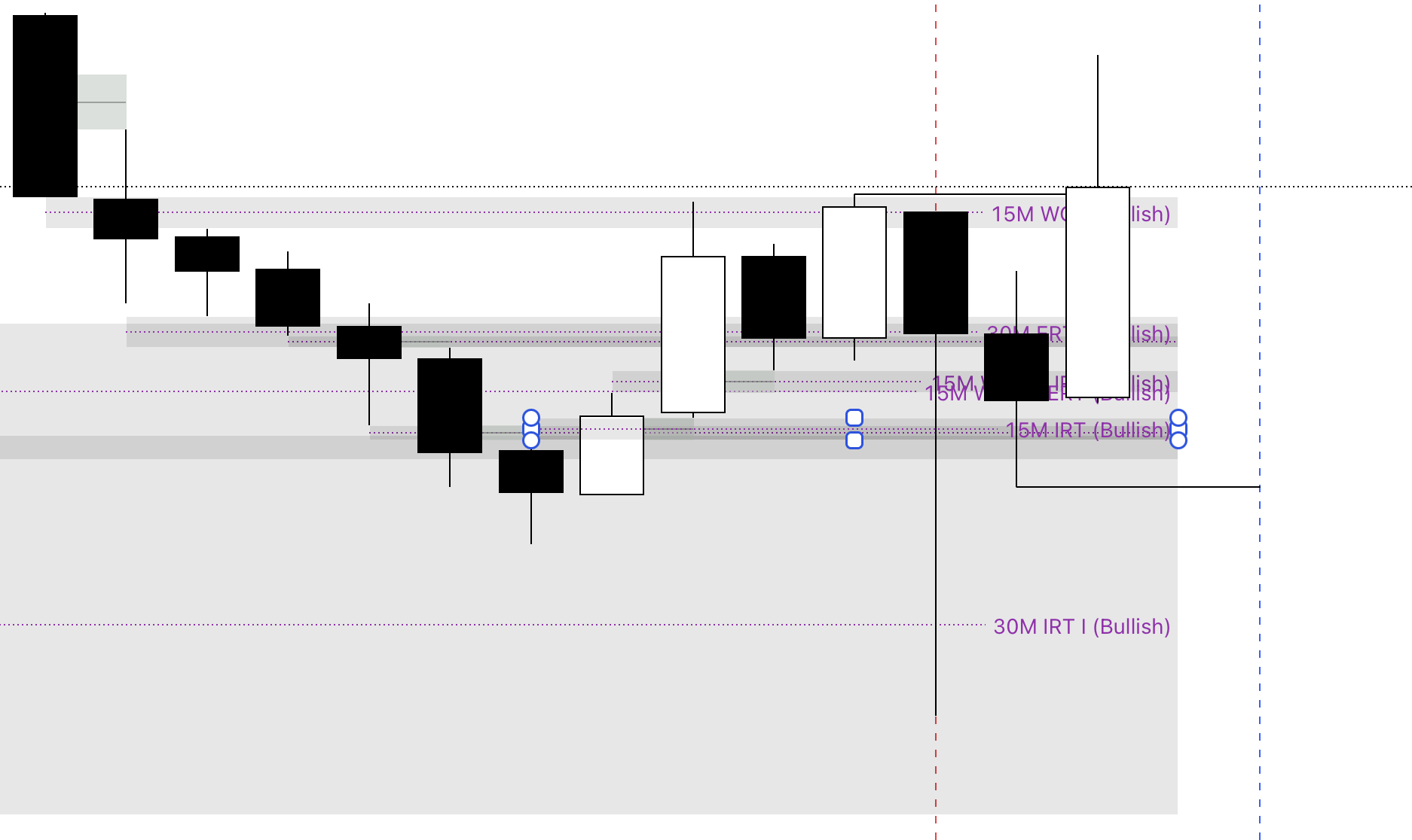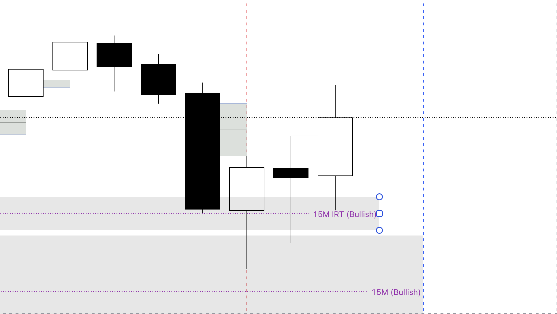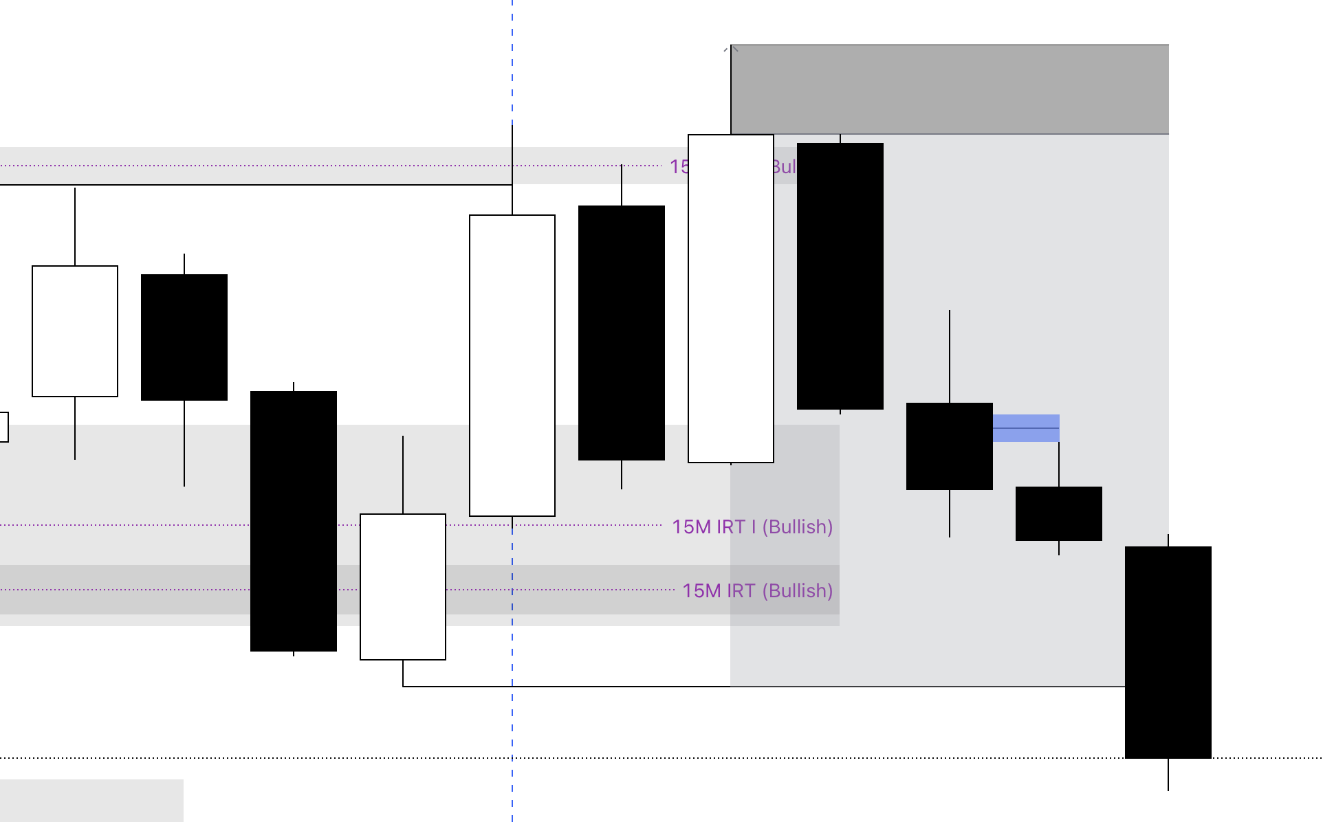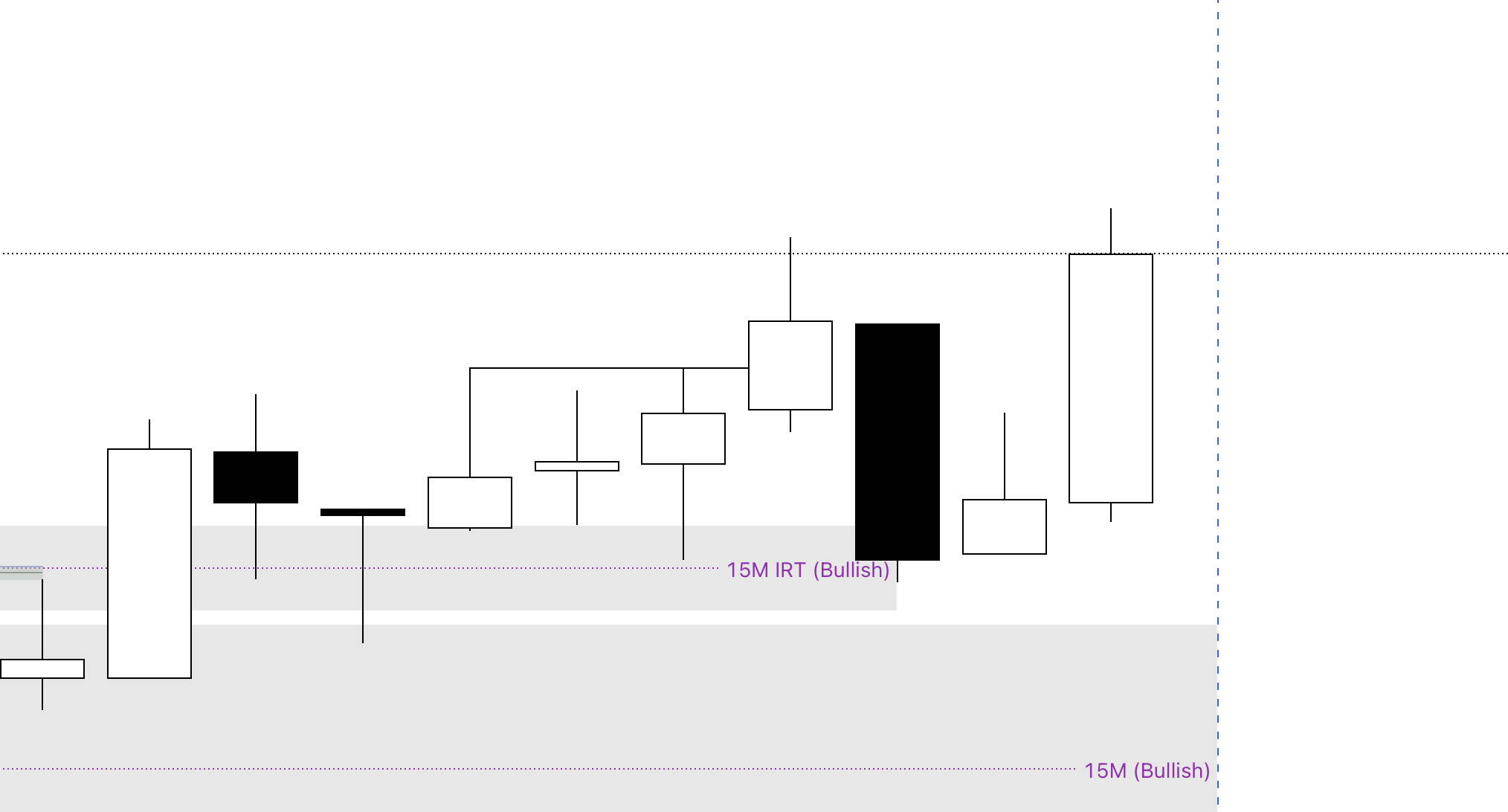 Confluences: 15M IRT bullish inverse FVG within a 15M IRT bullish FVG.
