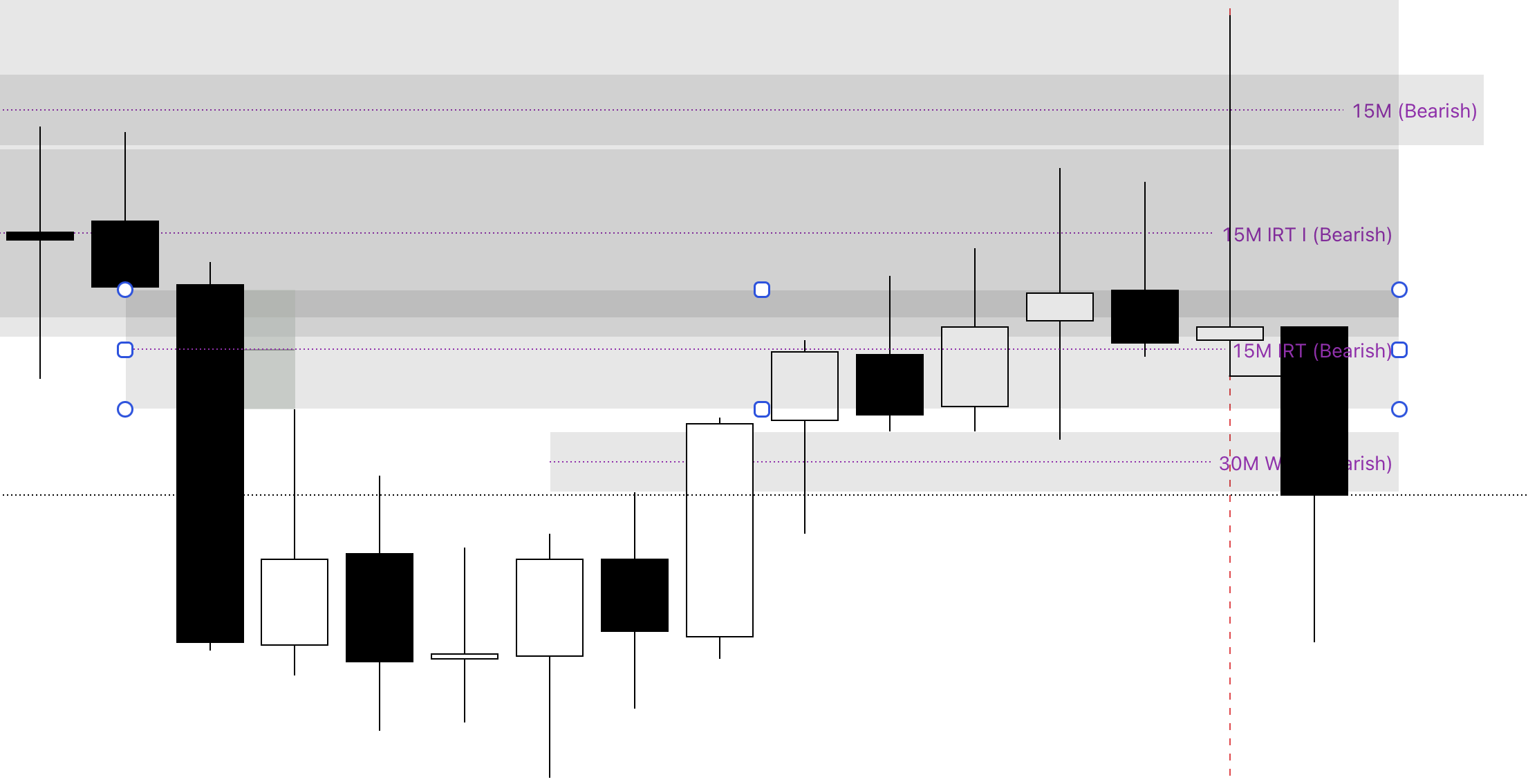Confluences: 4H IRT bearish inverse FVG within a 15M IRT bearish FVG.