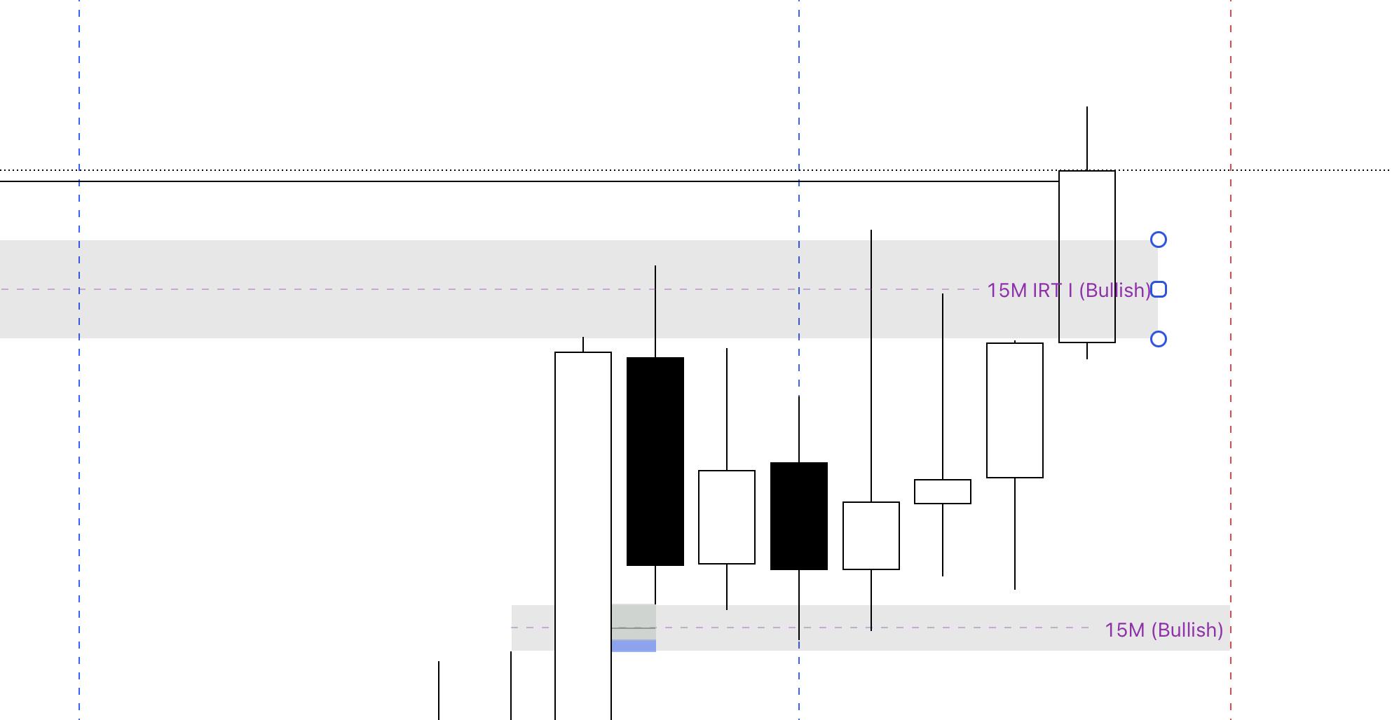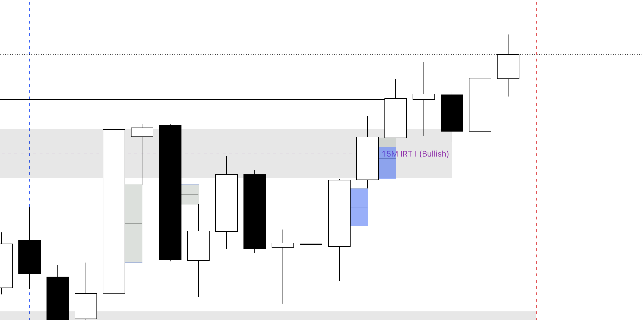 Confluences: A 15M bullish FVG beneath a bullish; 15M IRT inverse FVG.