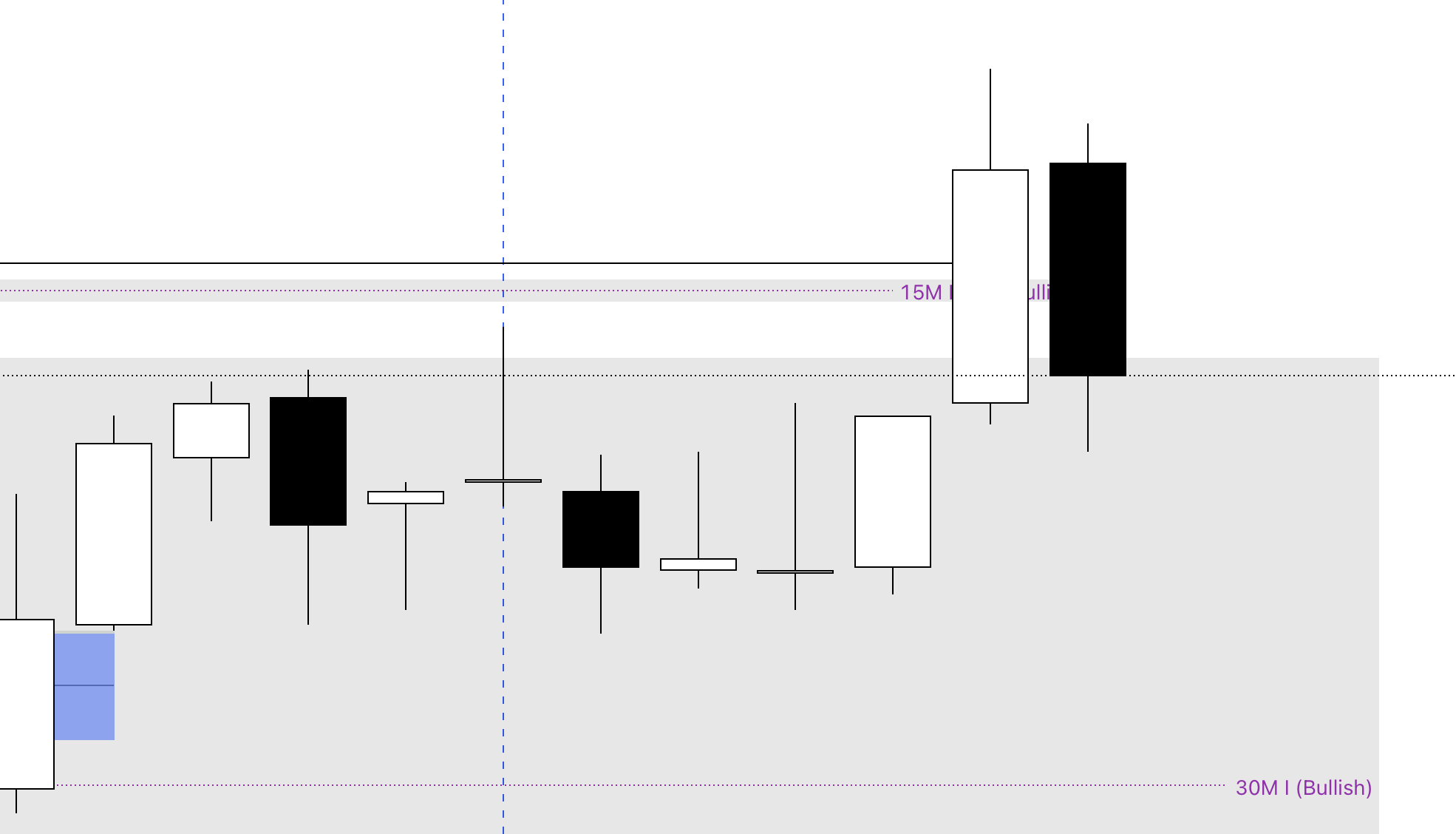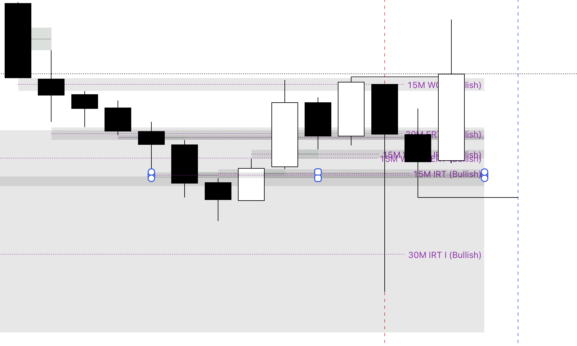 Confluences: A 30M bullish FVG within a 15M IRT bullish inverse FVG.
