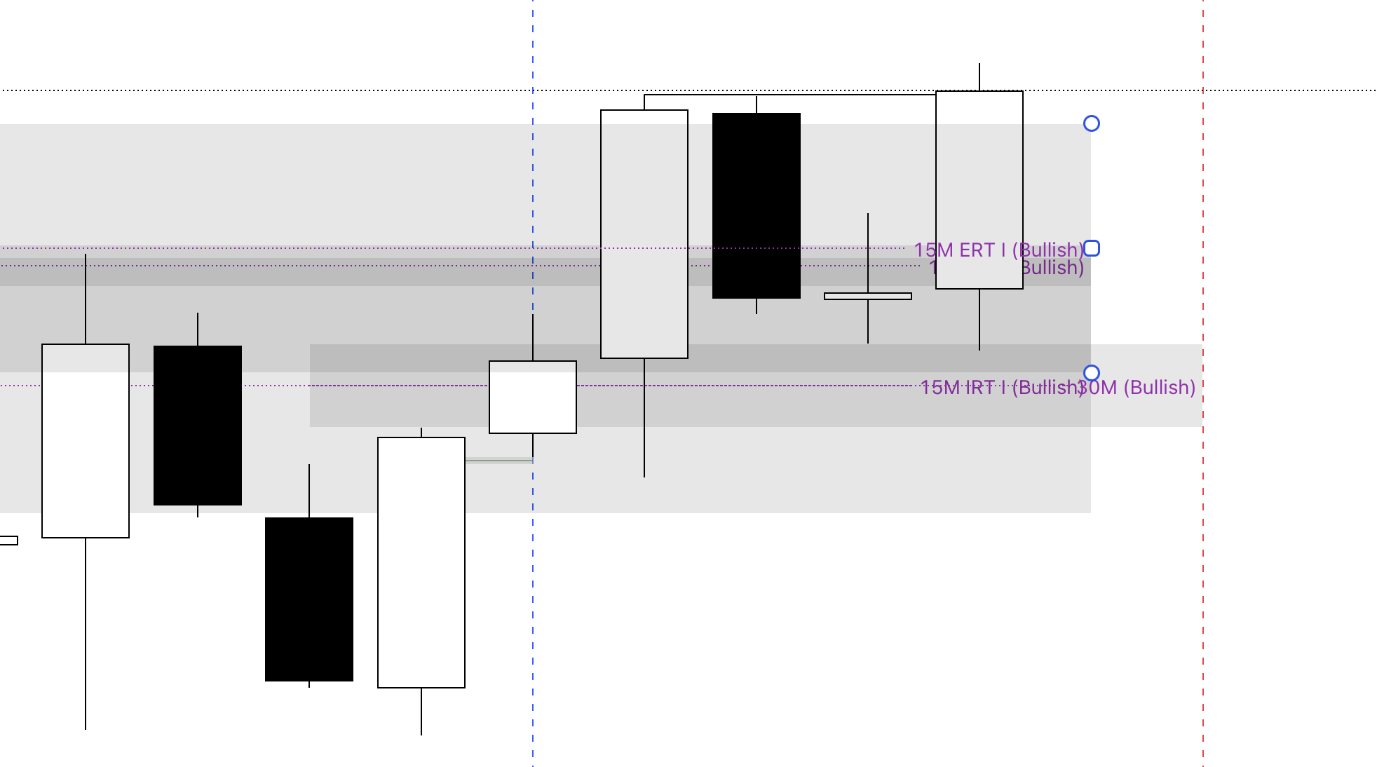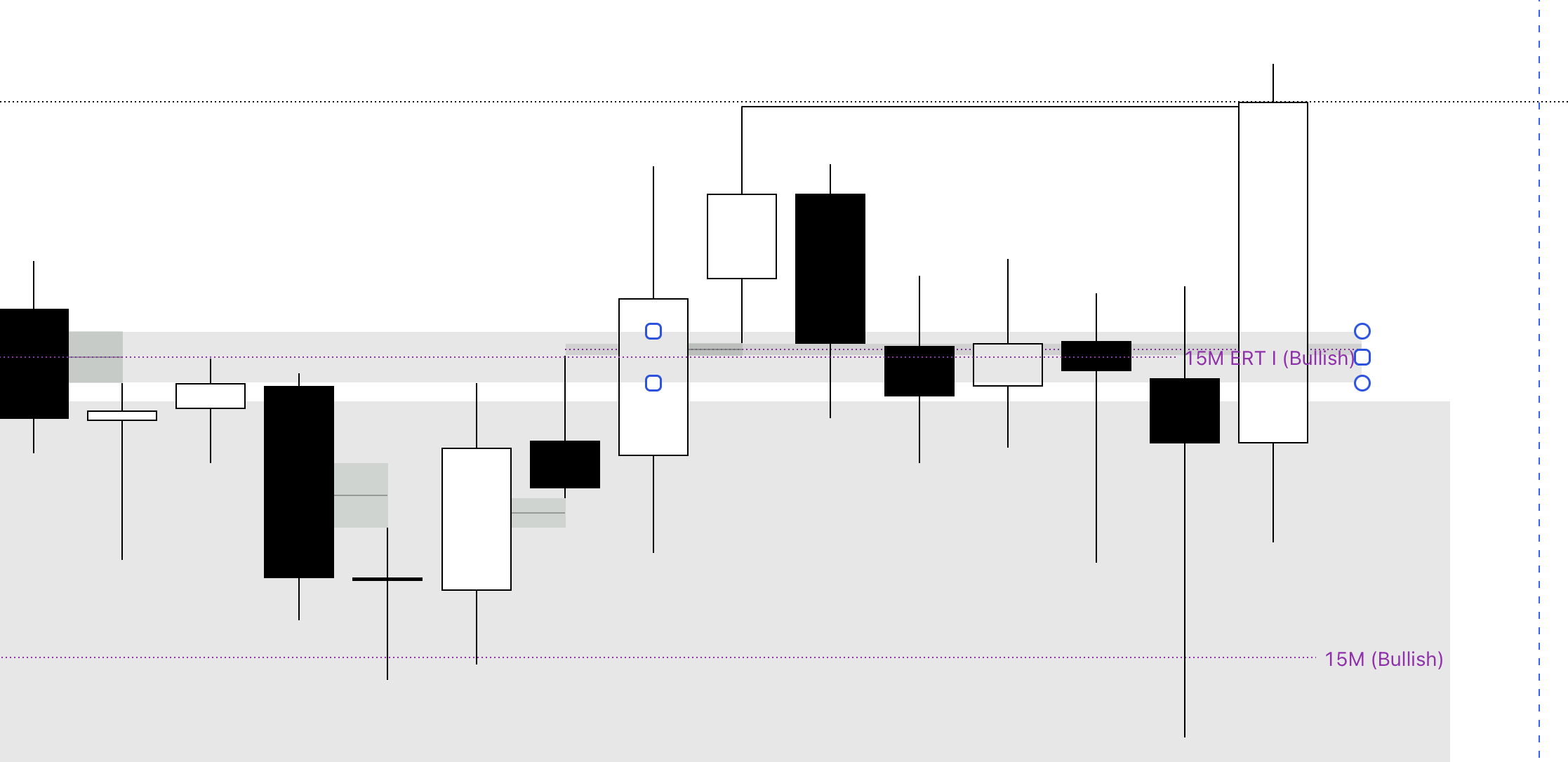 Confluences: A 15M ERT bullish inverse FVG beneath a 15M IRT bullish inverse FVG.