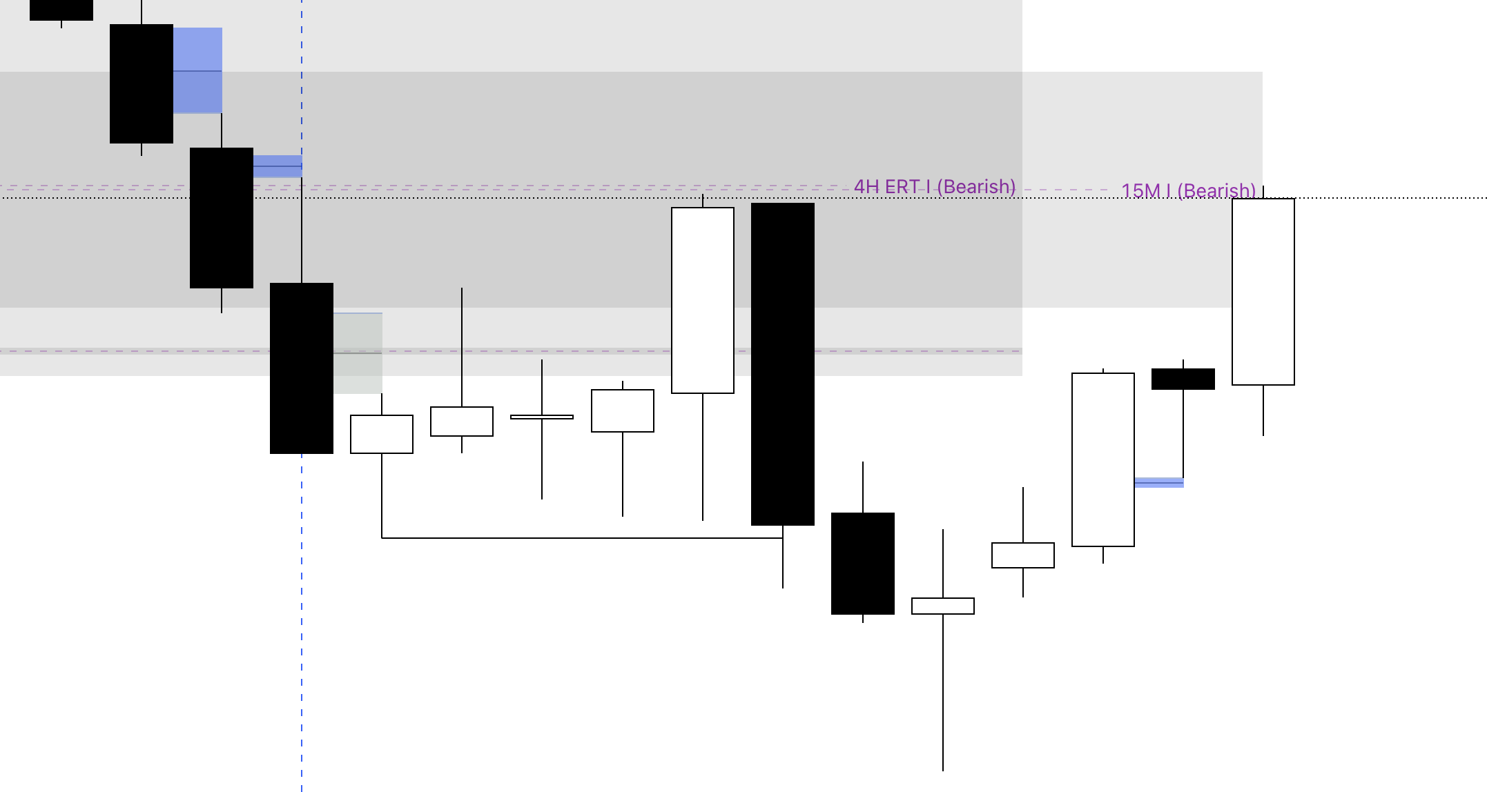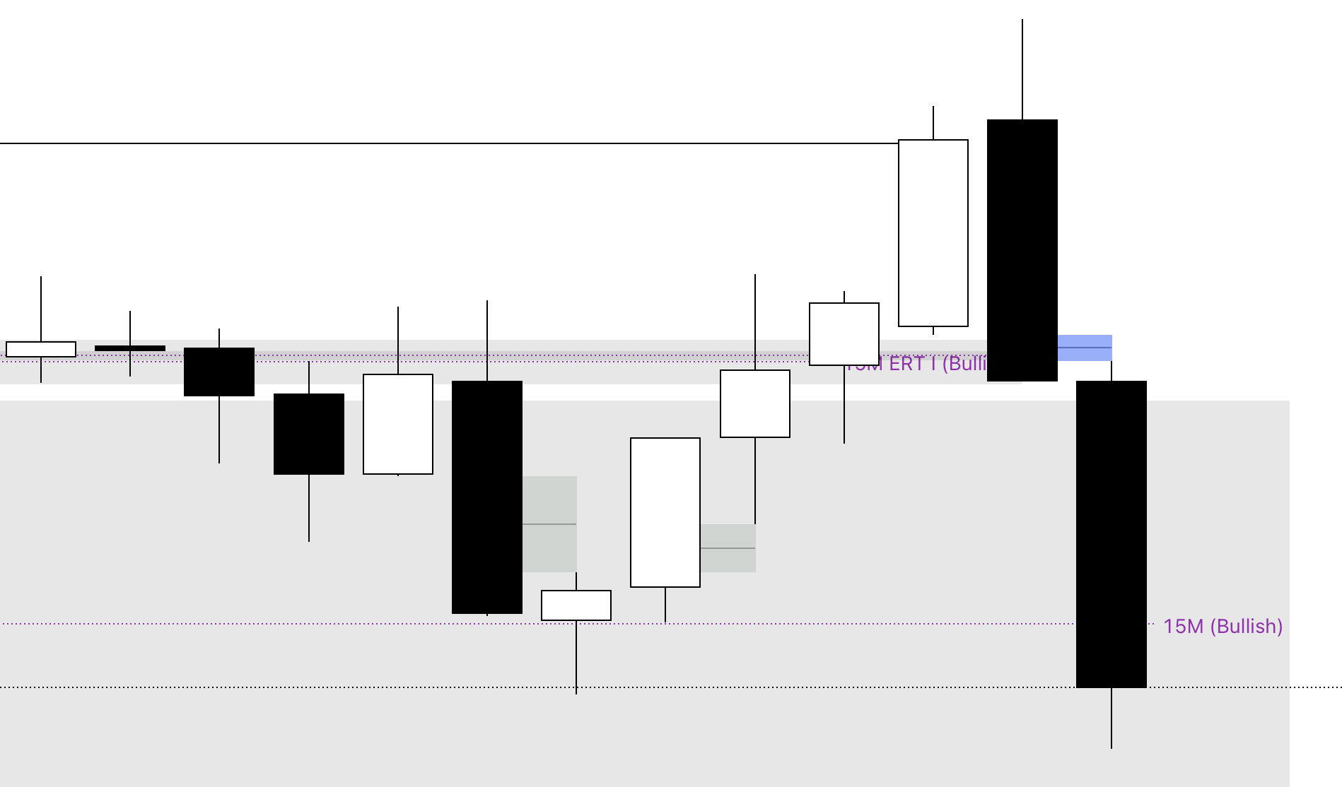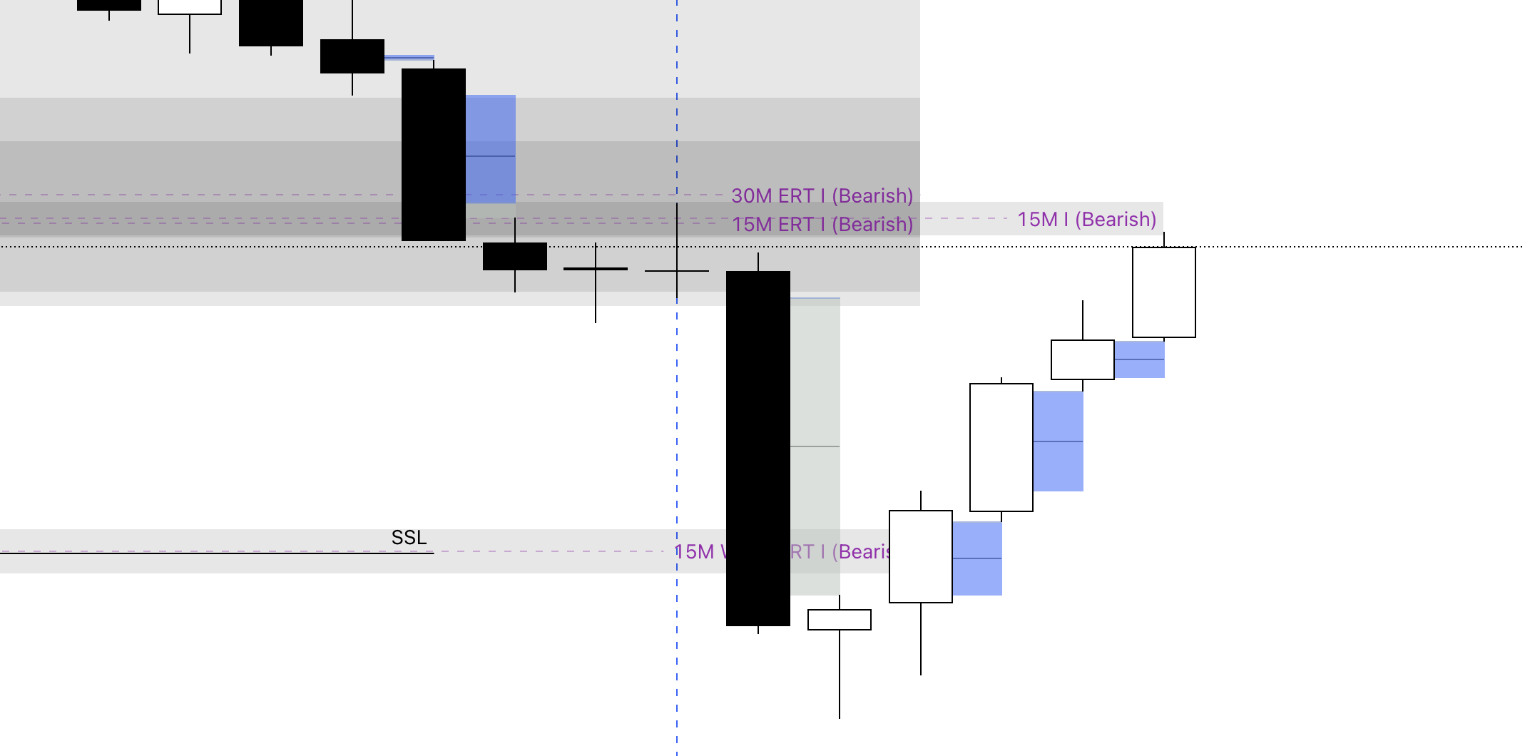 Confluences: A 15M bearish inverse FVG within the bearish; 15M ERT inverse FVG.