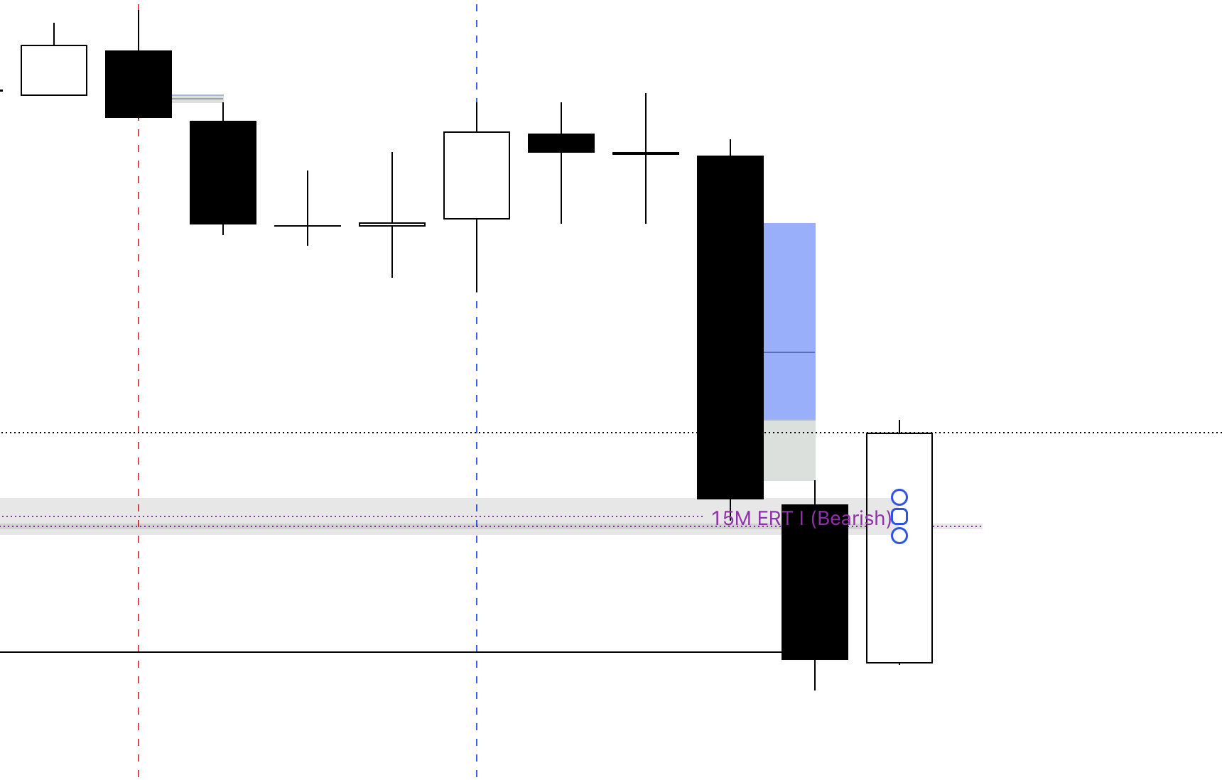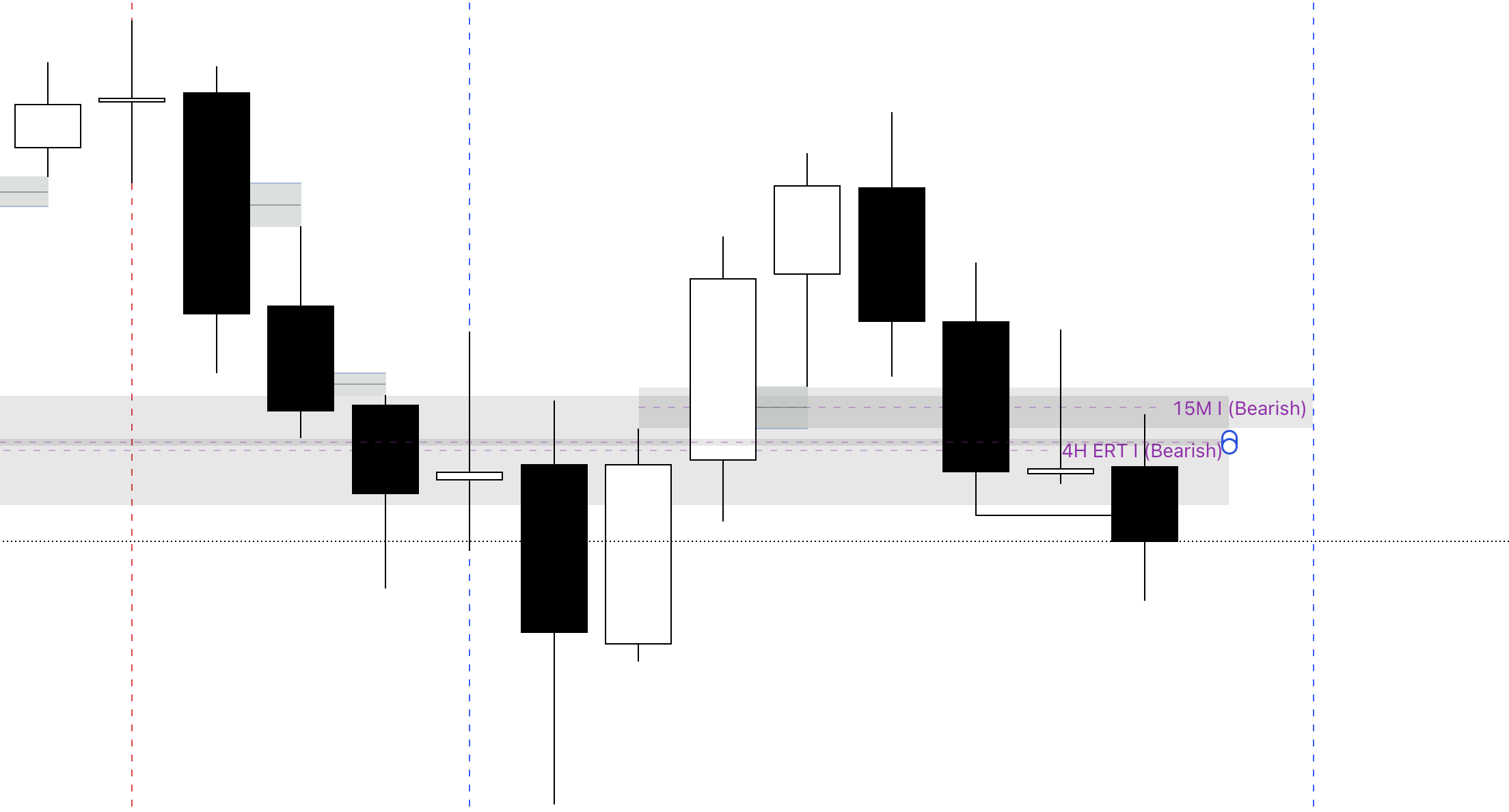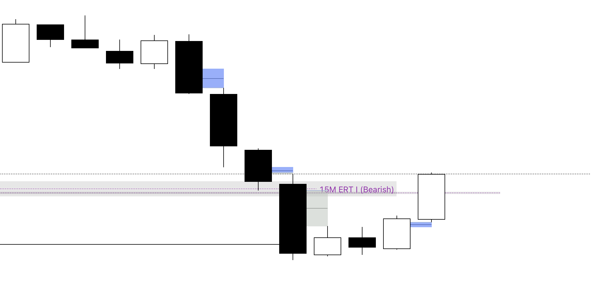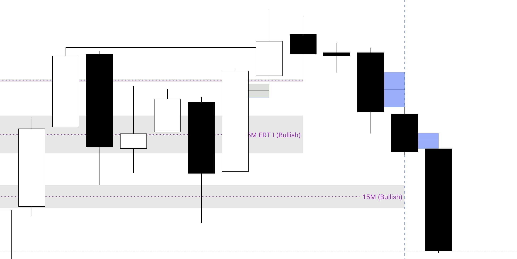 Confluences: A 15M bearish inverse FVG within the bearish; 15M ERT inverse FVG.